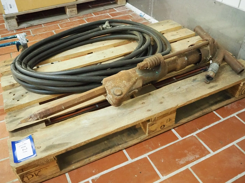 Pallet with hydraulic jackhammer, dimensions: 1200 mm x 800 mm x 300 mm.