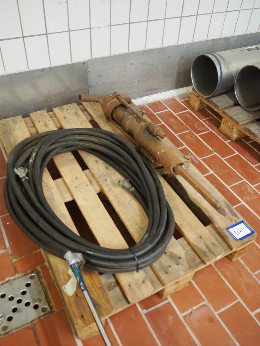 Pallet with hydraulic jackhammer, dimensions: 1200 mm x 800 mm x 300 mm.