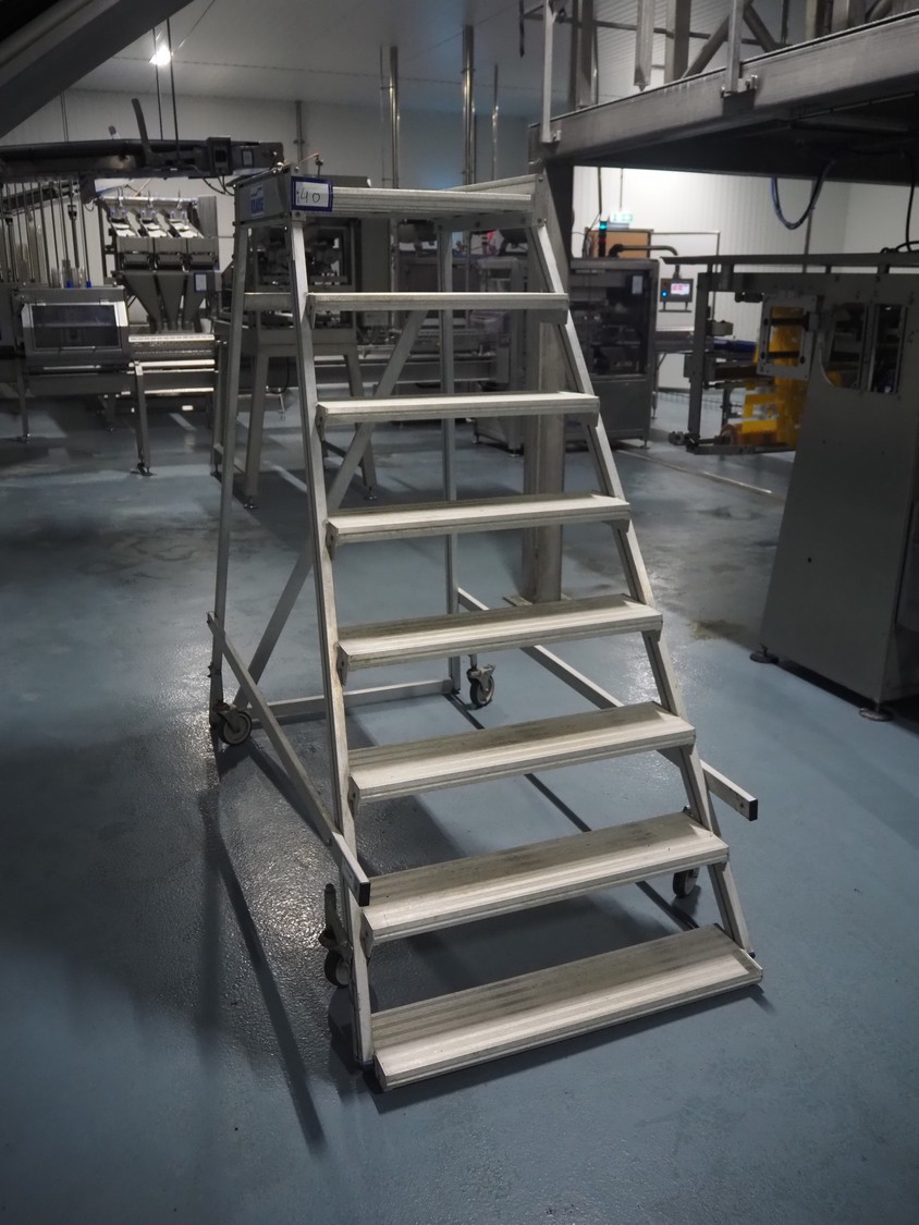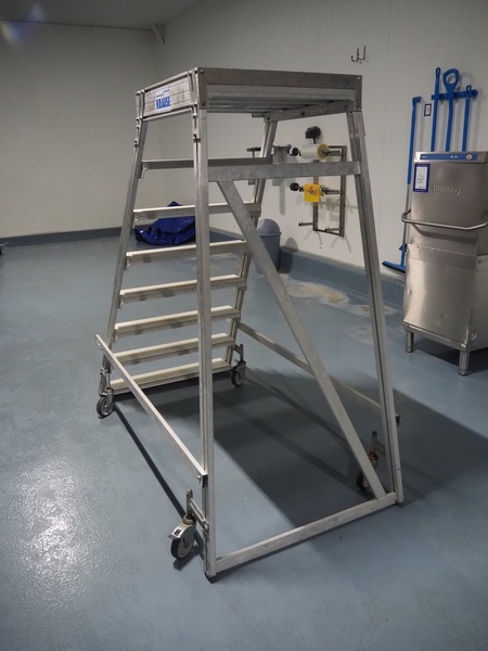 Krause mobile aluminium platform, working height: 1750 mm, total dimensions: 920 mm x 1900 mm x 1780 mm.