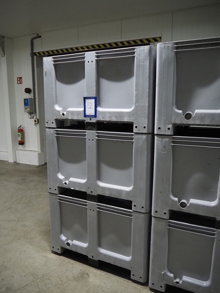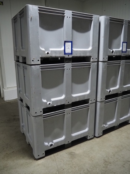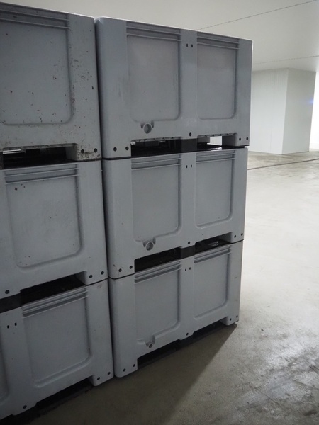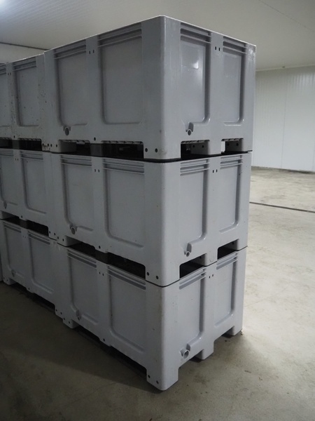 3 plastic pallet boxes, dimensions: (3x) 1200 mm x 1000 mm x 740 mm.