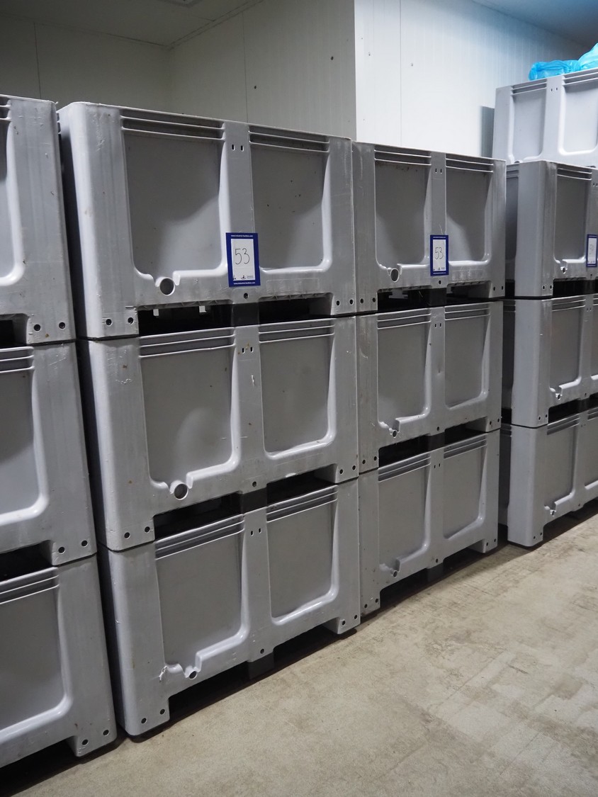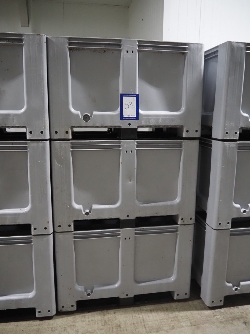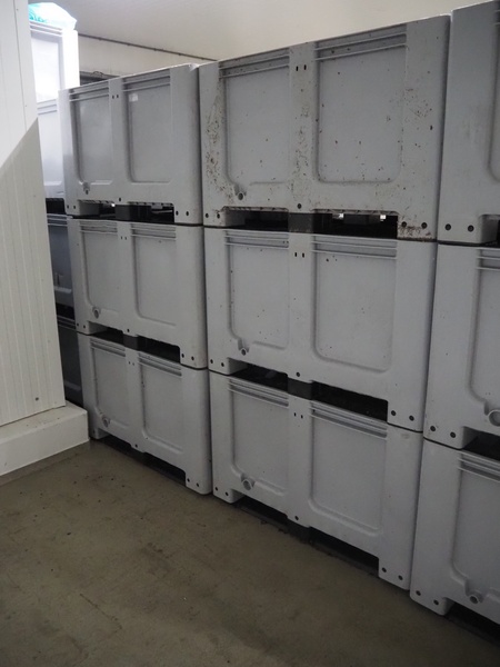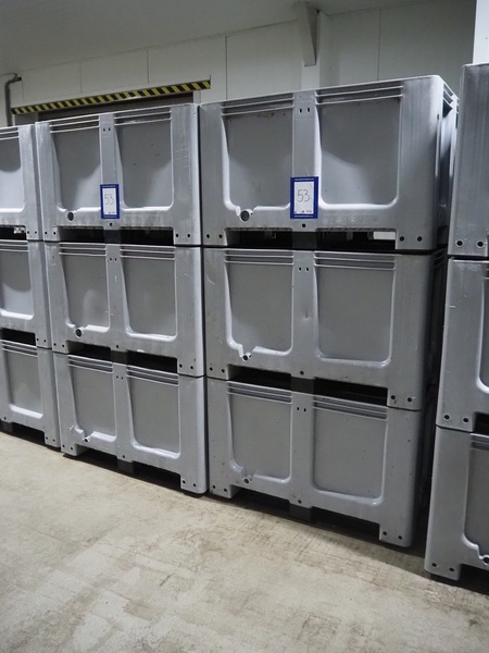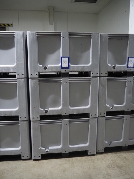 6 plastic pallet boxes, dimensions: (6x) 1200 mm x 1000 mm x 740 mm.