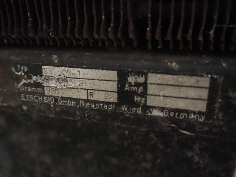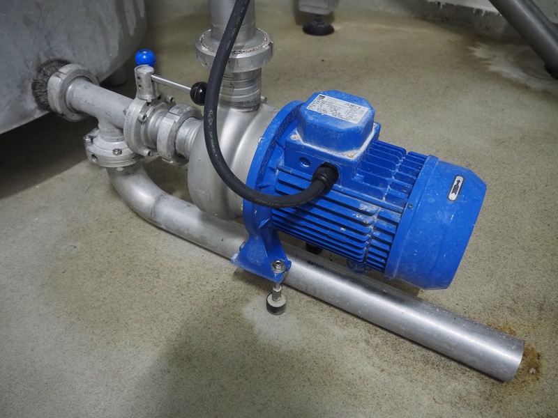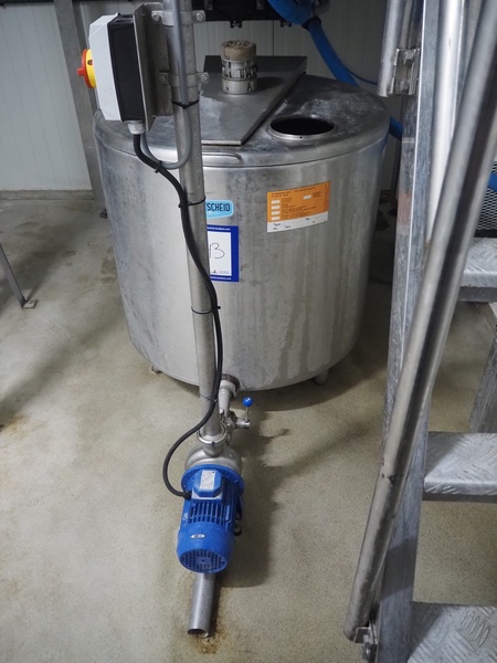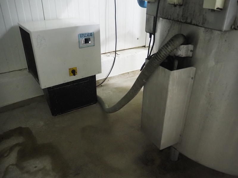 Etscheid double jacked cooled tank with centrifugal pump, inside dimensions: Ø 950 mm x 700 mm, total dimensions: 1150 mm x 1050 mm x 1270 mm, dimensions cool unit: 500 mm x 450 mm x 700 mm.
