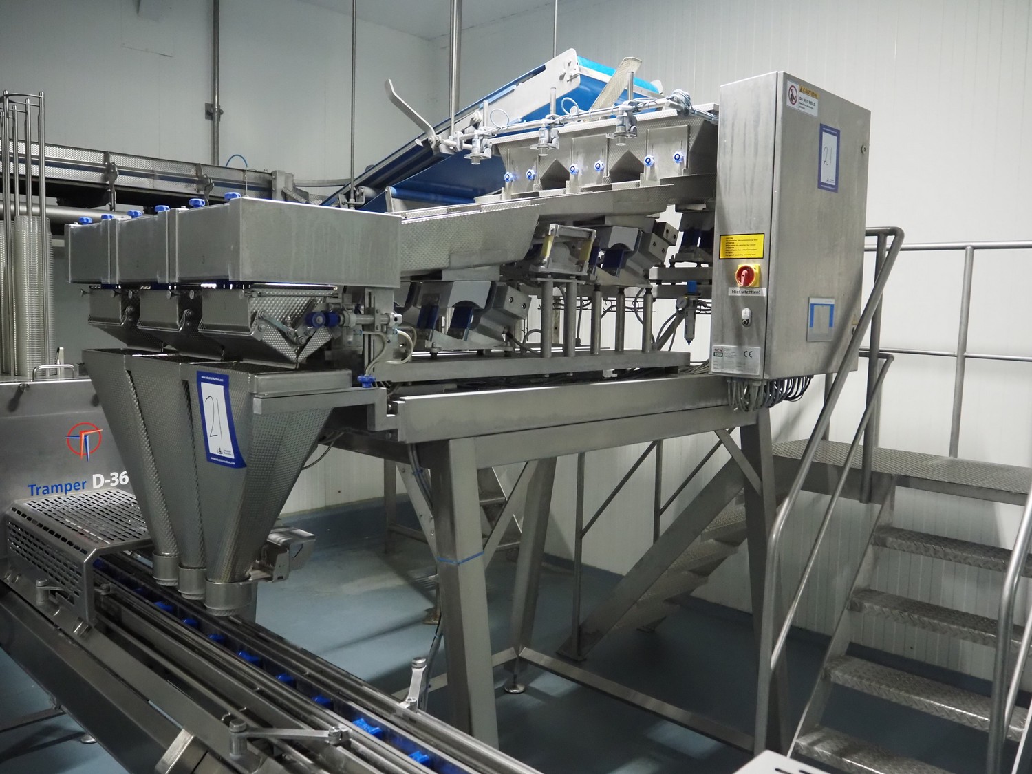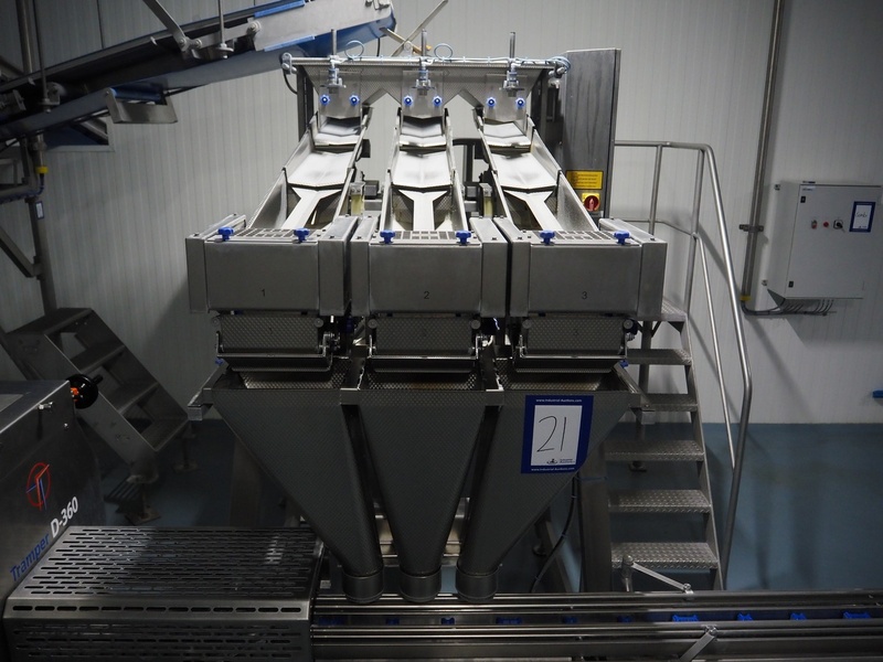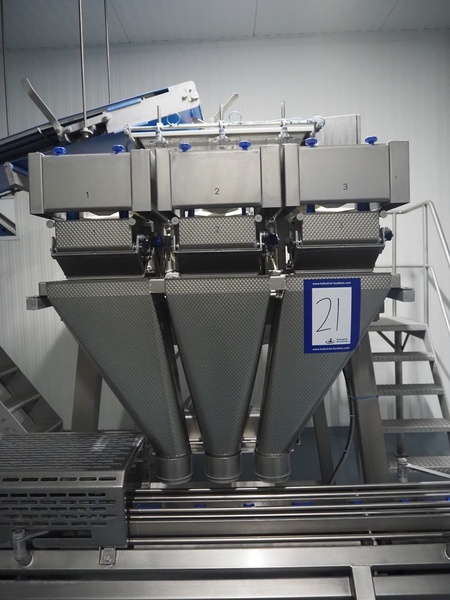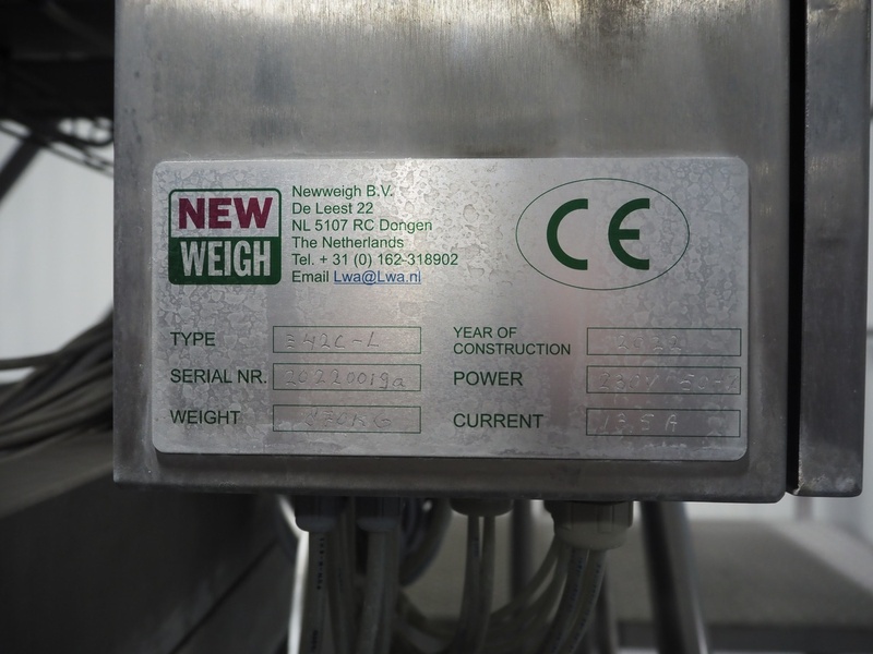 NewWeigh 3 head linear weigher, type: E42C-L, serial number: 20220019a, year of construction: 2022, 230 V, 50 Hz, 13.5 A, gutter width: (3x) 180 mm, total dimensions: 2350 mm x 1350 mm x 2450 mm.