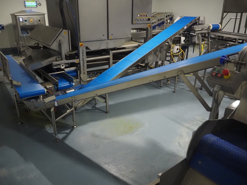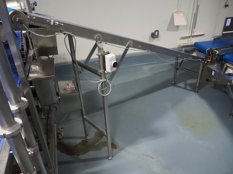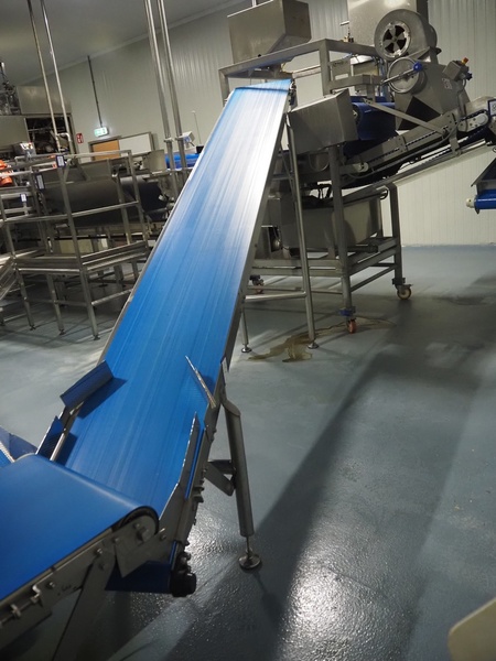Elevating belt, s/s frame, plastic belt, belt width: 440 mm, elevating height: 1960 mm, total dimensions: 3800 mm x 700 mm x 1980 mm.