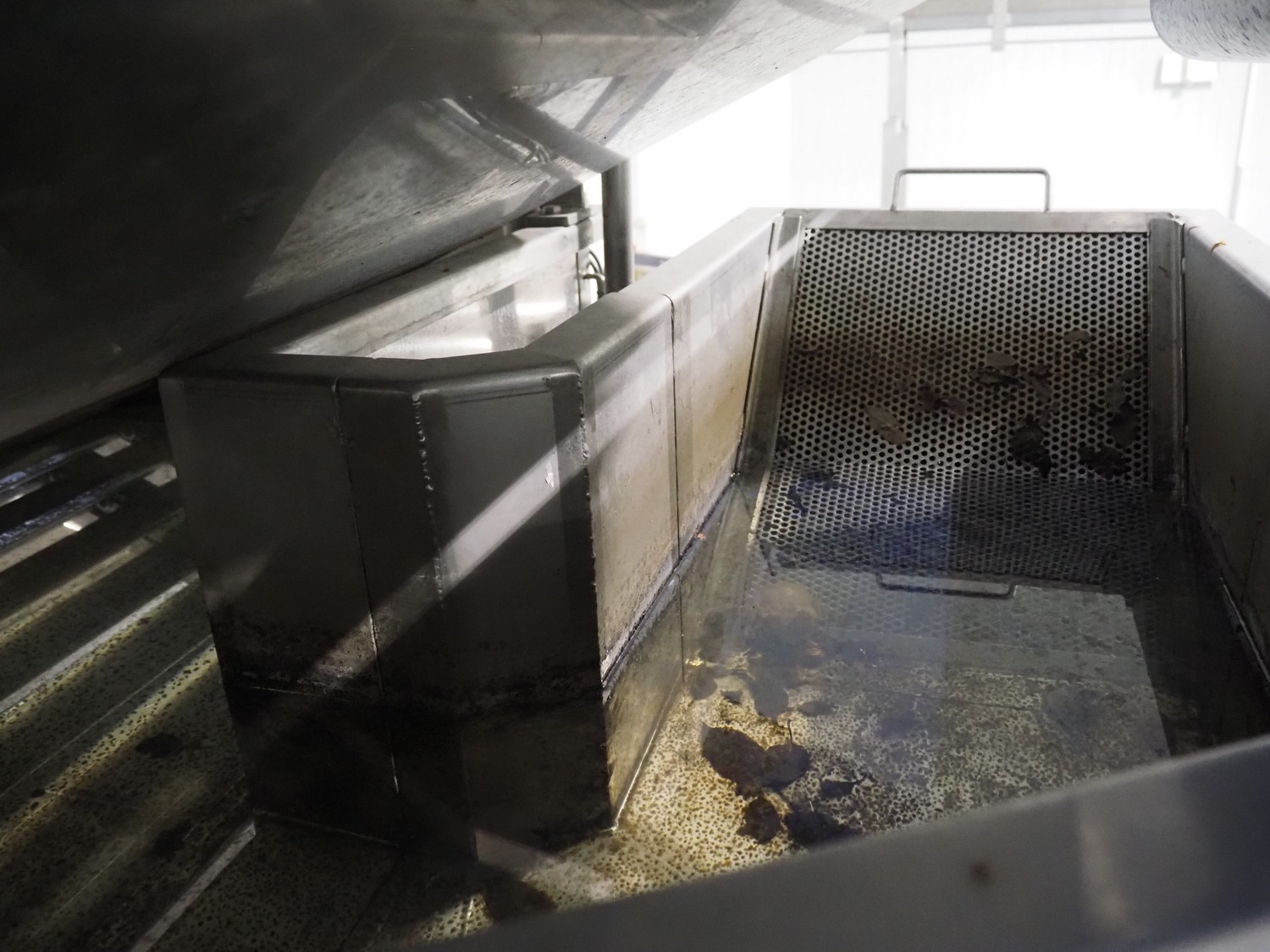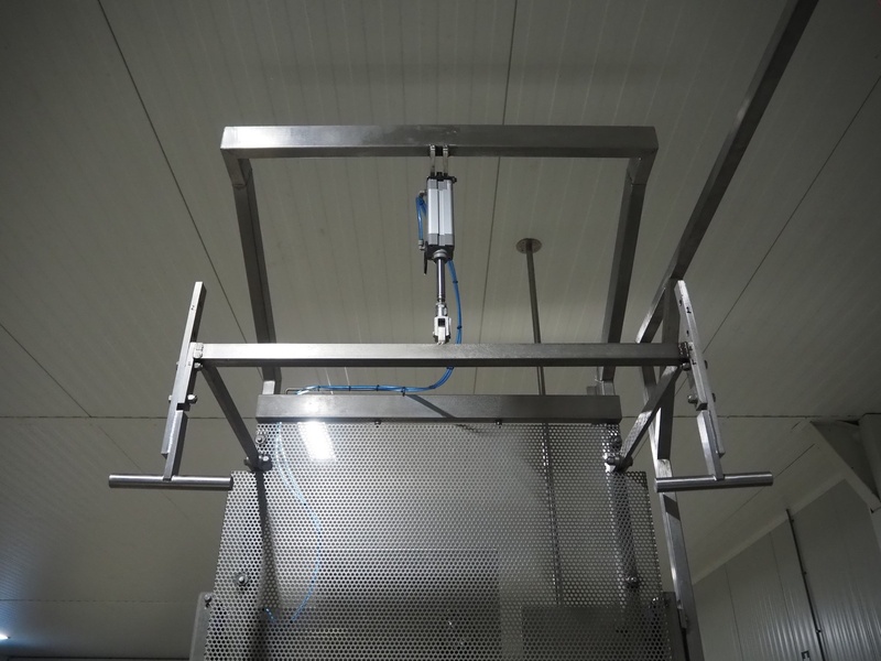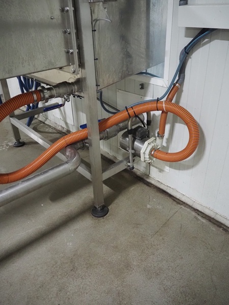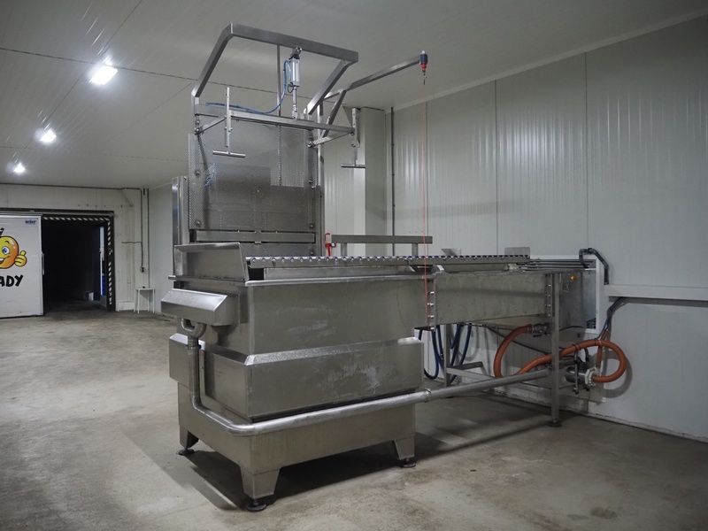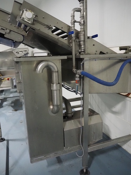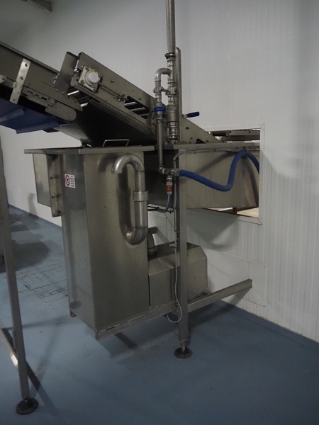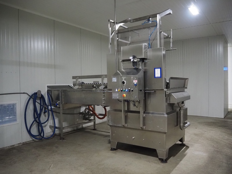 PND infeed bunker for apples with bin dumper, model, BINS DUMPER, serial number: RCV 009 NL, year of construction: 2022, s/s roller bin dumper, roller width: 290 mm, s/s outfeed roller belt, roller width: 1020 mm, total dimensions: 1950 mm x 3300 mm x 5400 mm.