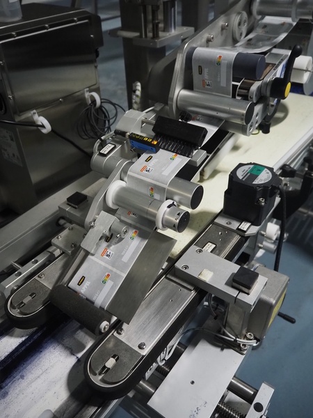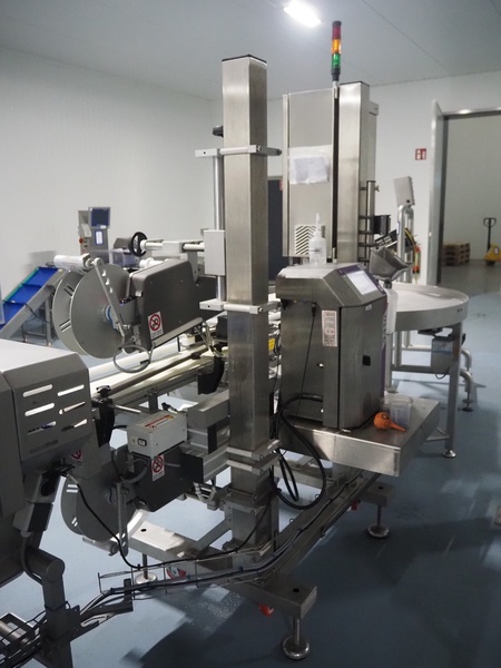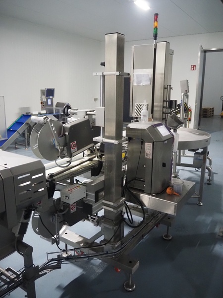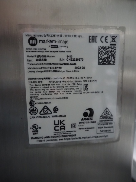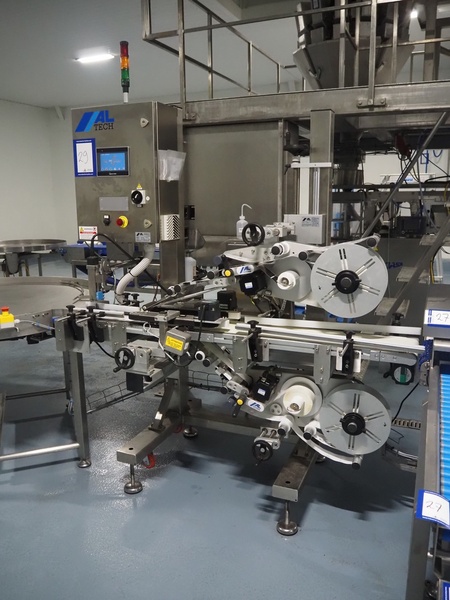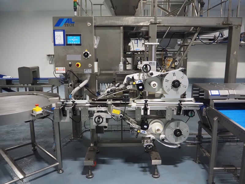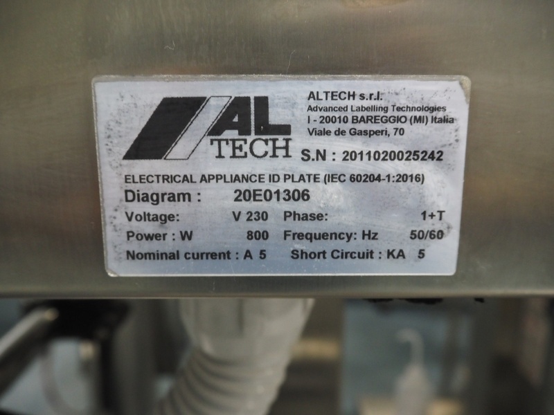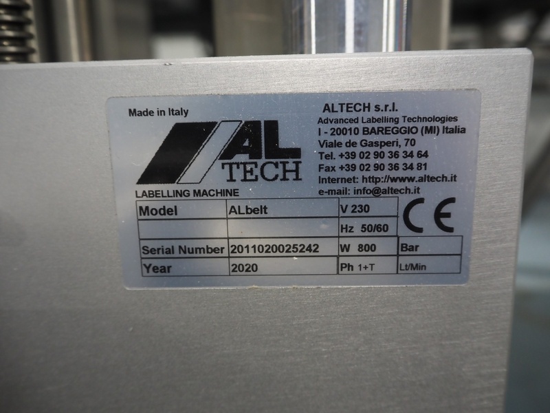 ALTECH top and bottom labeller with Markem-Imaje inkjet printer, type: Albelt, serial number: 2011020025242, year of construction: 2020, 230 V, 50/60 Hz, 800 W, plastic belt, belt width: (2x) 200 mm, type inkjet printer: 9410, serial number: CN22320570, year of construction: 2022-08, total dimensions: 1740 mm x 1350 mm x 2340 mm.