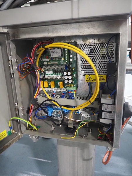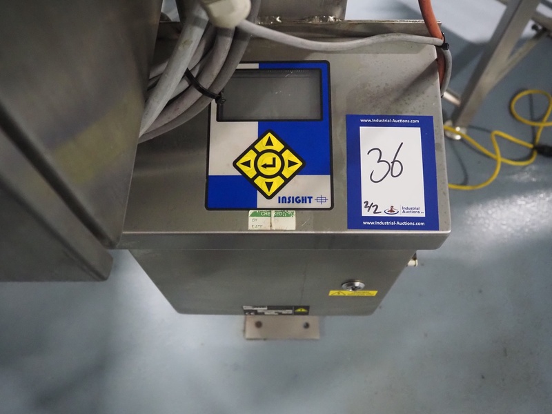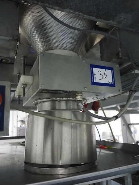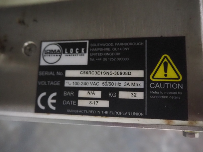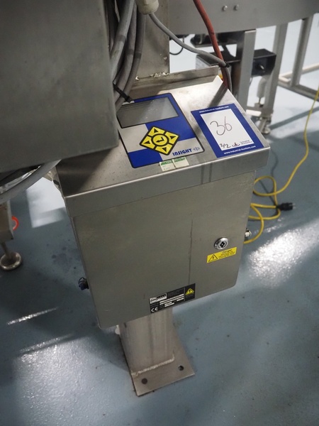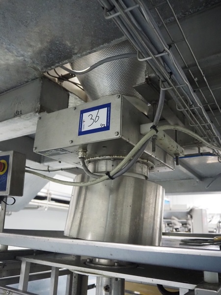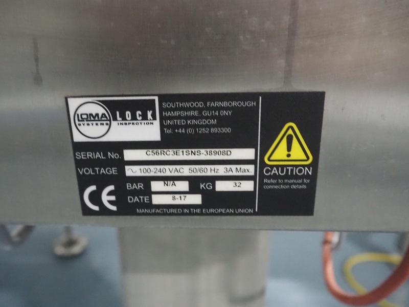 Loma Systems fall through metal detector, serial number: C56RC3E1SNS-38908D, year of construction: 8-17, 100-240 V, 50/60 Hz, 3 A, clearance: Ø 120 mm, dimensions metal detector head: 300 mm x 400 mm x 220 mm, dimensions control cabinet: 300 mm x 175 mm x 400 mm.