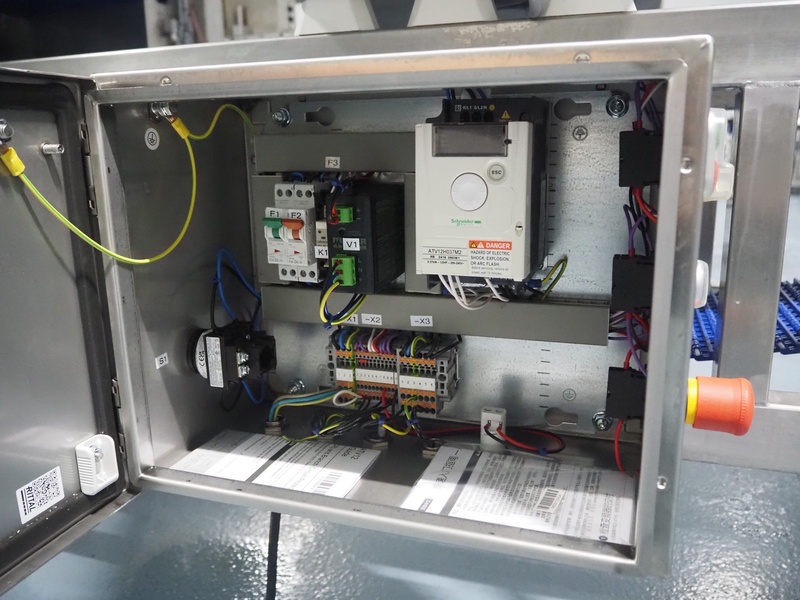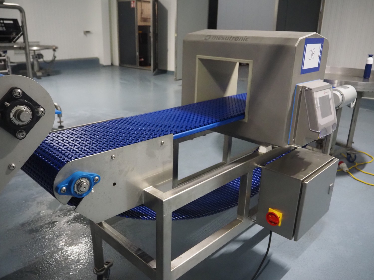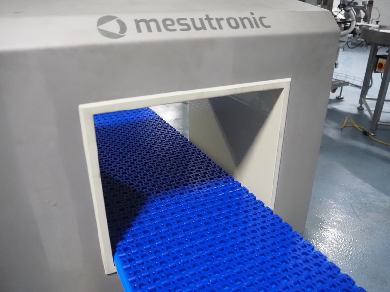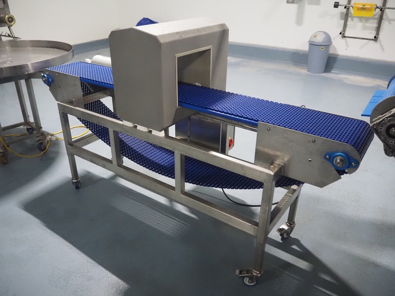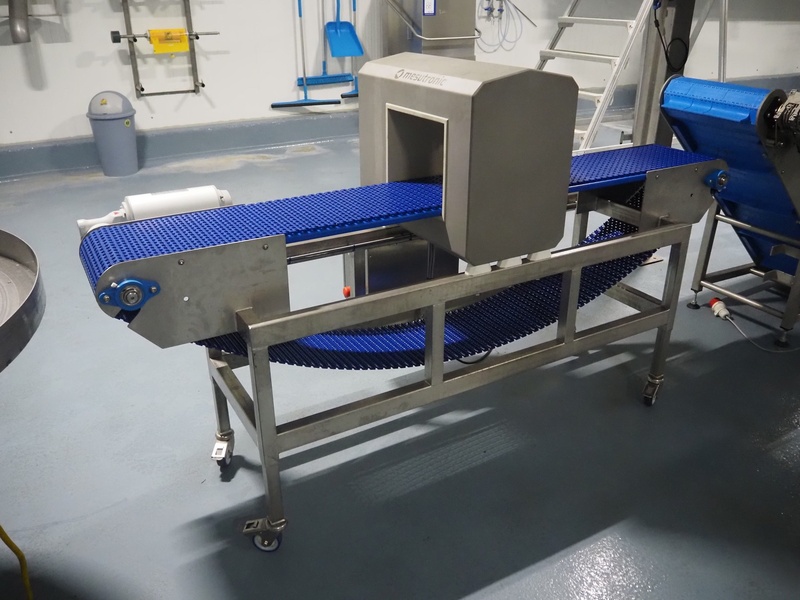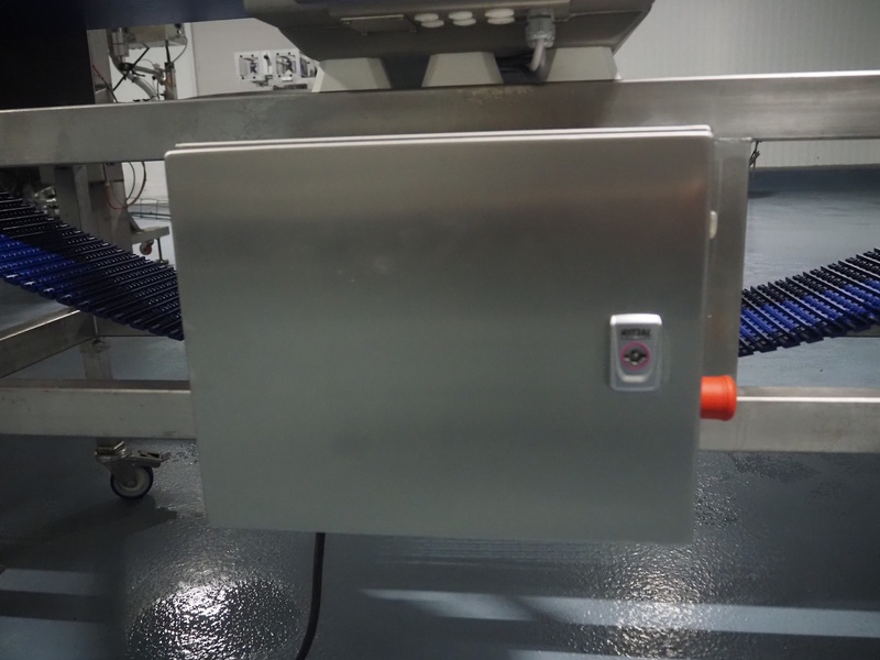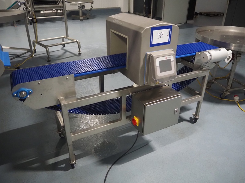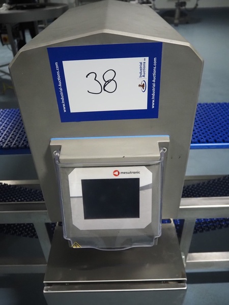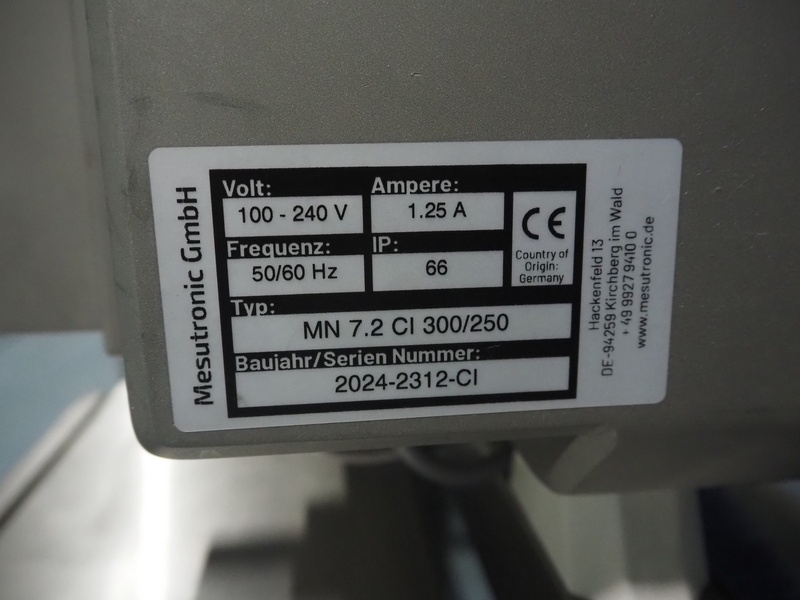 Mesutronic GmbH mobile metal detector, type: MN 7.2 CI 300/250, serial number: 2312-CI, year of construction: 2024, 100-240 V, 50/60 Hz, 1.25 A, clearance: 300 mm x 220 mm, plastic mesh belt, belt width: 280 mm, total dimensions: 2100 mm x 760 mm x 1250 mm.
