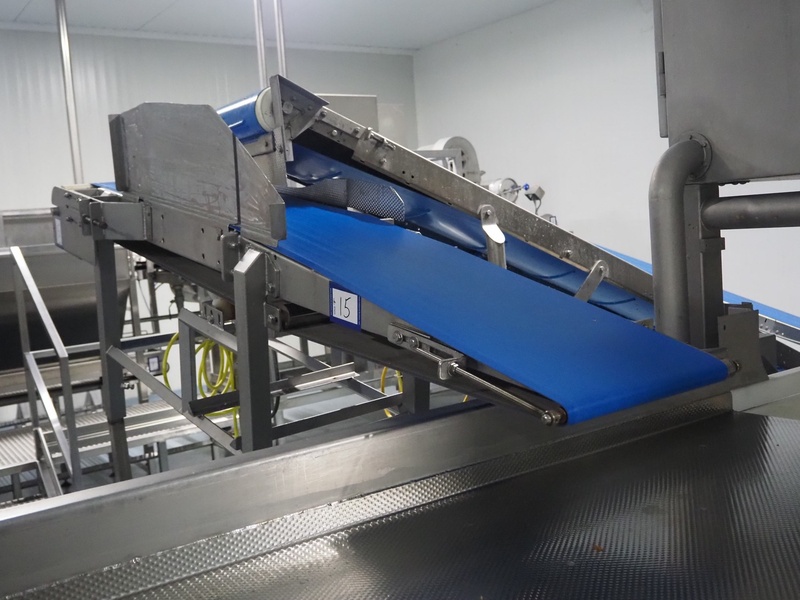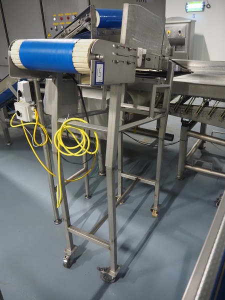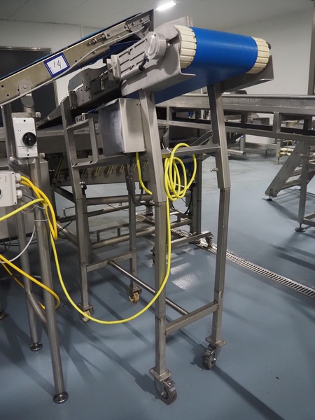 Transport belt, s/s frame, plastic belt, belt width: 350 mm, total dimensions: 2100 mm x 680 mm x 2000 mm.