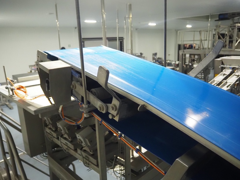 Hanging transport belt, s/s frame, plastic belt, belt width: 500 mm, total dimensions: 1950 mm x 860 mm x 500 mm.