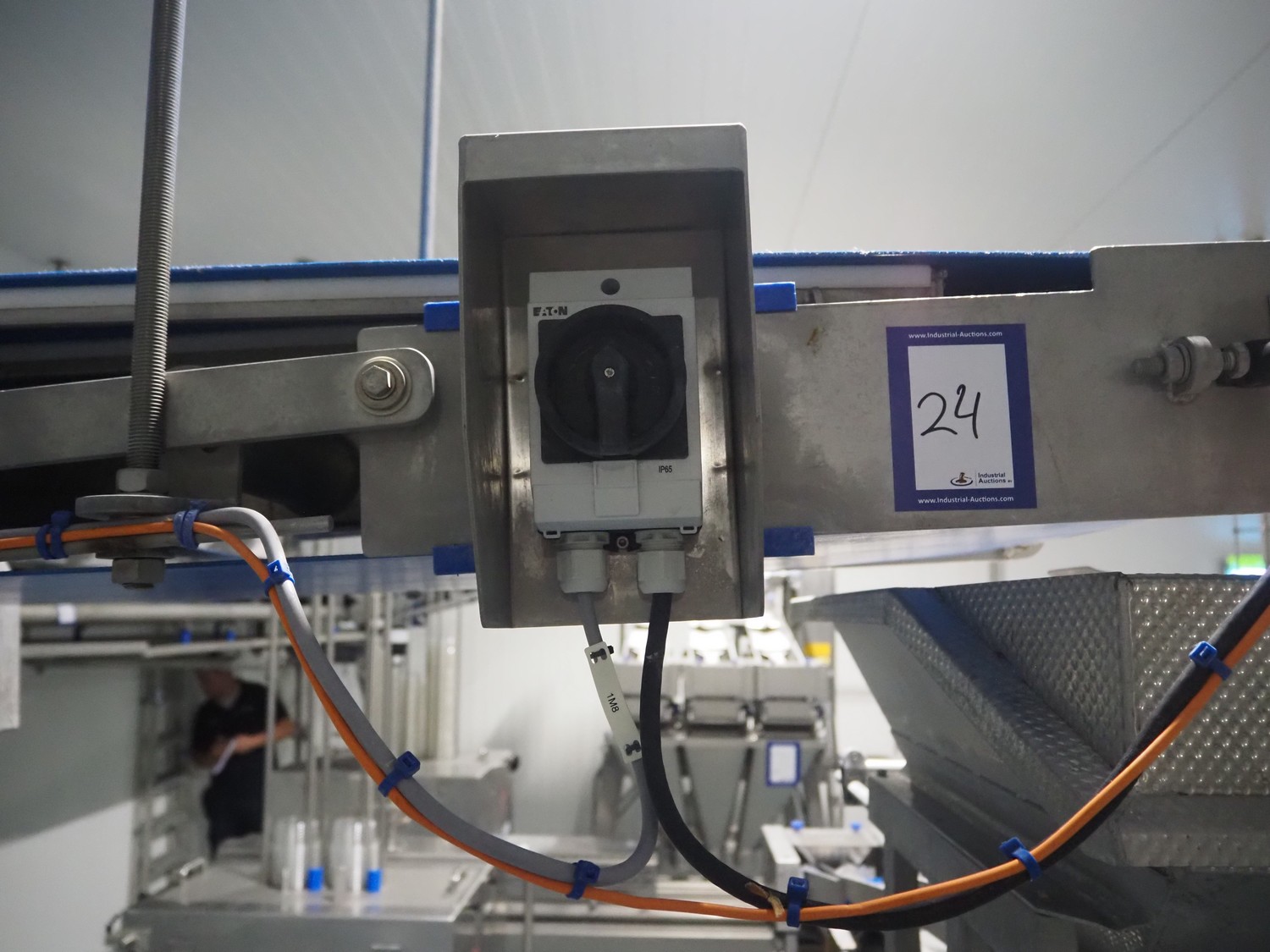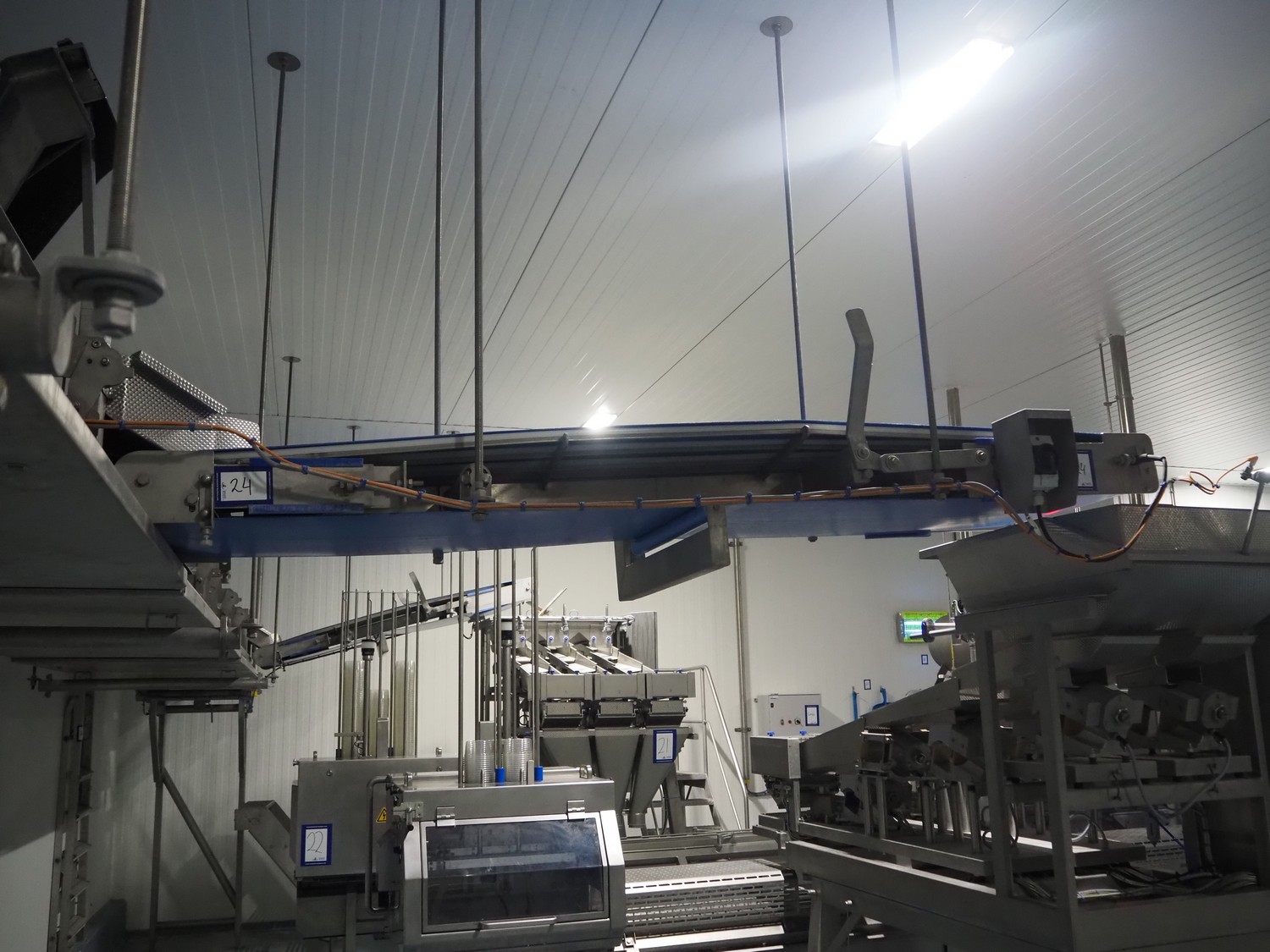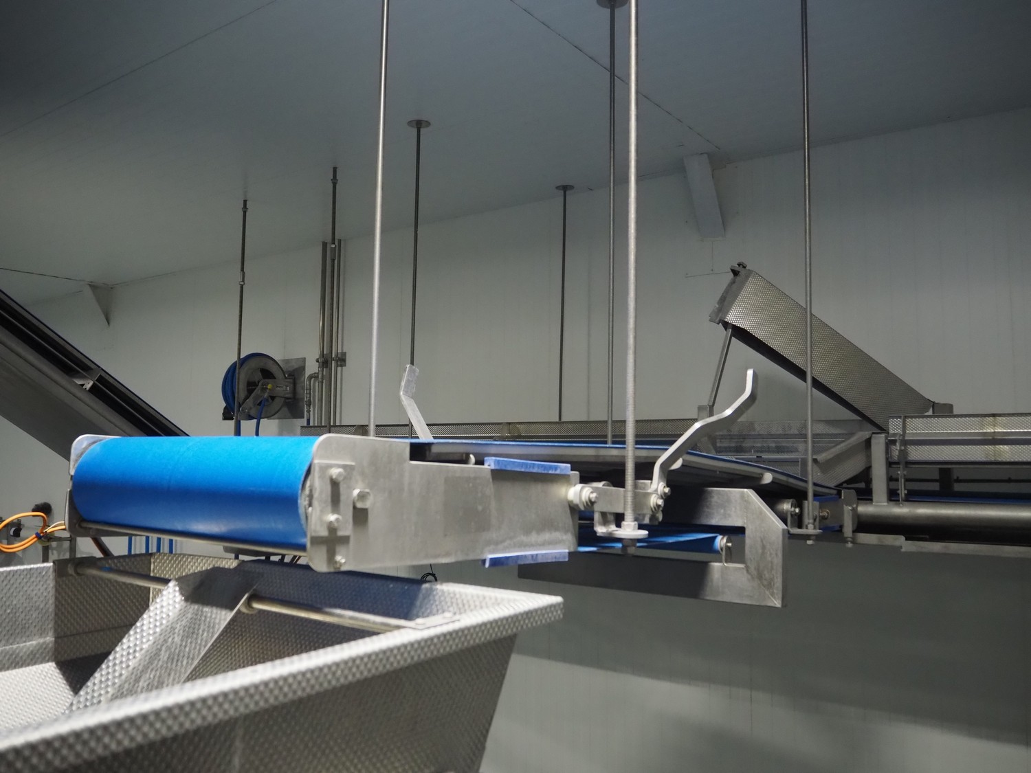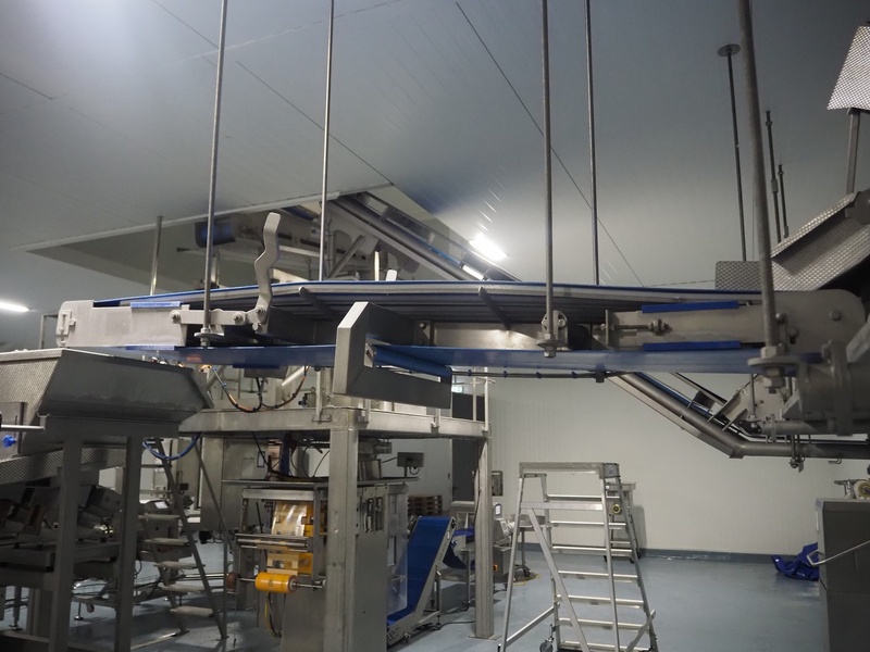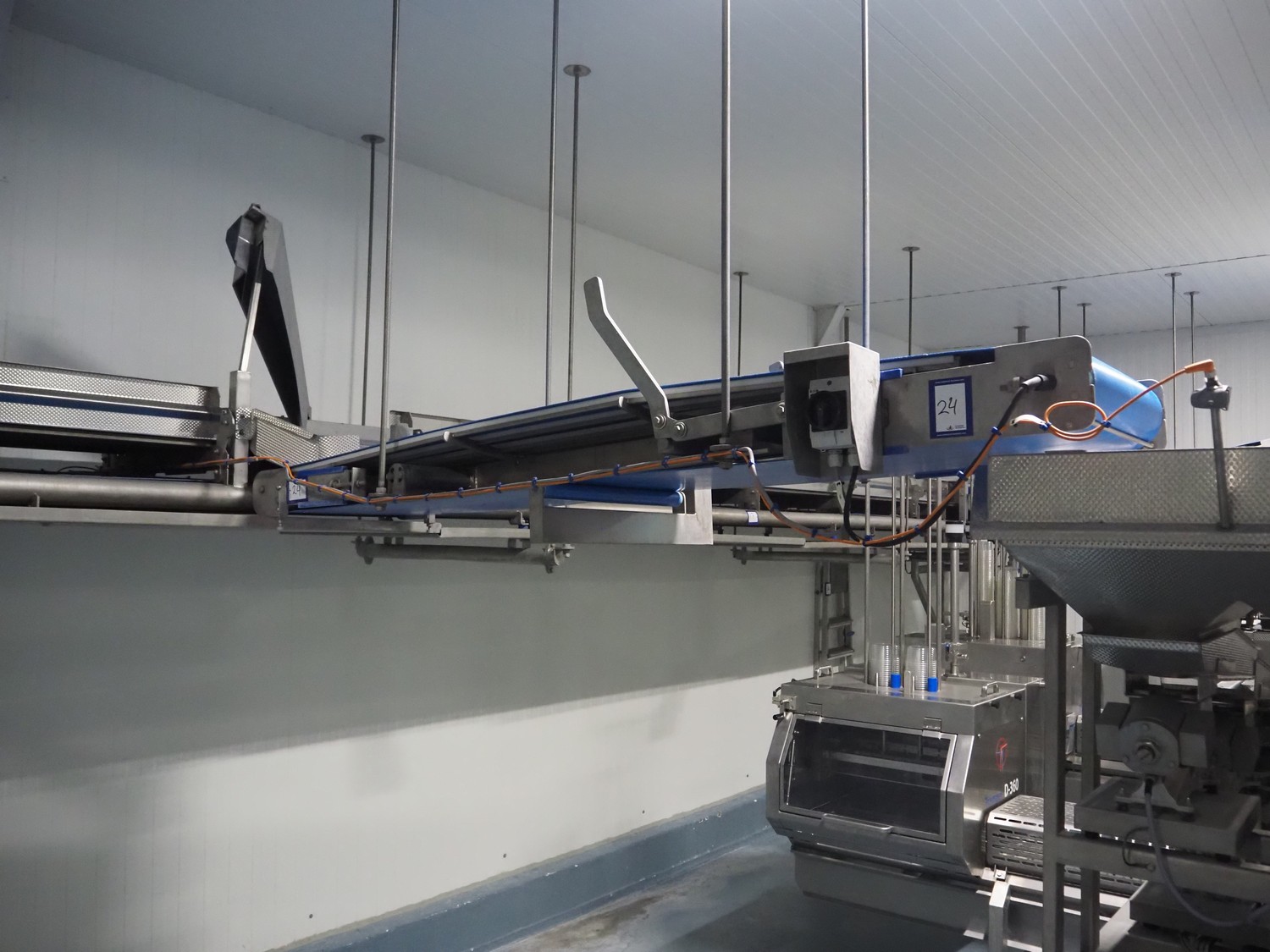 Hanging transport belt, s/s frame, plastic belt, belt width: 500 mm, total dimensions: 2280 mm x 860 mm x 500 mm.
