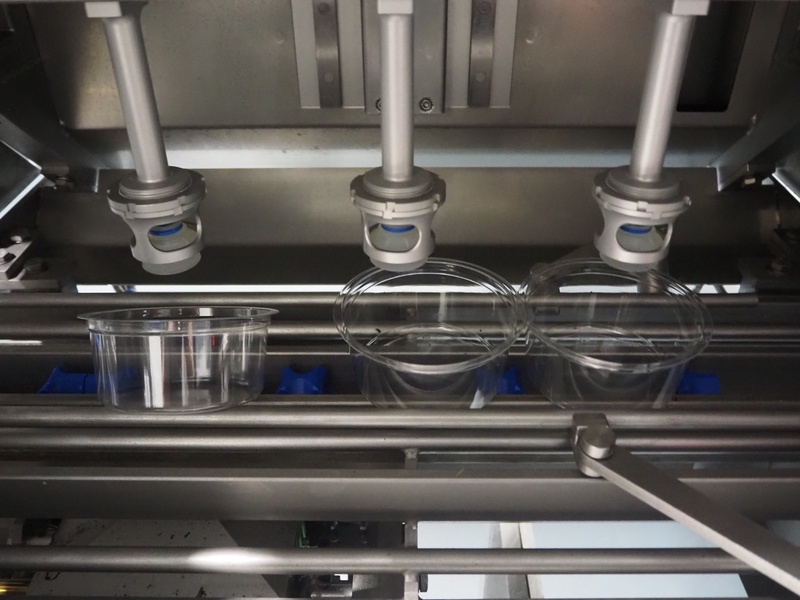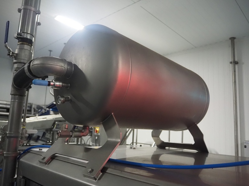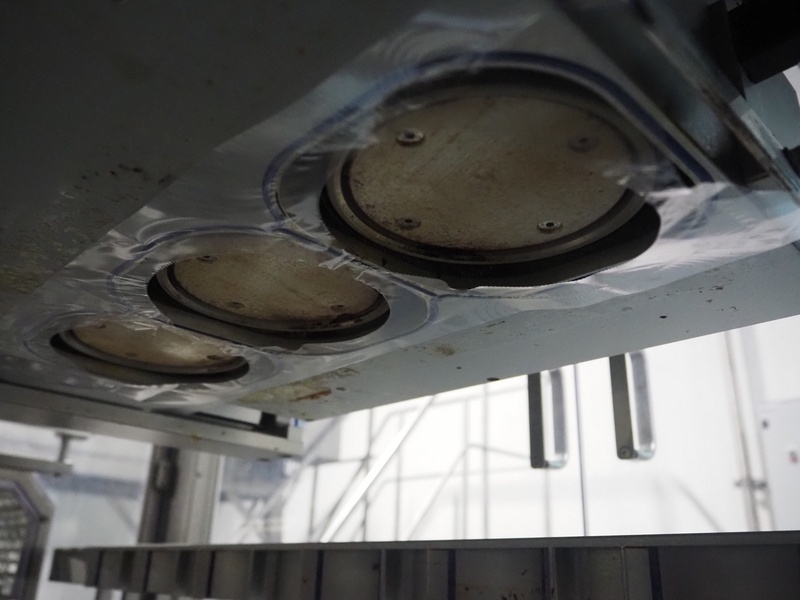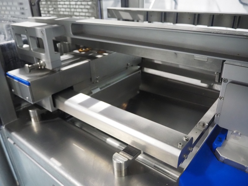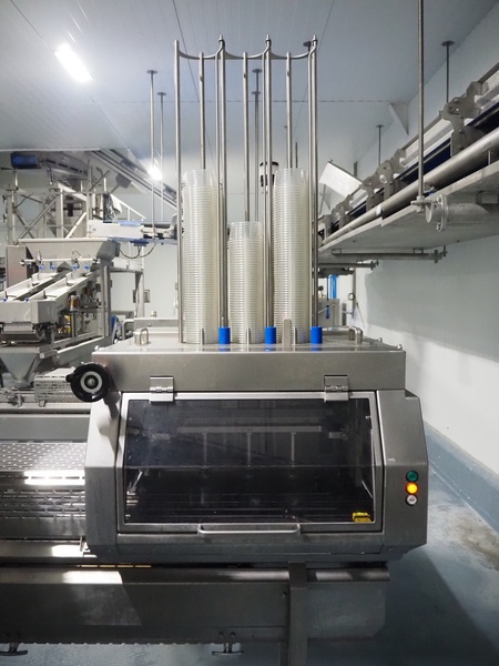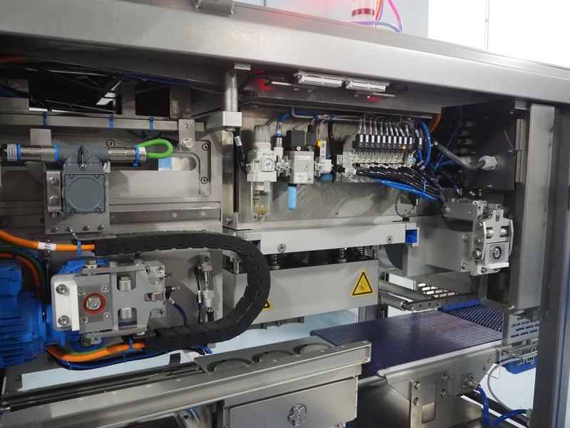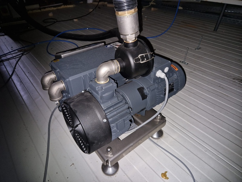 Tramper Technology traysealer with denester, type denester: D-360, serial number: 216, year of construction: 2022, weight: 160 kg, type traysealer: S-340, serial number: 026, year of construction: 2022, 400 V, 6 bar, weight: 1900 kg, plastic walking beam infeed, clearance: 125 mm, dye: (2x) Ø 124 mm, plastic outfeed belt, belt width: 355 mm, total dimensions: 6400 mm x 1200 mm x 2300 mm. Including Busch vacuum pump, type: RA 0063 F 503, capacity: 63 m³ per hour, dimensions: 600 mm x 550 mm x 400 mm.