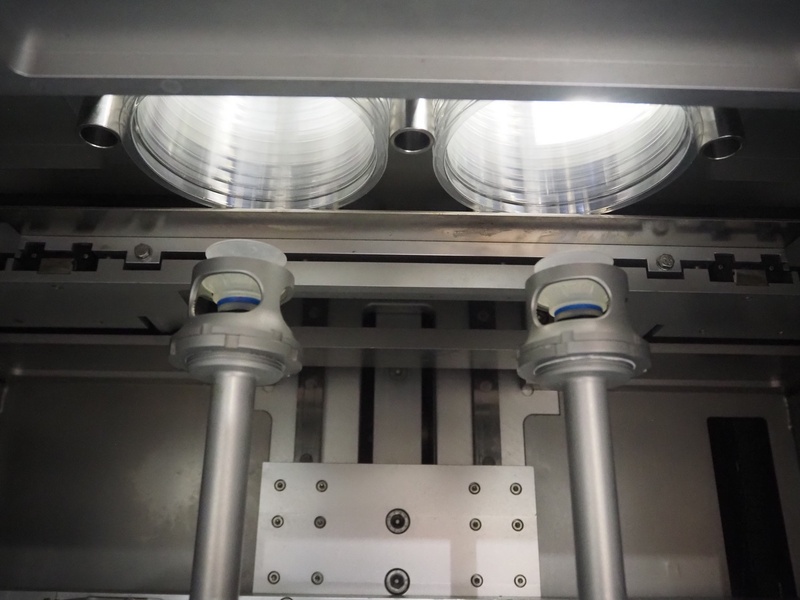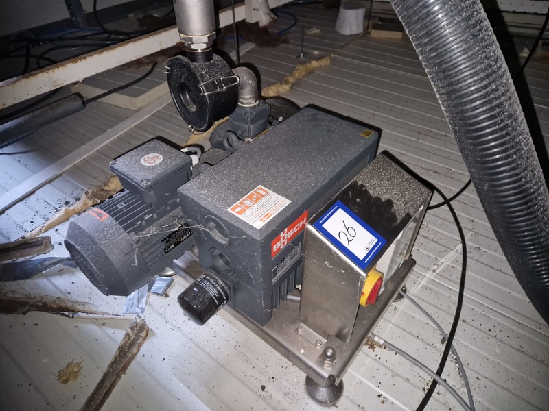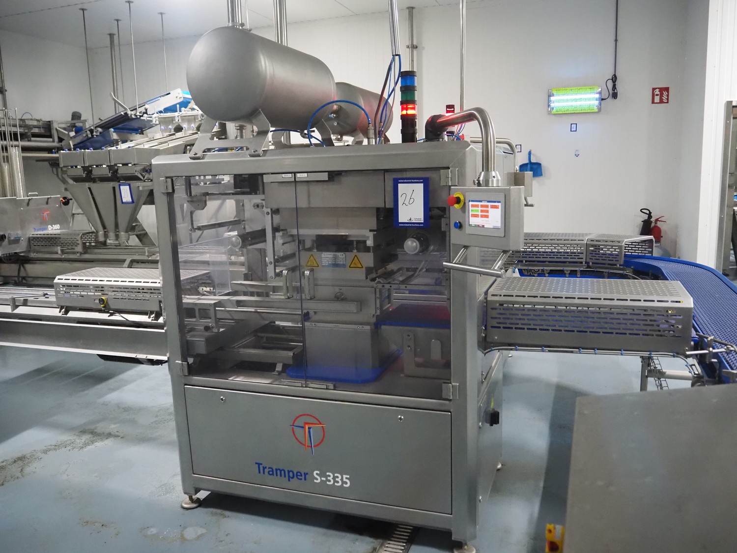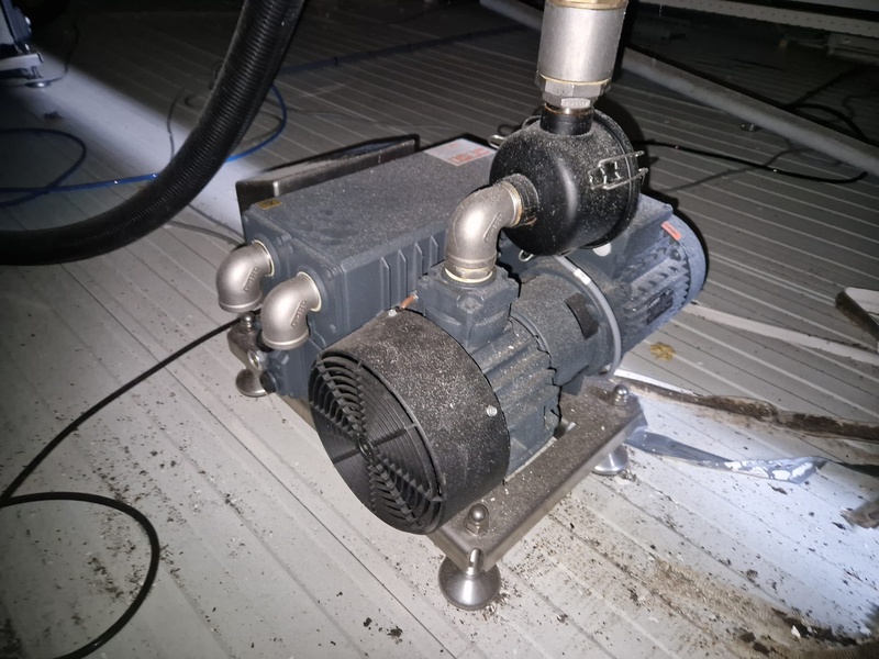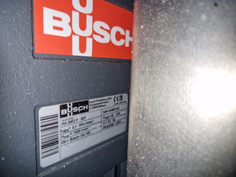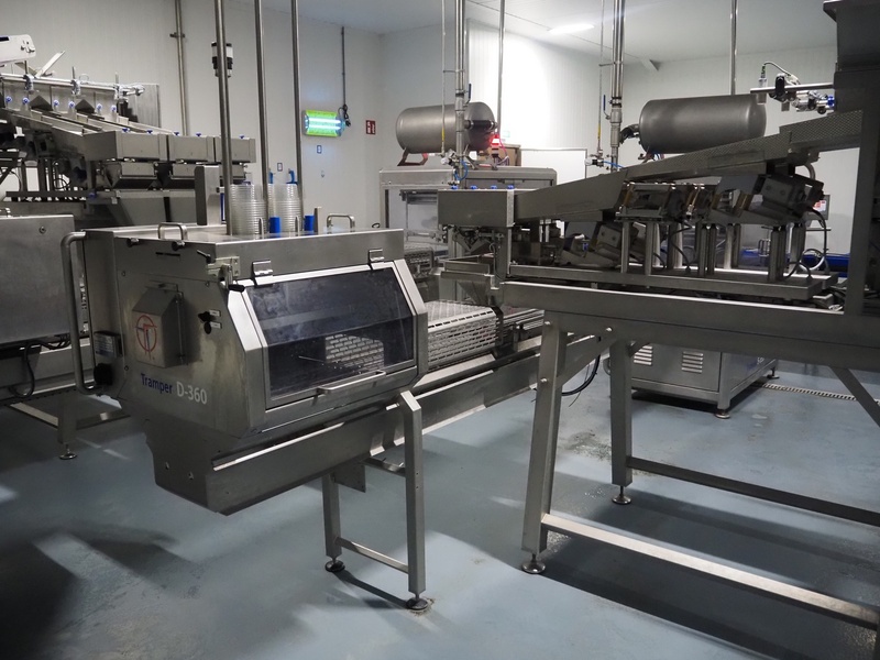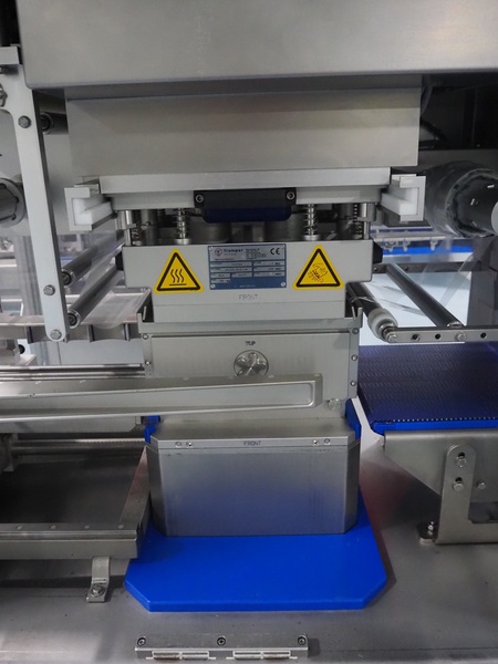 Tramper Technology traysealer with denester, type denester: MTO-3060, serial number: 015, year of construction: 2010, revised: 2021, weight: 160 kg, type traysealer: S-335, serial number: 010, year of construction: 2011, revised: 2021, 400 V, 6 bar, weight: 1900 kg, plastic walking beam infeed, clearance: 125 mm, dye: (2x) Ø 124 mm, plastic outfeed belt, belt width: 355 mm, total dimensions: 6400 mm x 1200 mm x 2300 mm. Including Busch vacuum pump, type: RA 0063 F 503, capacity: 63 m³ per hour, dimensions: 600 mm x 550 mm x 400 mm.