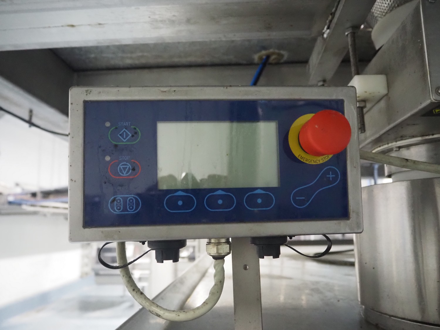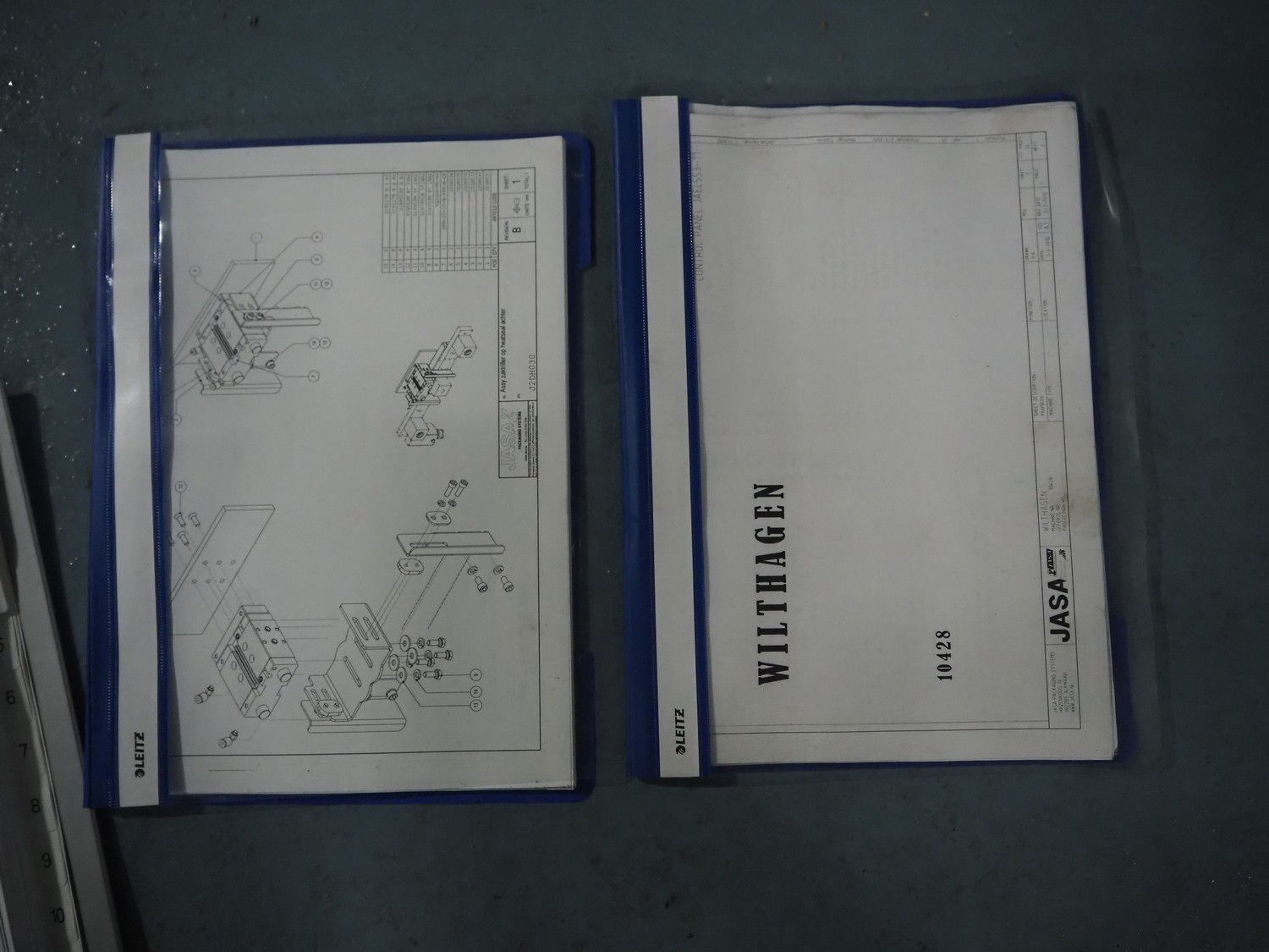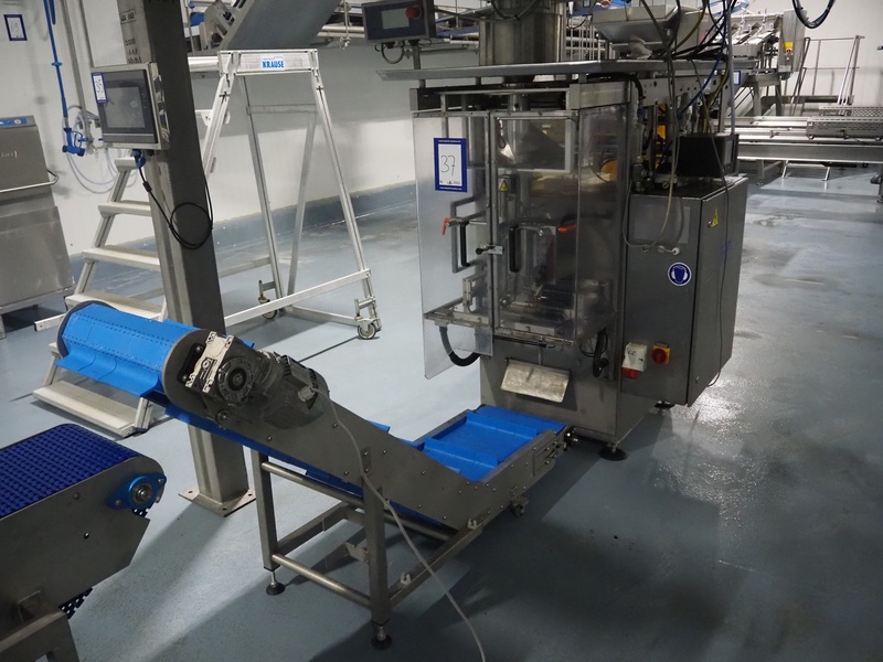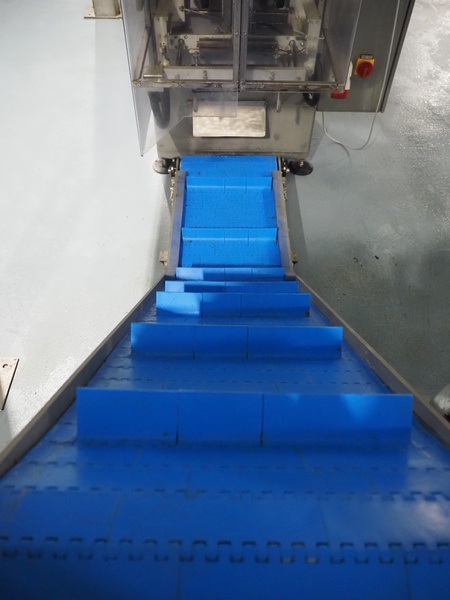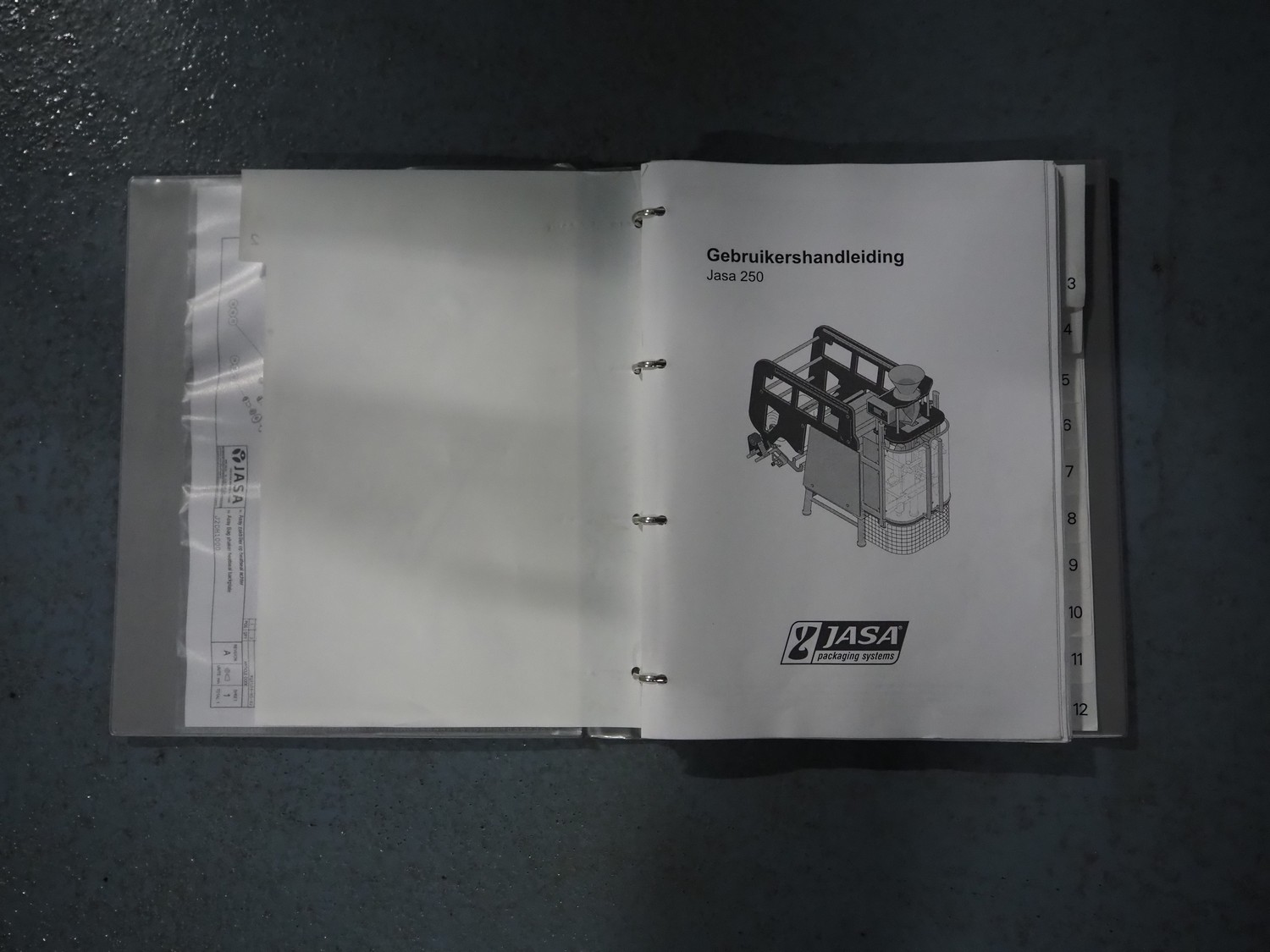 Jasa vertical bag form-, fill- and seal machine, type: 250, number: 10428, year of construction: 1998, 380 V, 3 Ph, 10 A, 3 kW, 6 bar, film width: 310 mm, filling pipe: Ø 70 mm, vertical seal length: 450 mm, horizonal seal length: 270 mm, total dimensions: 960 mm x 1960 mm x 1870 mm. Including AluMac elevating belt, s/s frame, plastic belt and dividers, belt width: 400 mm, divider height: 50 mm, distance between dividers: 150 mm and 300 mm, elevating height: 1120 mm, total dimensions: 1850 mm x 650 mm x 1150 mm.