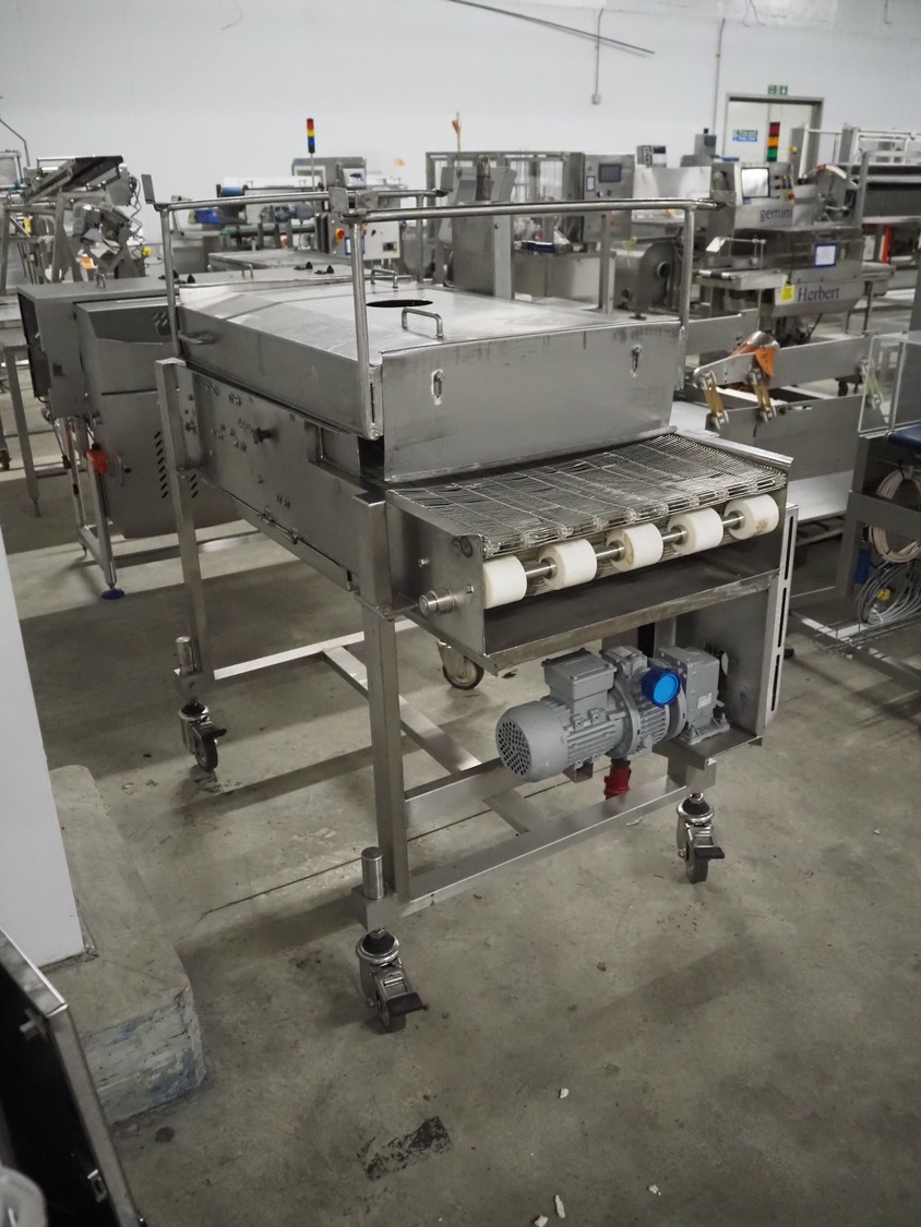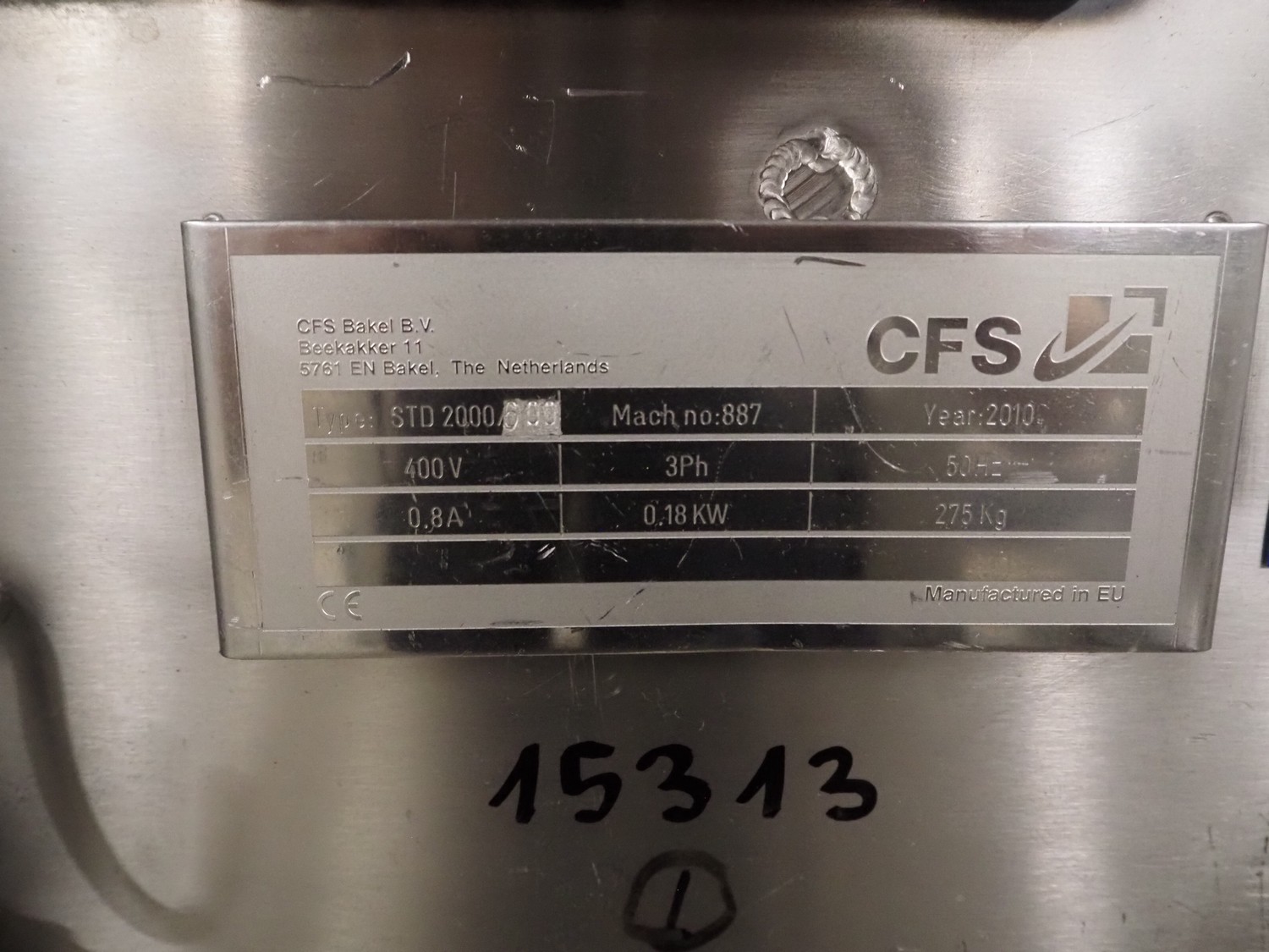 CFS Bakel B.V. deglazer, type: STD 2000/600, machine number: 887, year of construction: 2010, 400 V, 3 Ph, 50 Hz, 0.8 A, 0.18 kW, weight: 275 kg, s/s mesh belt, belt width: 600 mm, total dimensions: 1600 mm x 900 mm x 1530 mm.