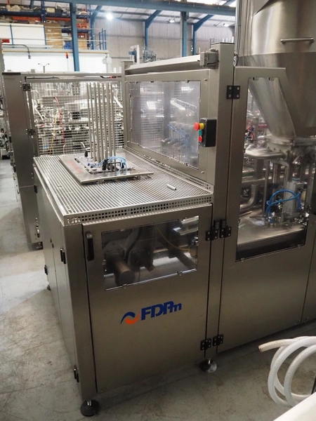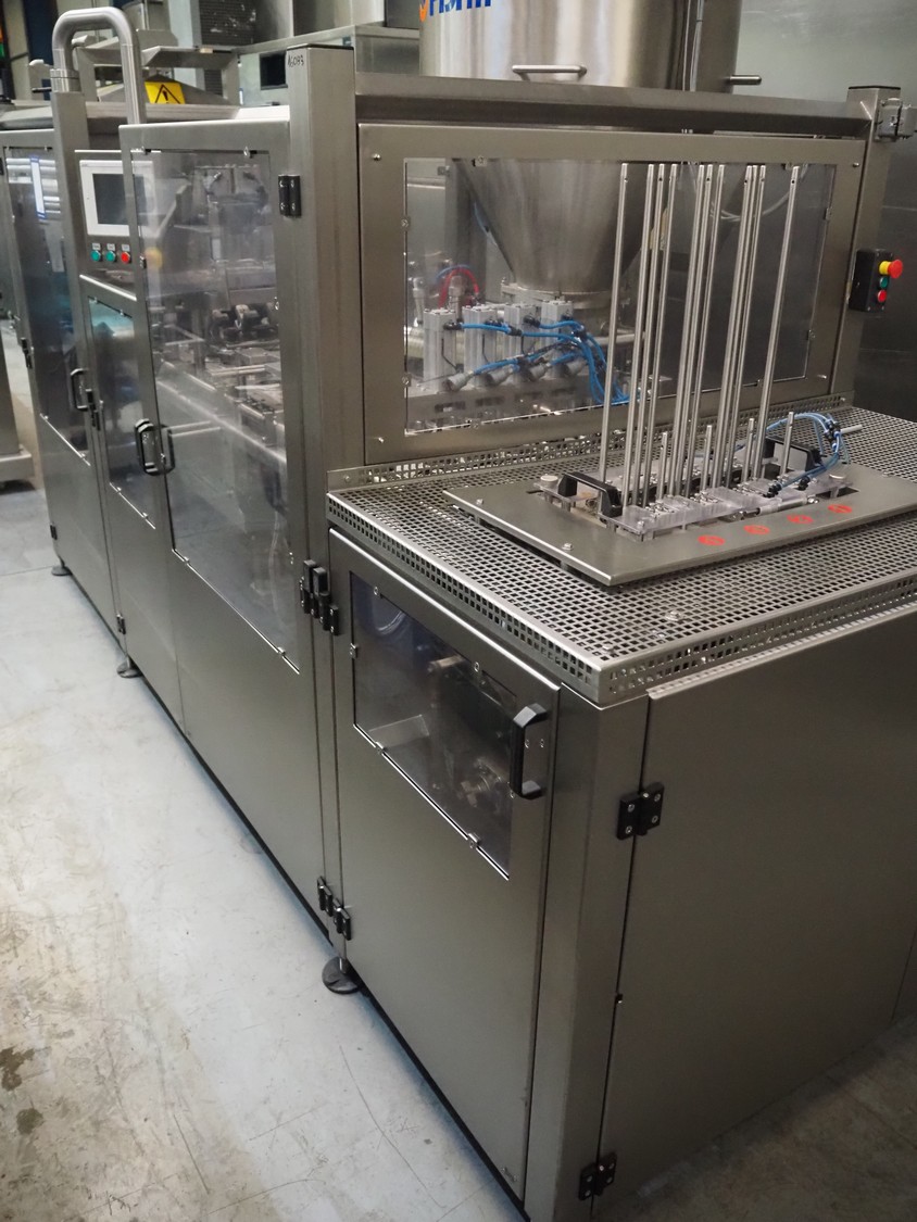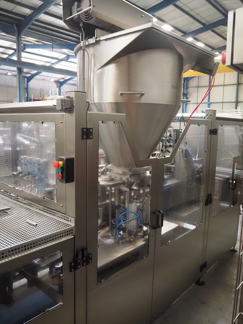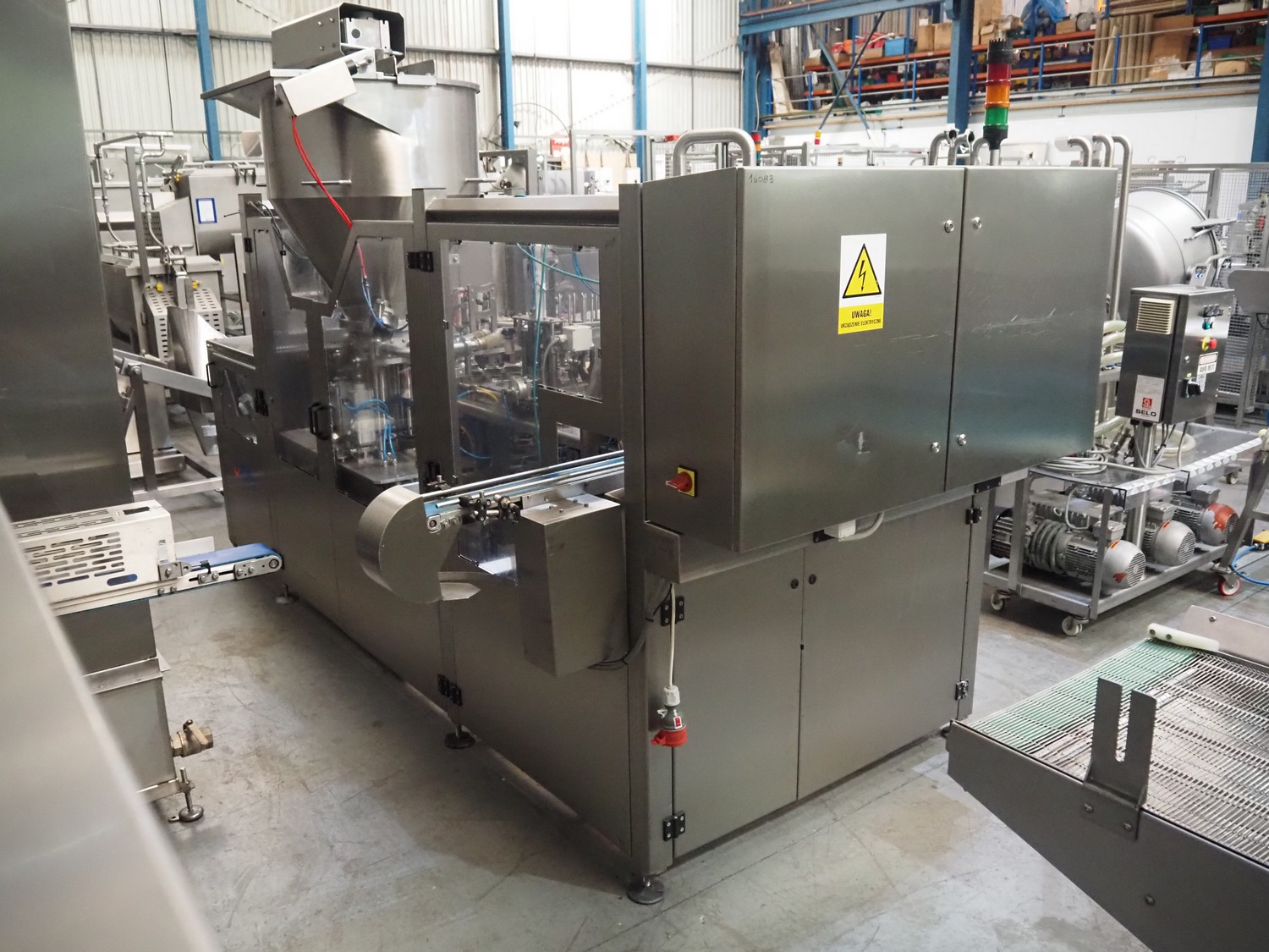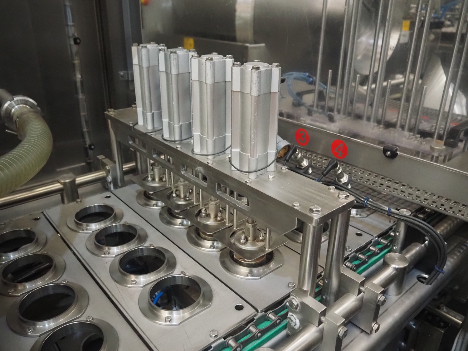 Food Dosing Packing Machines SP. Z.O.O. cup filling and sealing machine, type: PAK 4LP, machine number: 468, year of construction: 2016, 400 V, 3 Ph, 8 k W, weight: 2700 Kg, 4 lane cup denester, 4 lanes, cup dimensions: Ø (4x) 75 mm, total dimensions: 3950 mm x 2100 mm x 2550 mm.