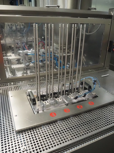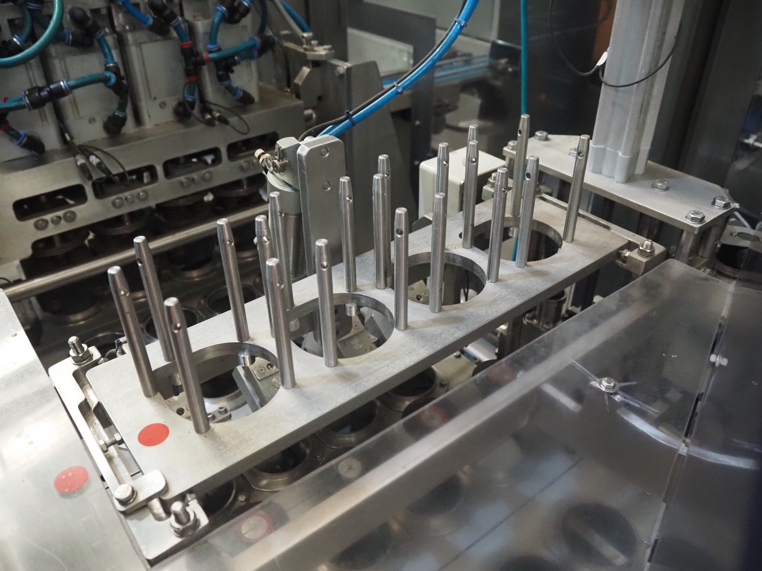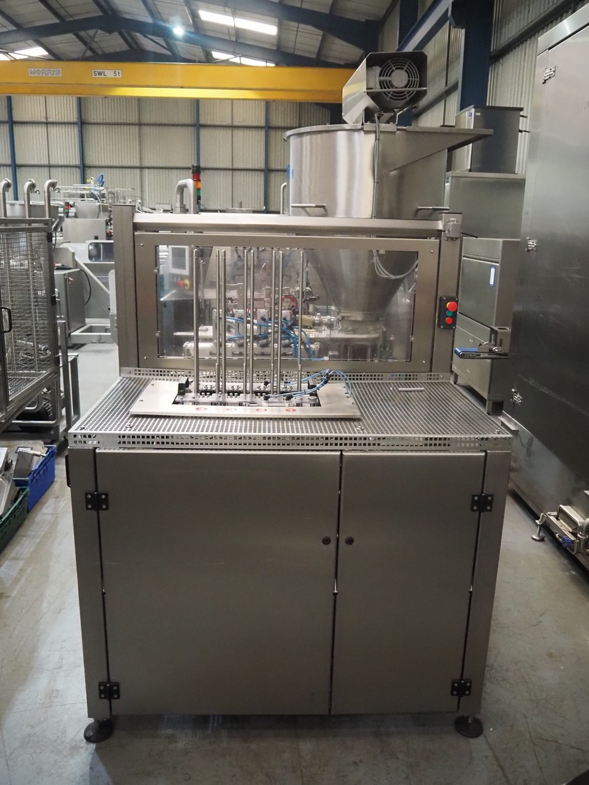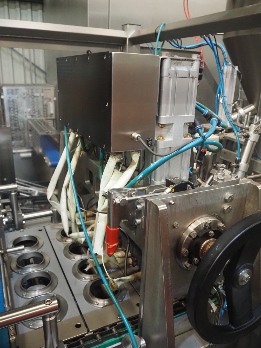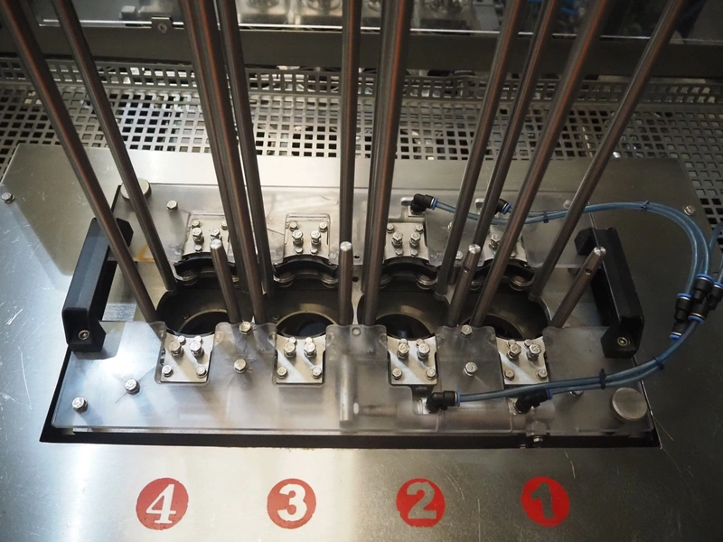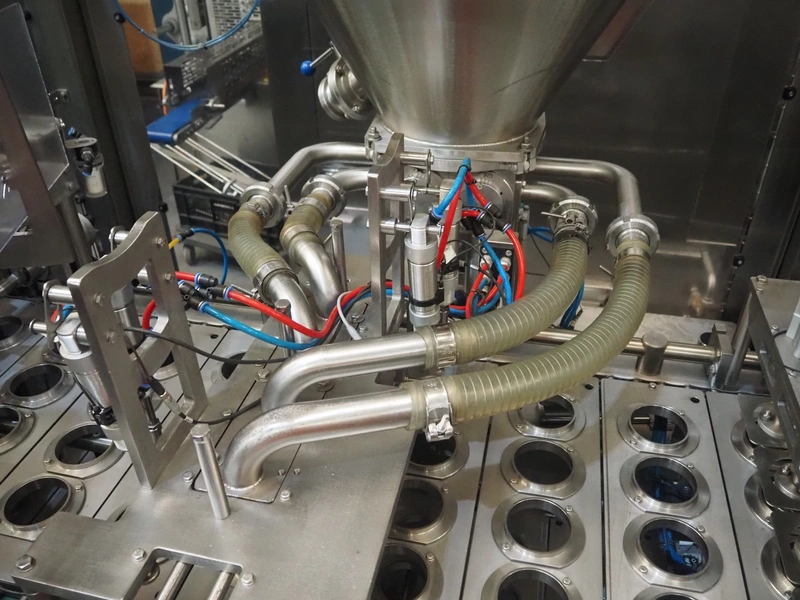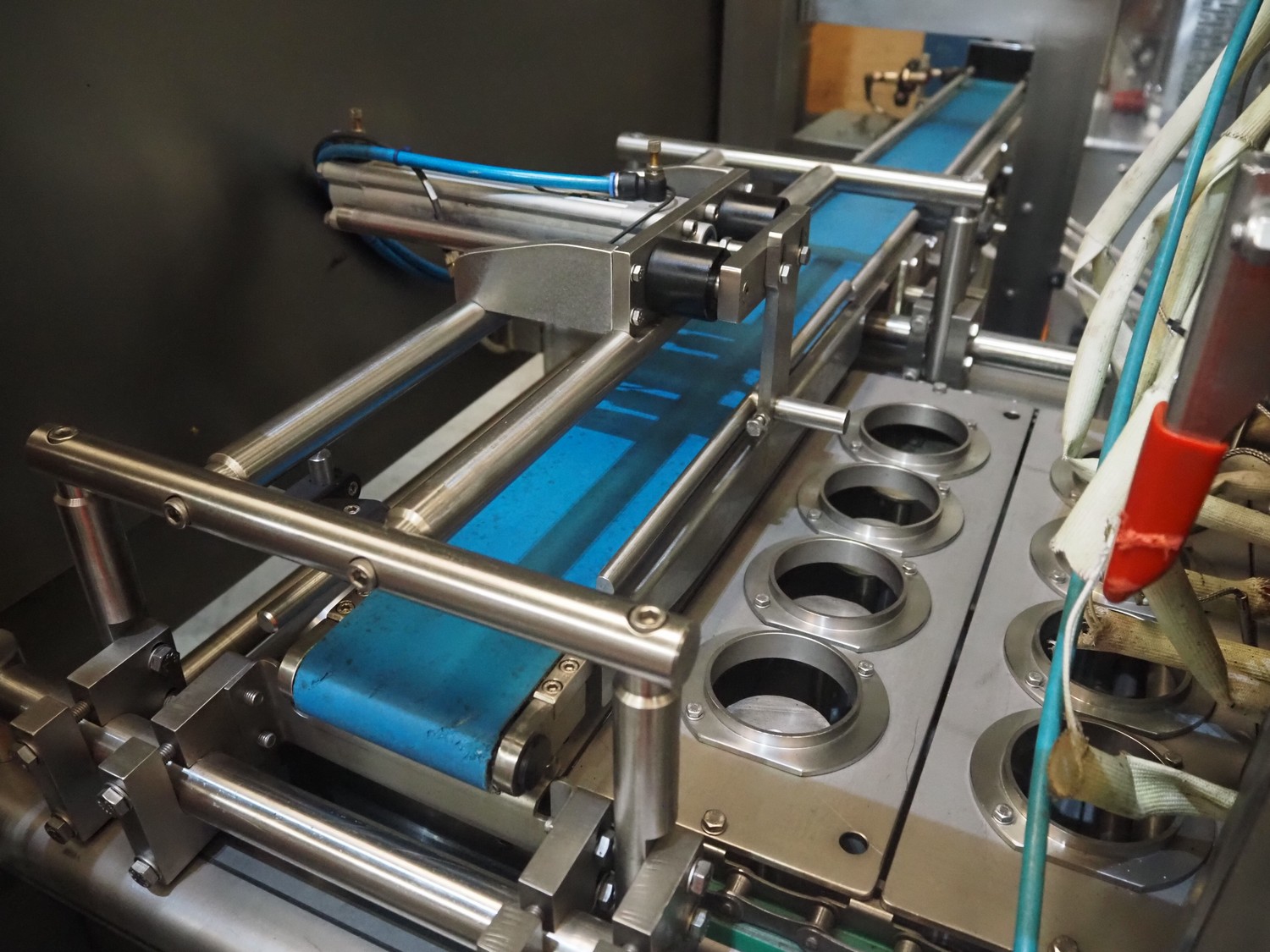 Food Dosing Packing Machines SP. Z.O.O. cup filling and sealing machine, type: PAK 4LP, machine number: 468, year of construction: 2016, 400 V, 3 Ph, 8 k W, weight: 2700 Kg, 4 lane cup denester, 4 lanes, cup dimensions: Ø (4x) 75 mm, total dimensions: 3950 mm x 2100 mm x 2550 mm.