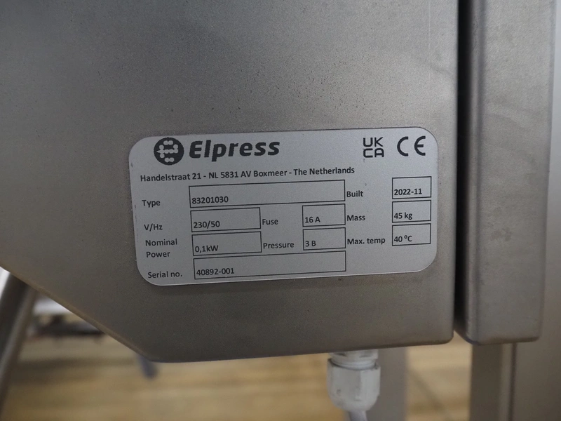 Elpress tourniquet, type: 83201030, serial number: 40892-001, year of construction: 2022, 230 V, 50 Hz, 16 A, 0.1 kW, weight: 45 kg, dimensions: 800 mm x 900 mm x 1550 mm.
