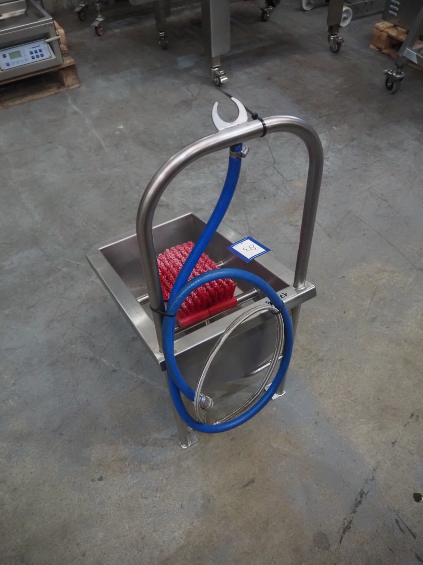 Boot cleaning station, brush dimensions: 300 mm x 150 mm, total dimensions: 570 mm x 390 mm x 900 mm.