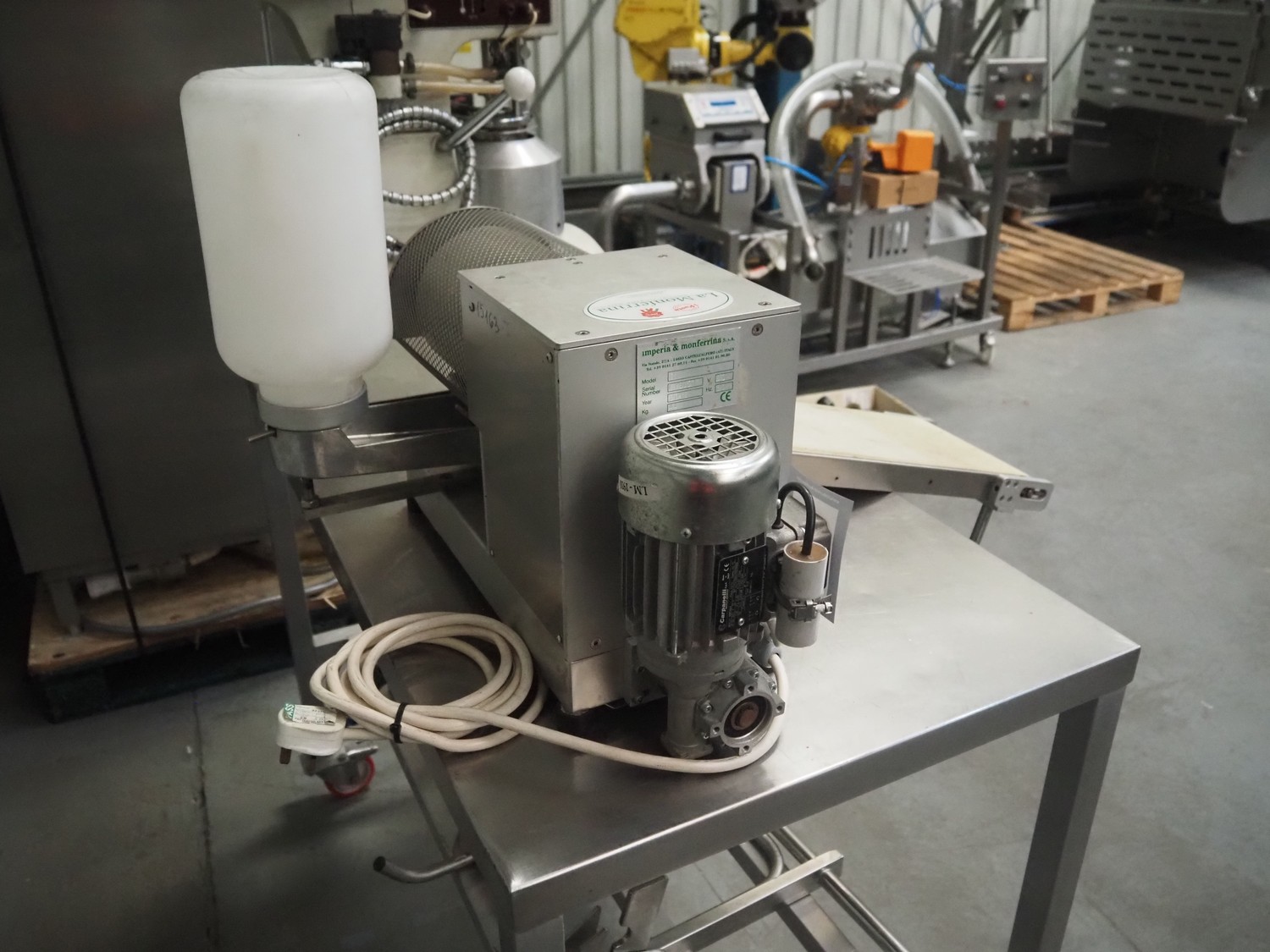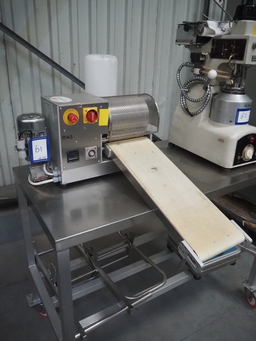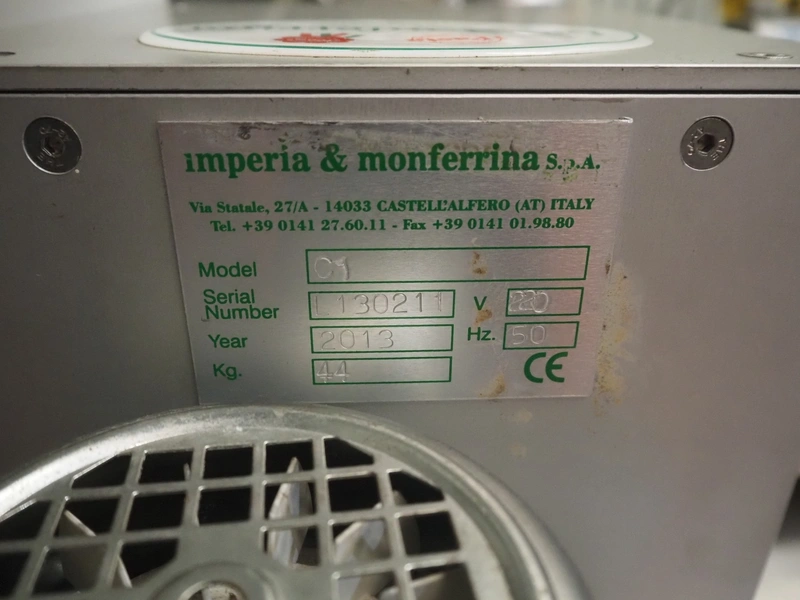 Imperia & Monferrina S.p.A. crêpe-machine, model: C1, serial number: L130211, year of construction: 2013, 220 V, 50 Hz, weight: 44 kg, working width: 200 mm, plastic belt, belt width: 205 mm, total dimensions: 630 mm x 1000 mm x 500 mm.