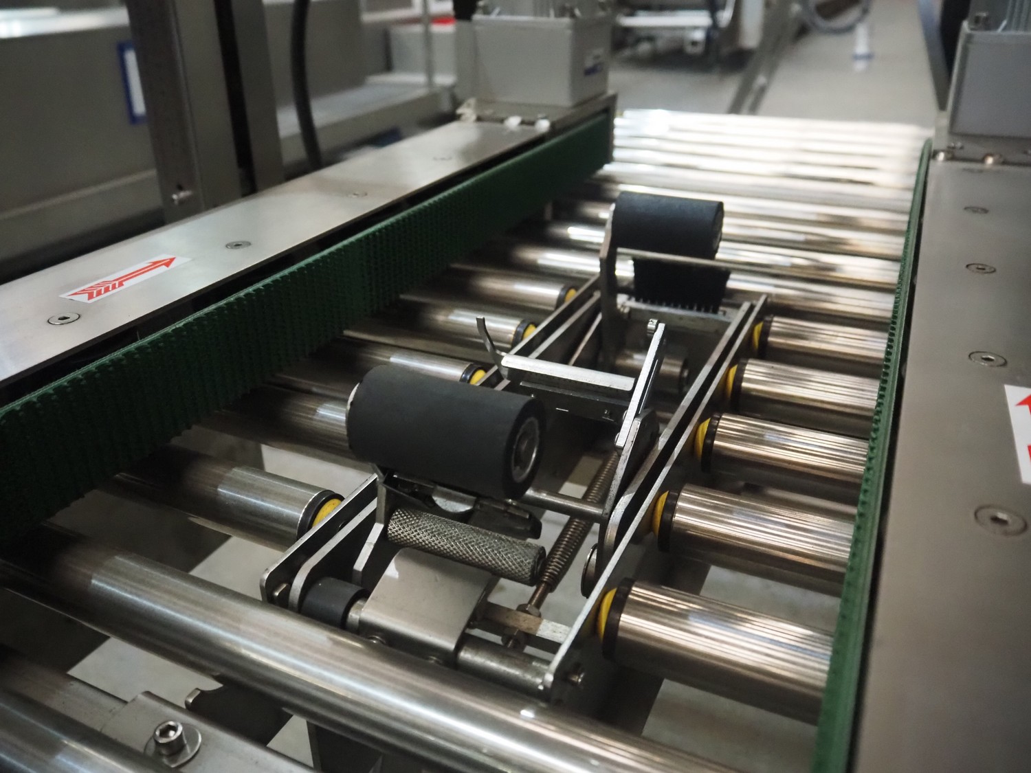 Mobile box closing machine, model: AS523S, serial number: 16A156, year of construction: 2016, 240 V, 50 Hz, 240 W, dimensions: 1400 mm x 850 mm x 1360 mm.