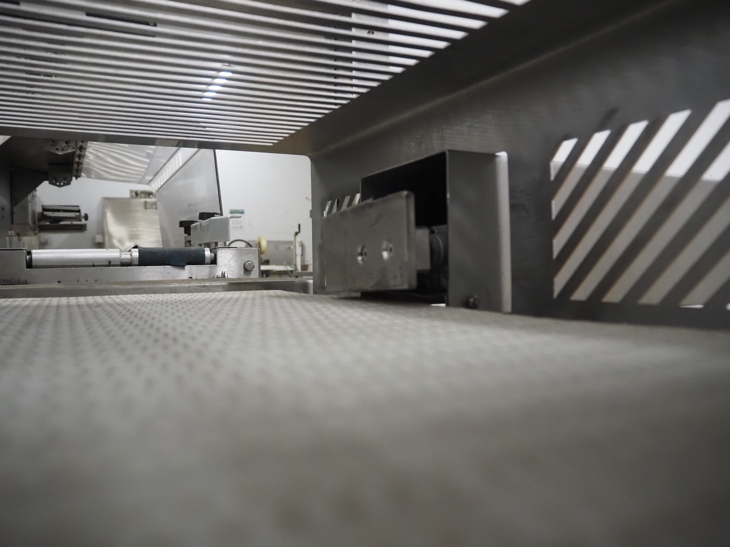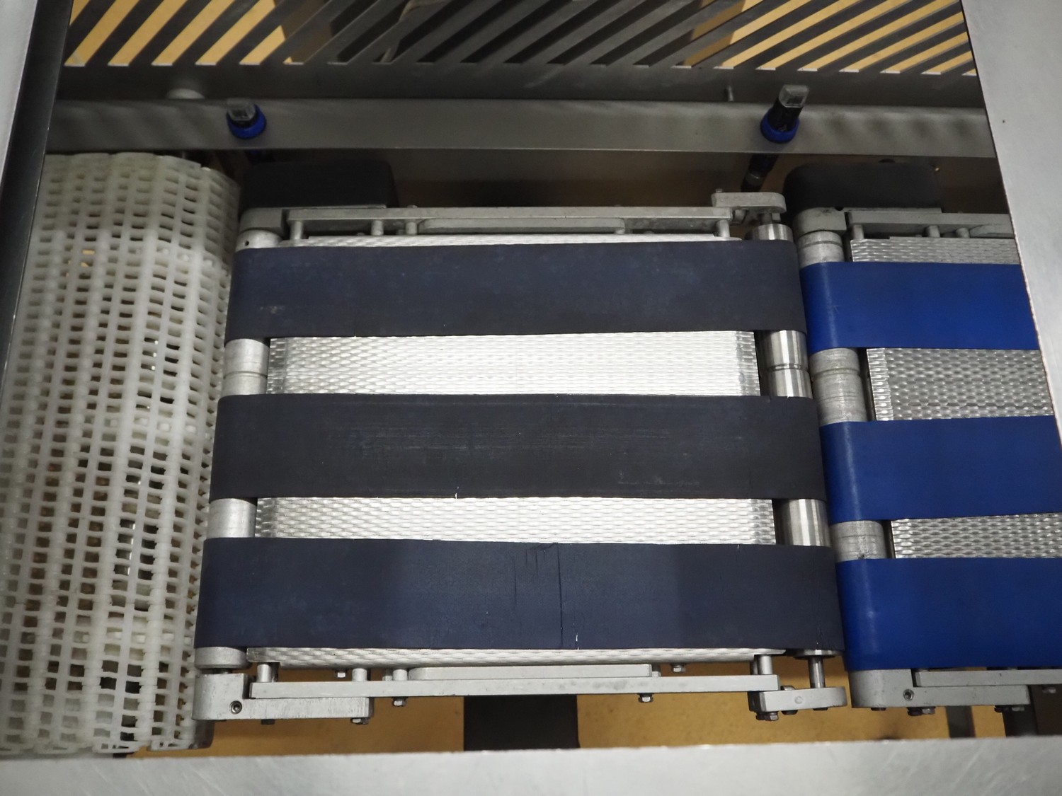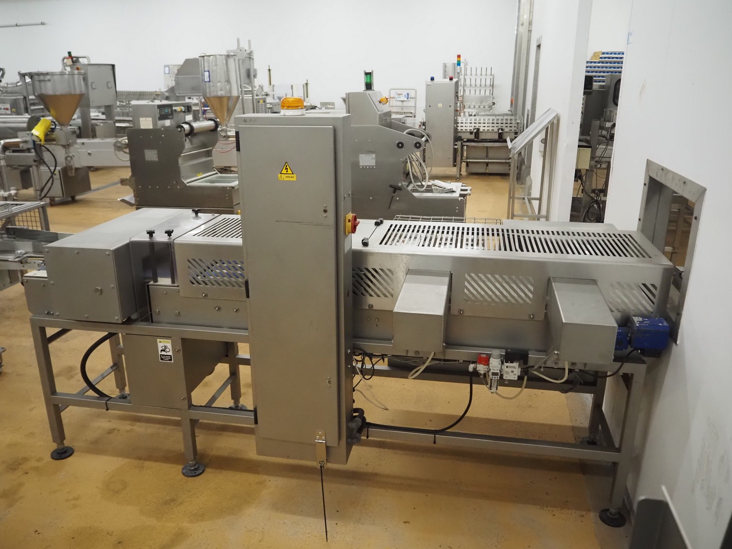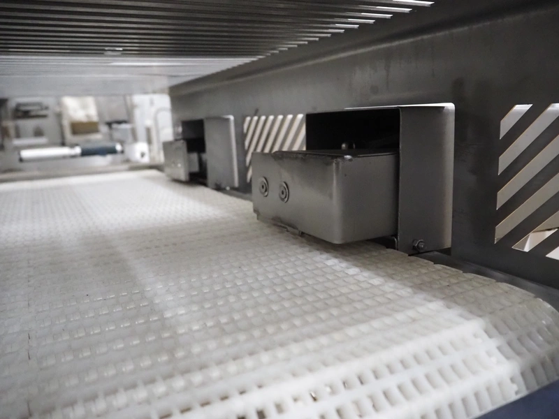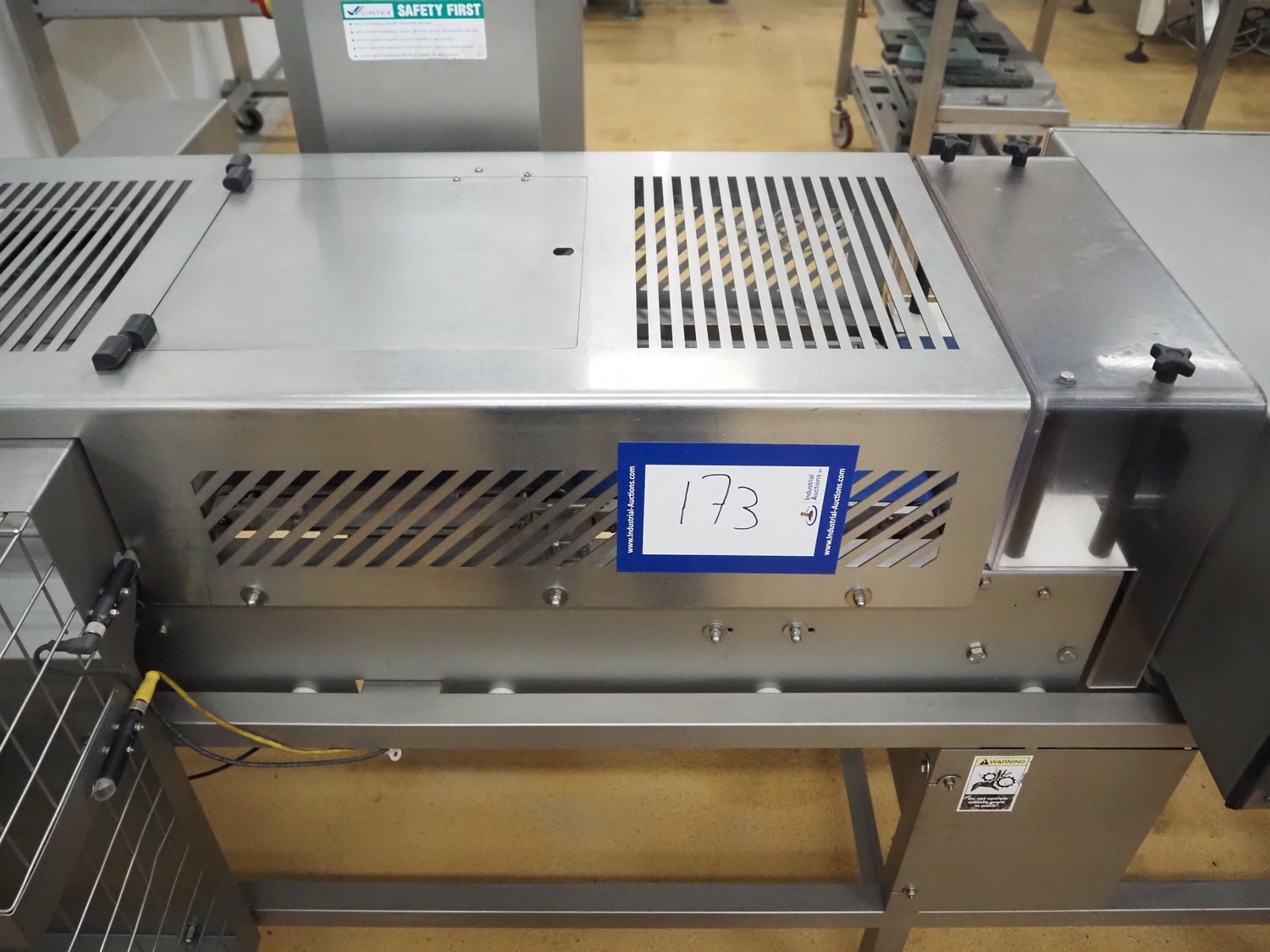 Cintex metal detector and checkweigher with rejector, clearance: 300 mm x 70 mm, plastic belt, belt width: 280 mm, 200 mm, 340 mm, total dimensions: 2550 mm x 1200 mm x 1550 mm.