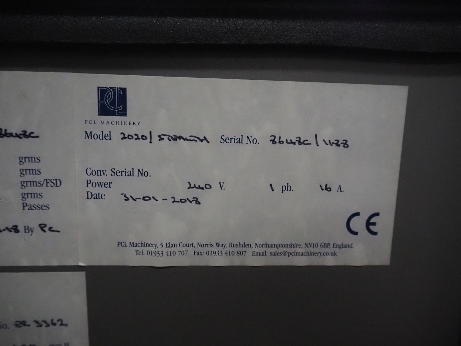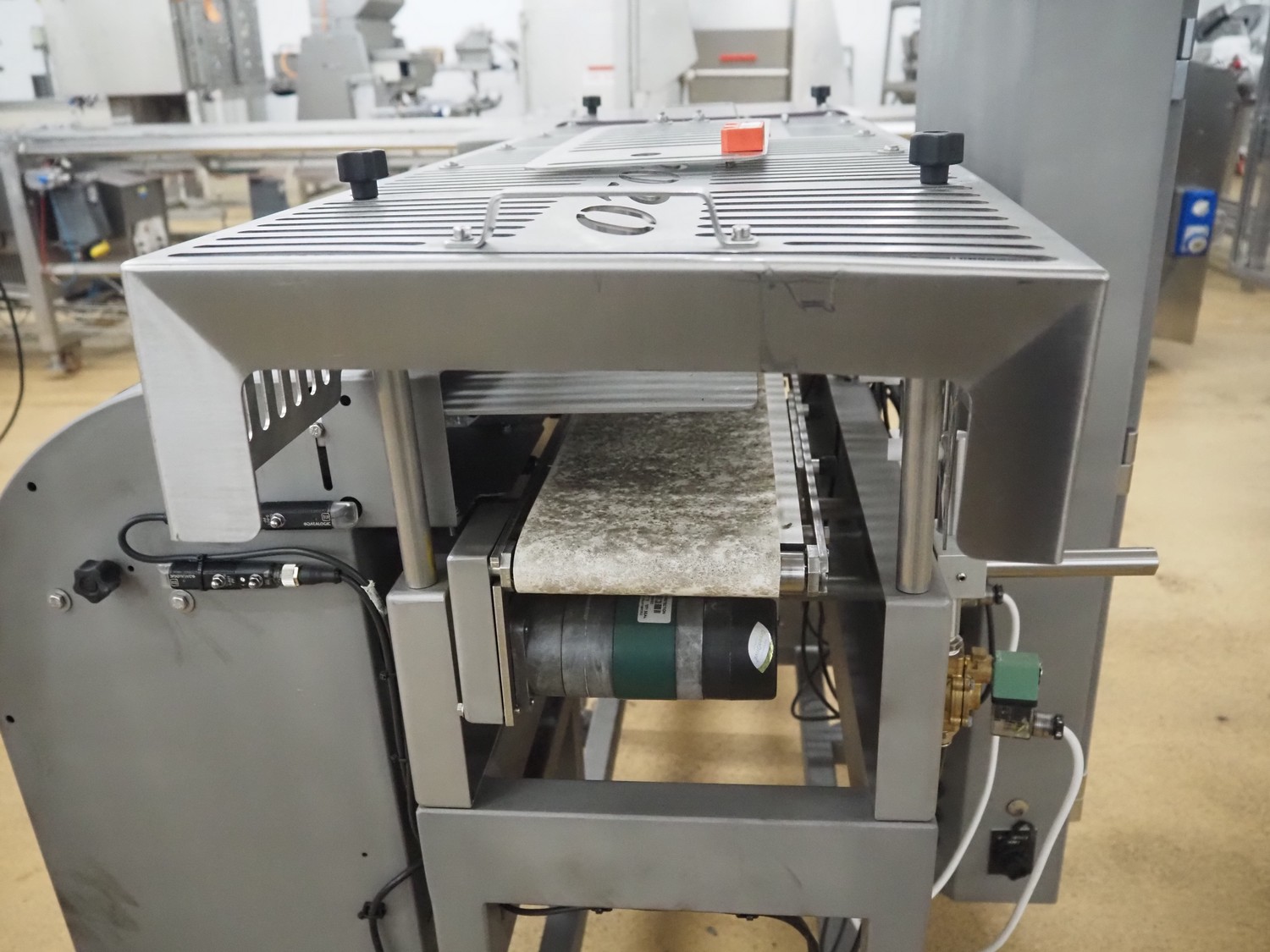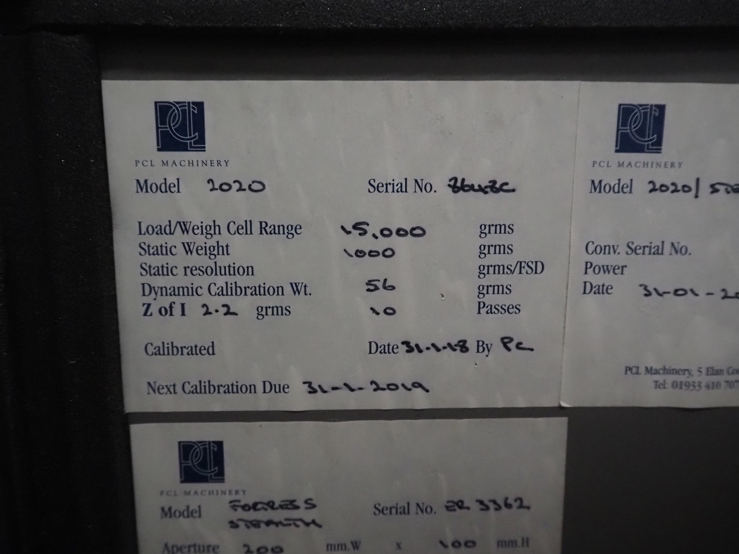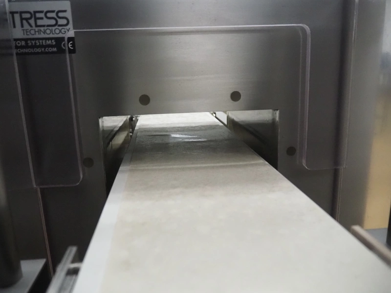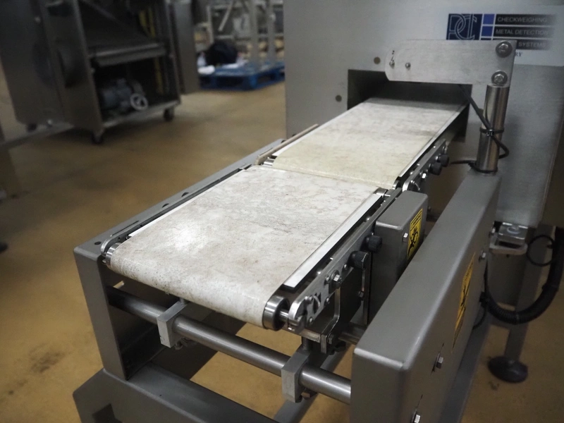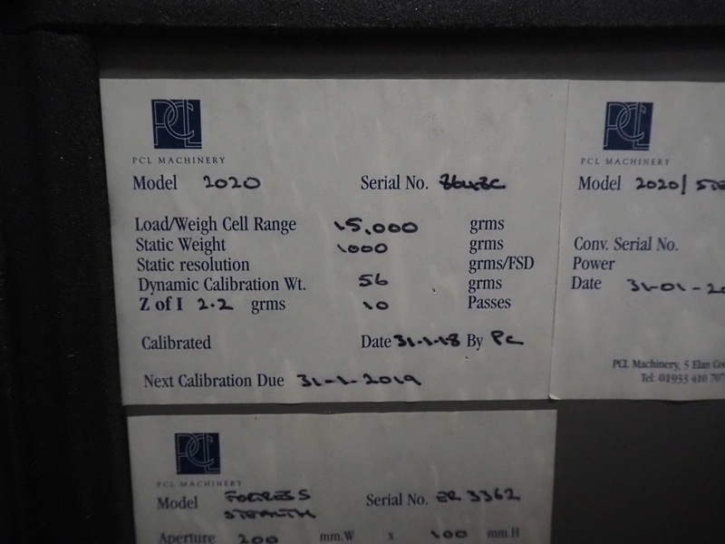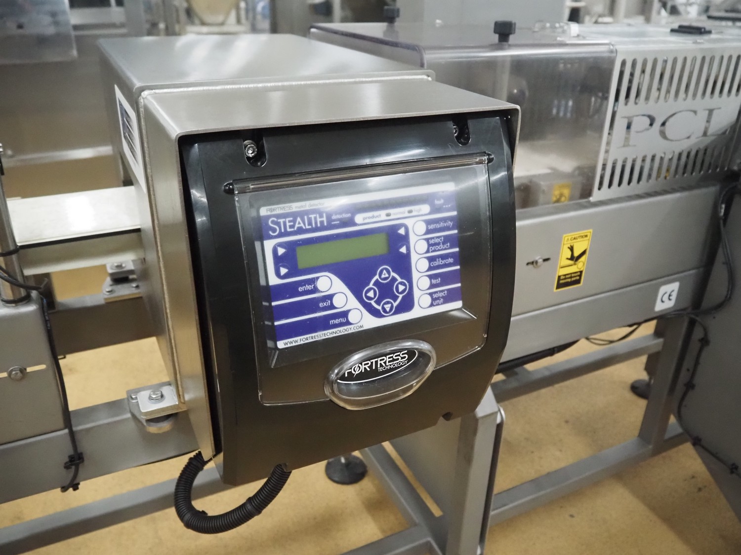 Fortress metal detector and PCL Machinery checkweigher with rejector, type metal detector: Fortress Stealth, serial number: ER 3362, clearance: 200 mm x 55 mm, plastic belt, belt width: 150 mm, total dimensions: 2120 mm x 900 mm x 1650 mm.