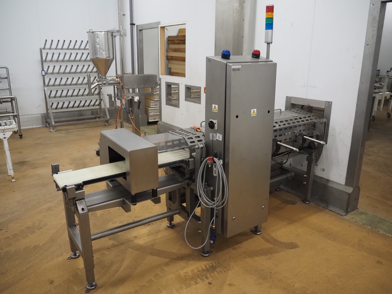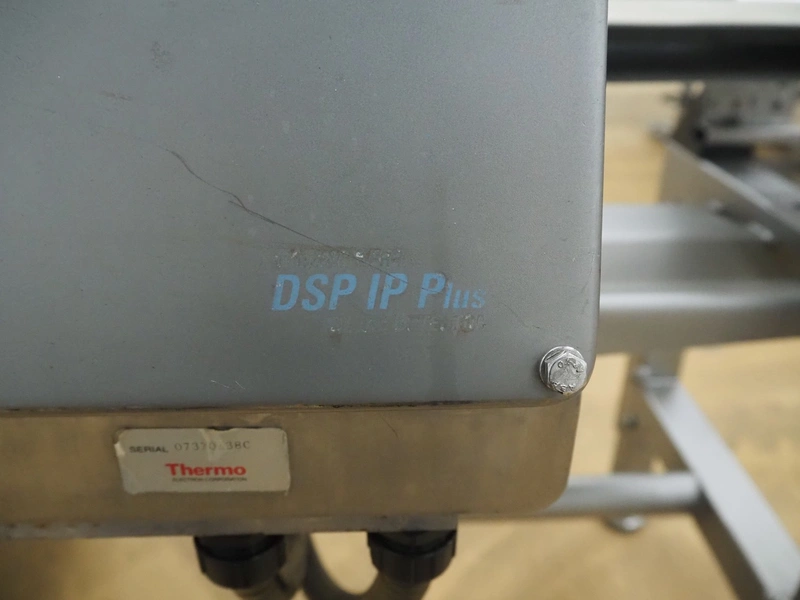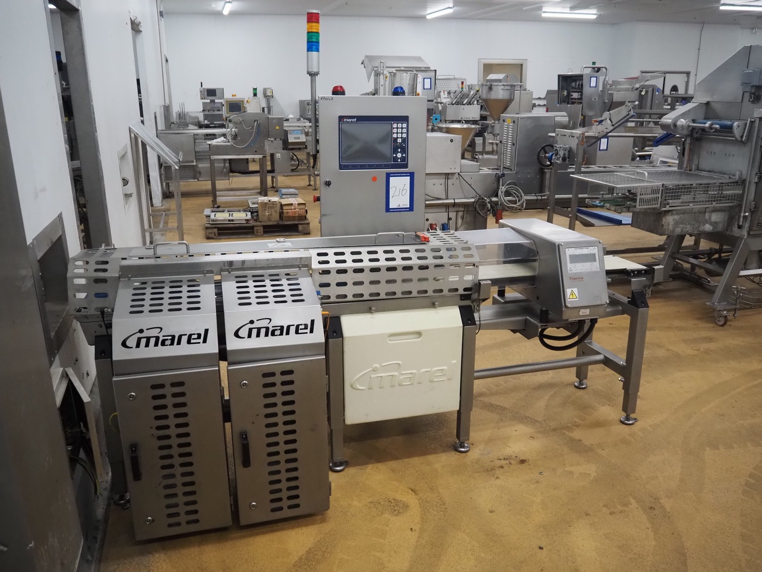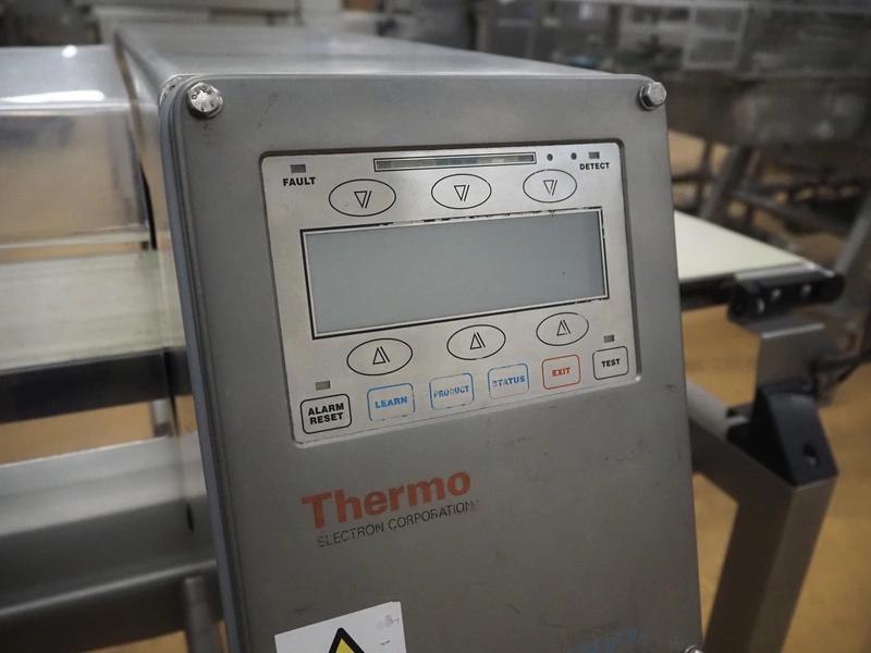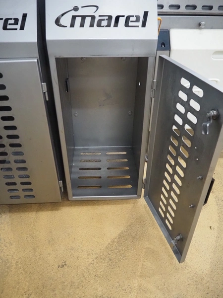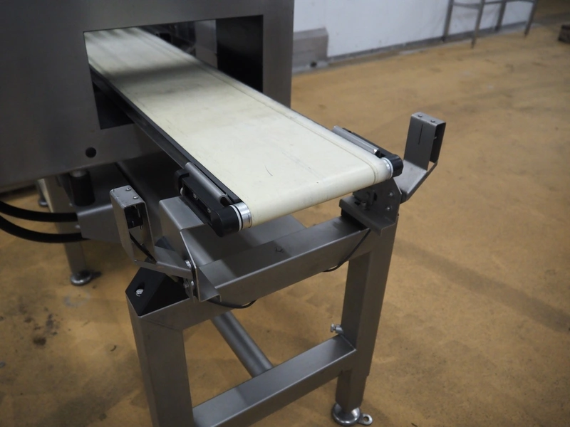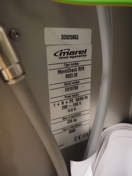 Thermo Fischer metal detector and Marel checkweigher with rejector, type checkweigher: MarelCheck RF8 8023.30, serial number: E010768, year of construction: 2009, 200-240 V, 1 Ph, 50/60 Hz, 5.0 A, clearance metal detector: 350 mm x 120 mm, plastic belt, belt width: 230 mm, total dimensions: 2650 mm x 1150 mm x 2000 mm.