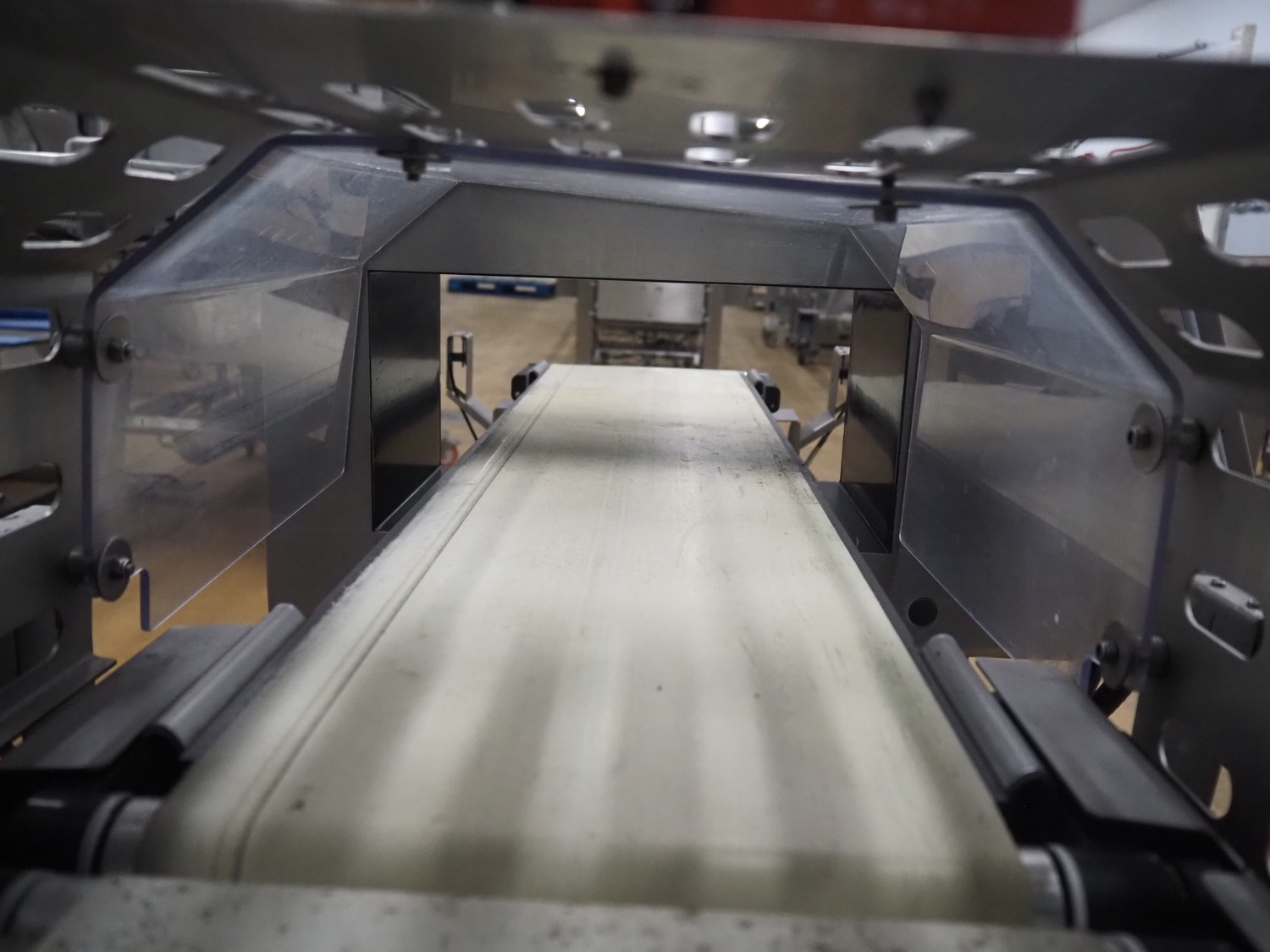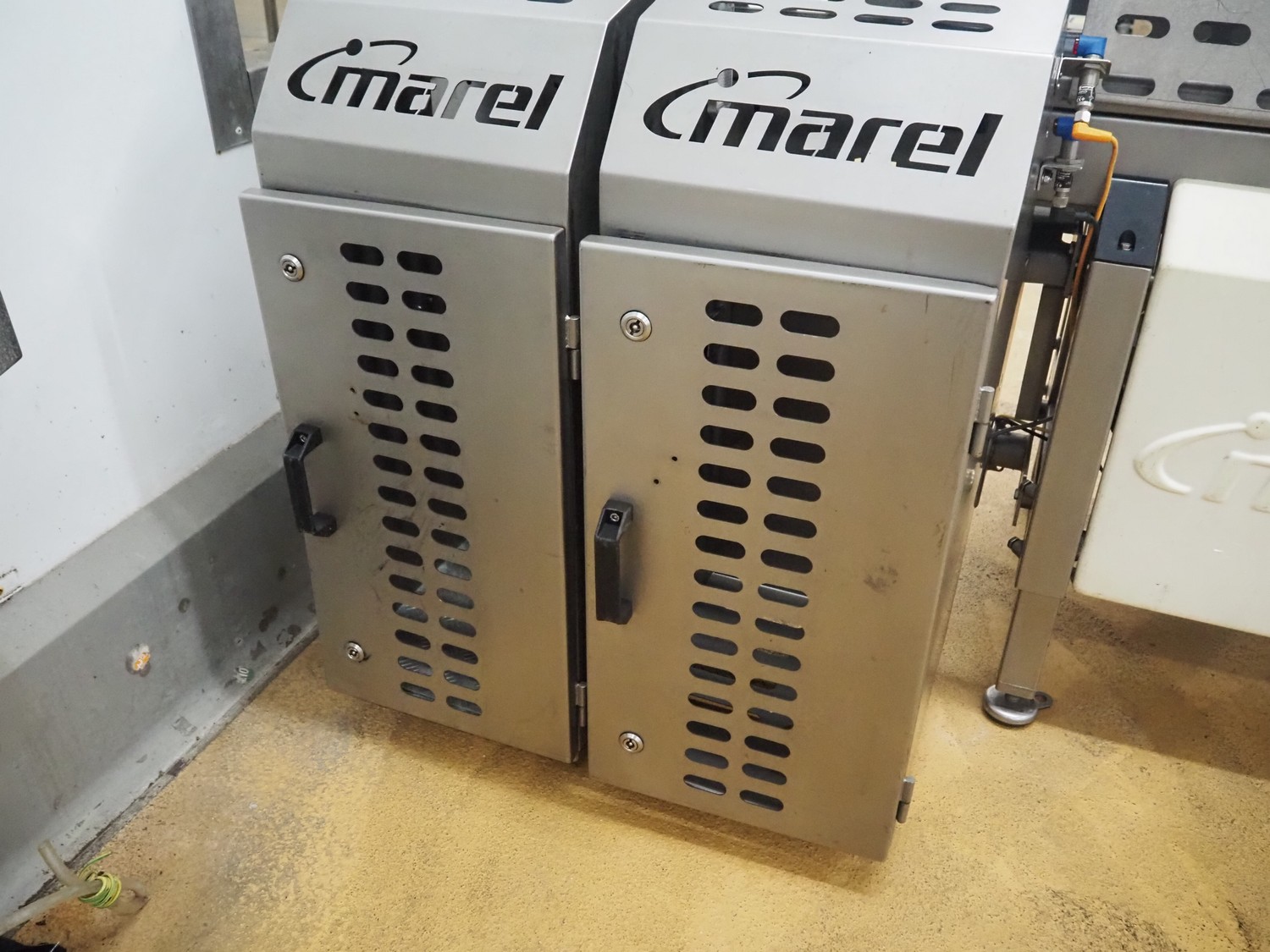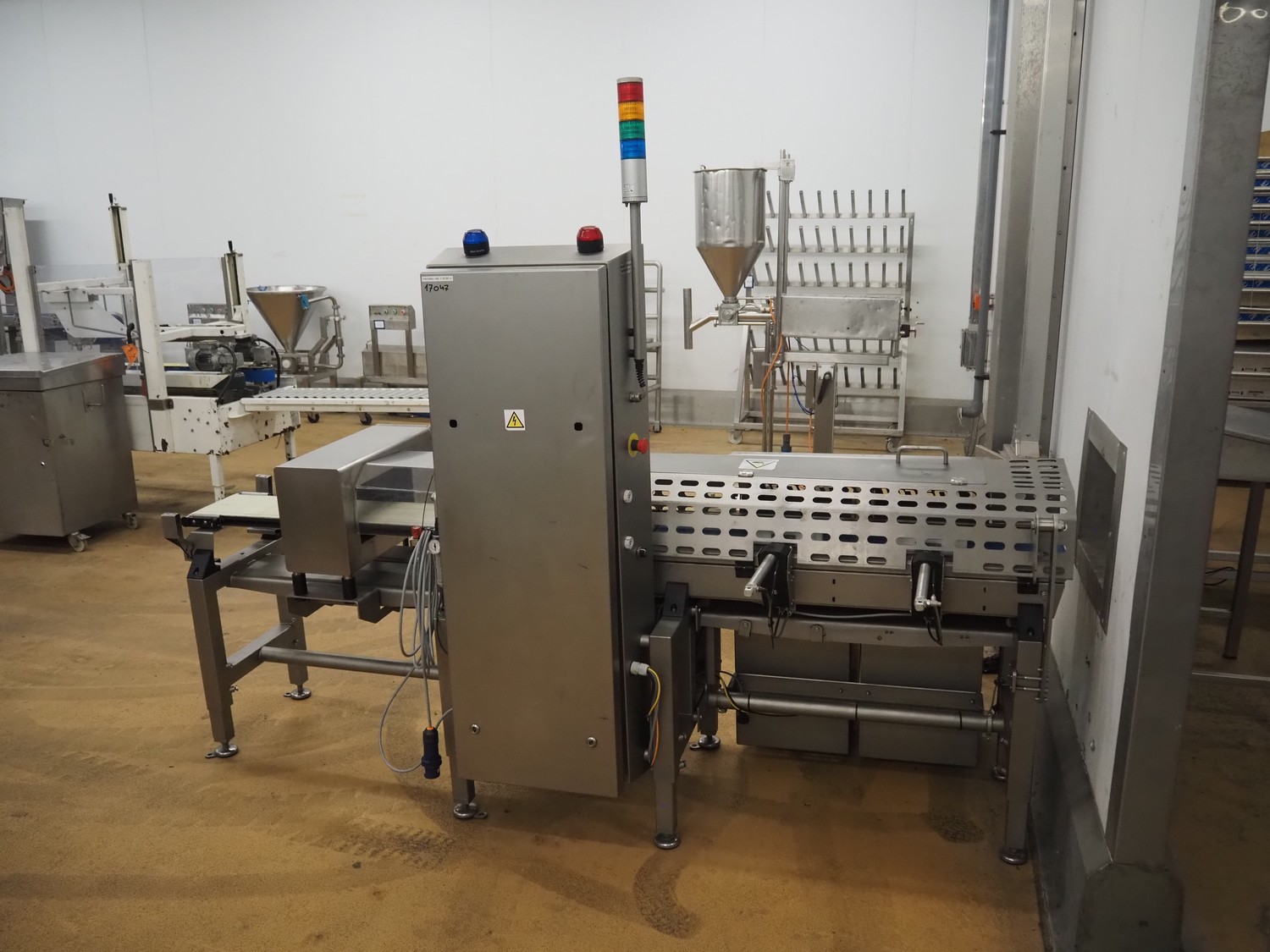Thermo Fischer metal detector and Marel checkweigher with rejector, type checkweigher: MarelCheck RF8 8023.30, serial number: E010768, year of construction: 2009, 200-240 V, 1 Ph, 50/60 Hz, 5.0 A, clearance metal detector: 350 mm x 120 mm, plastic belt, belt width: 230 mm, total dimensions: 2650 mm x 1150 mm x 2000 mm.