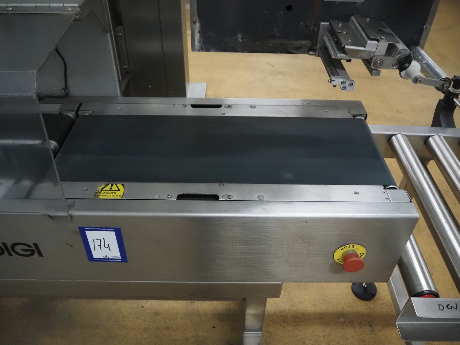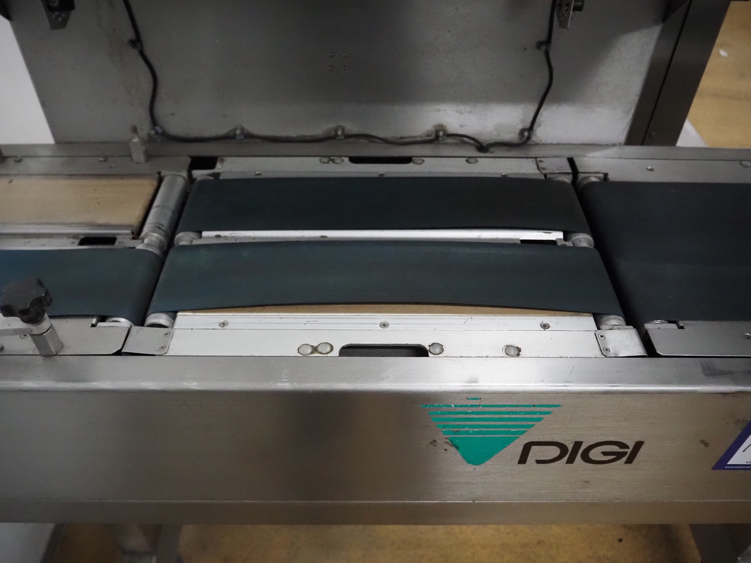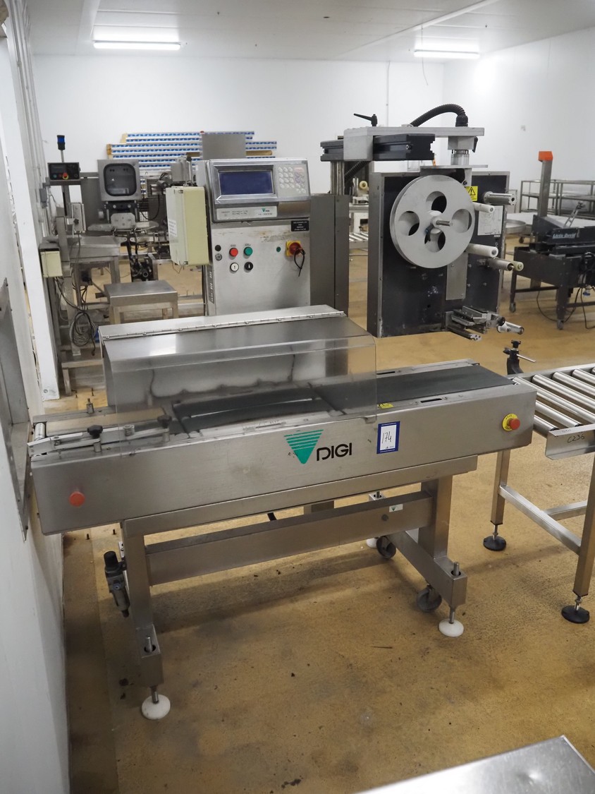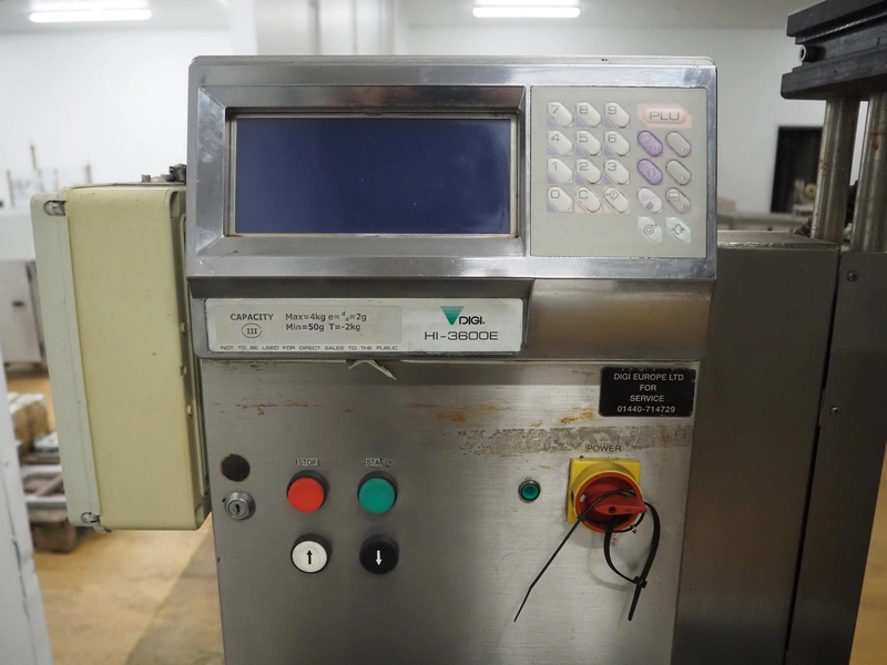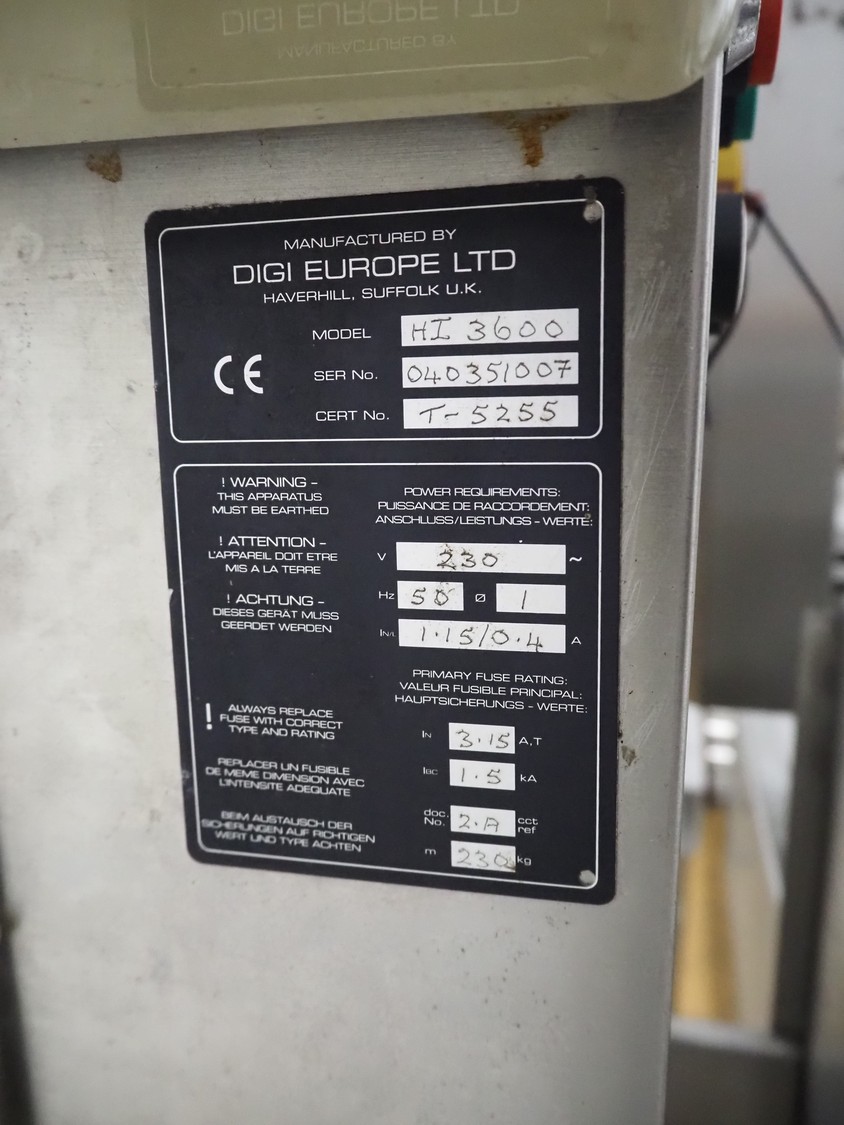 Digi Europe Ltd checkweighing and labelling machine, model: HI 3600, serial number: 040351007, 230 V, 1 Ph, 50 Hz, plastic belt, belt width: (2x) 100 mm, 230 mm, total dimensions: 1700 mm x 700 mm x 1800 mm.