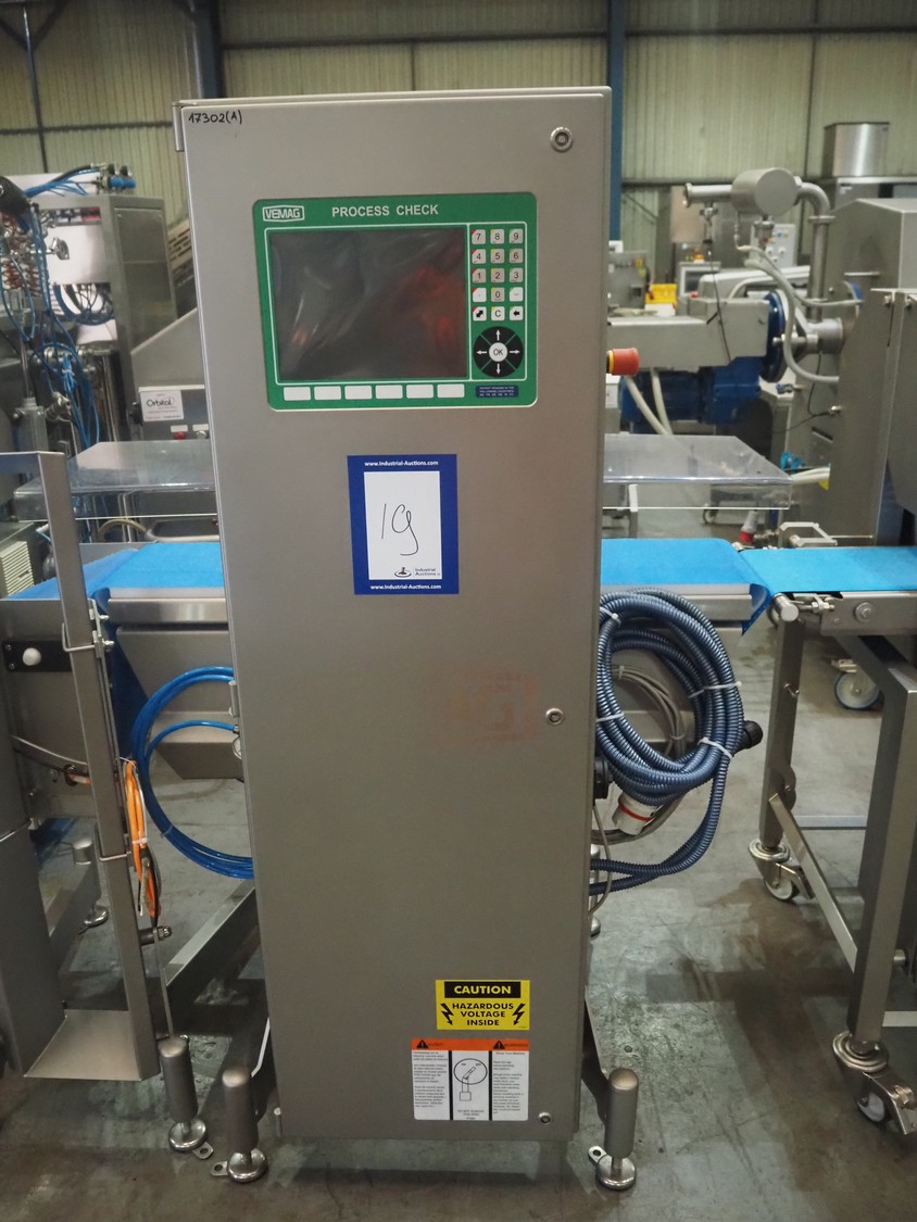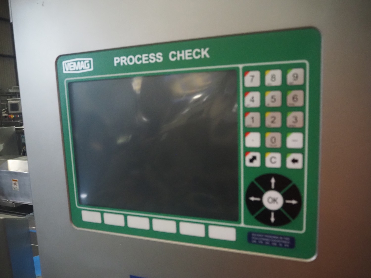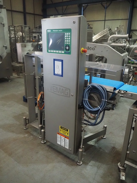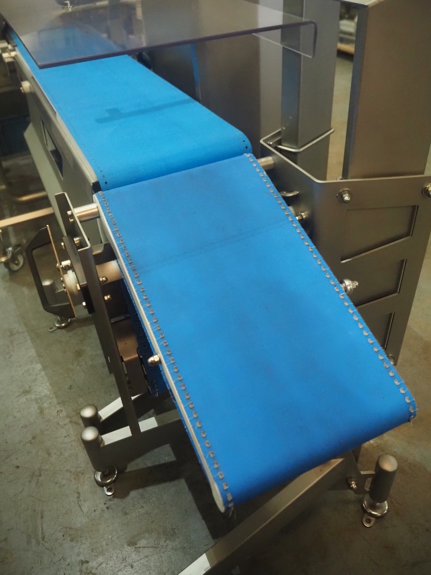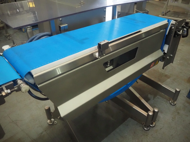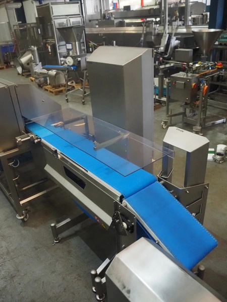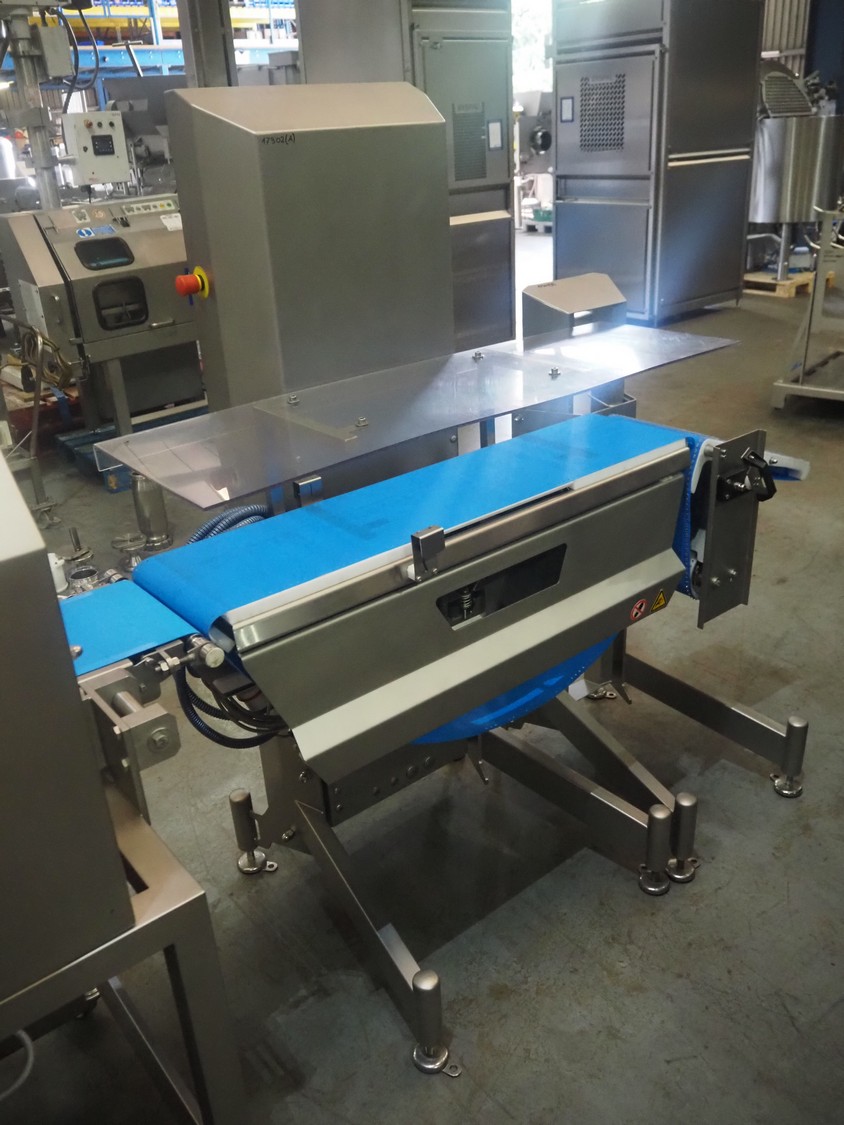 Vemag checkweigher, plastic belt, belt width: 275 mm, total dimensions: 1650 mm x 800 mm x 1770 mm.