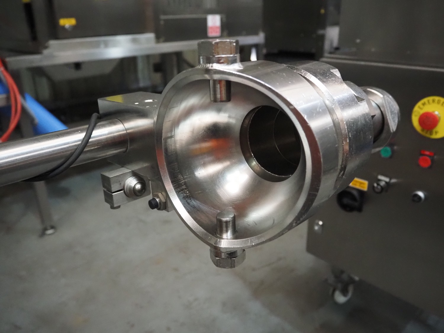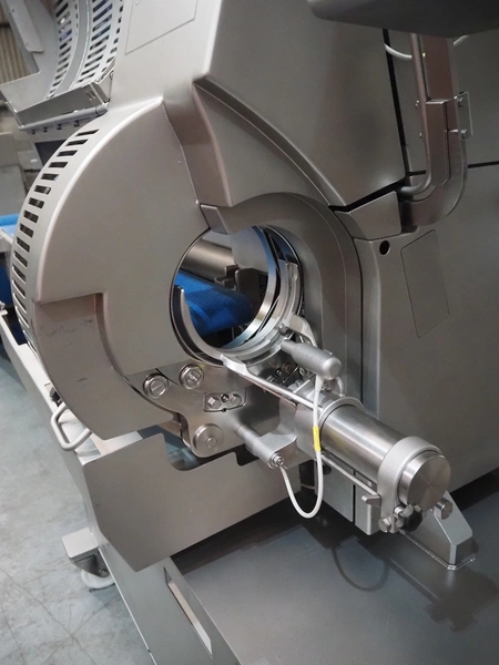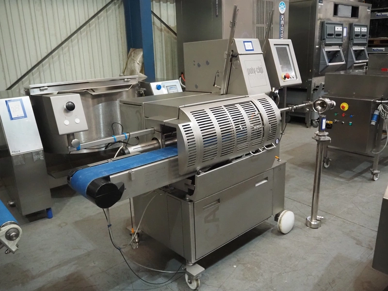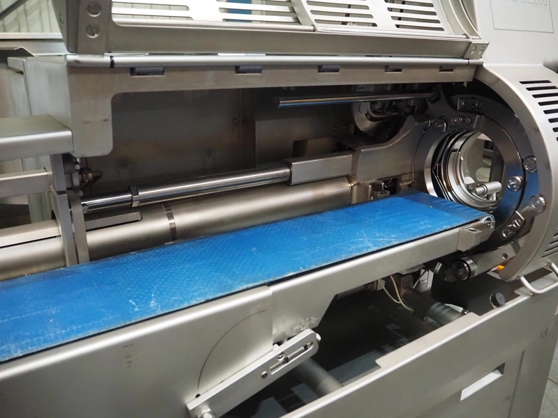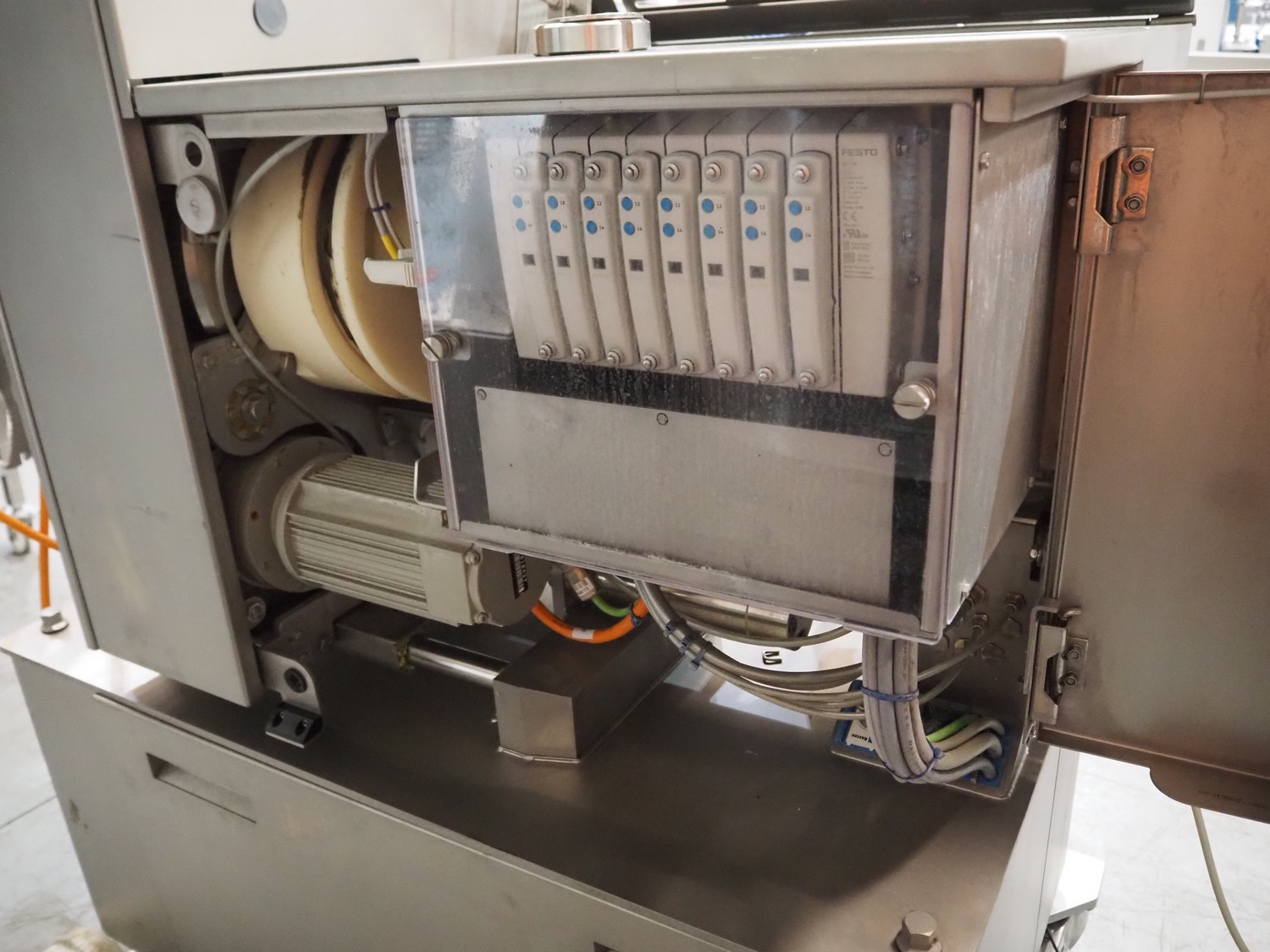 Poly-clip System GmbH & Co. KG mobile automatic double clipper, type: ICA, number: 1876, year of construction: 2021, 480 V, 3 Ph, 50/60 Hz, 4.0 A, 3.0 kW, weight: 805 kg, plastic belt, belt width: 180 mm, total dimensions: 2850 mm x 900 mm x 1850 mm.