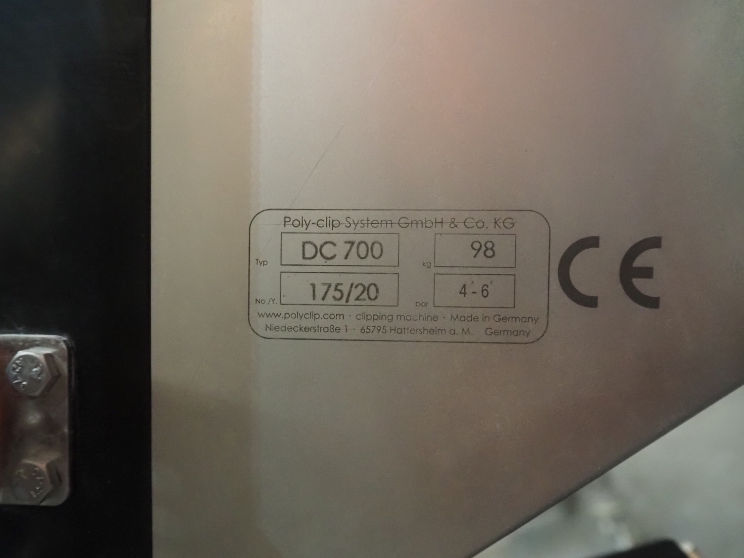 Poly-clip System GmbH & Co. KG mobile double clipper, type: DC700, number: 175, year of construction: 2020, weight: 98 kg, dimensions: 1250 mm x 800 mm x 1800 mm.