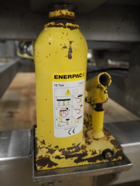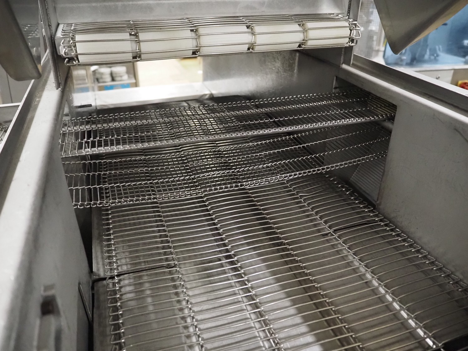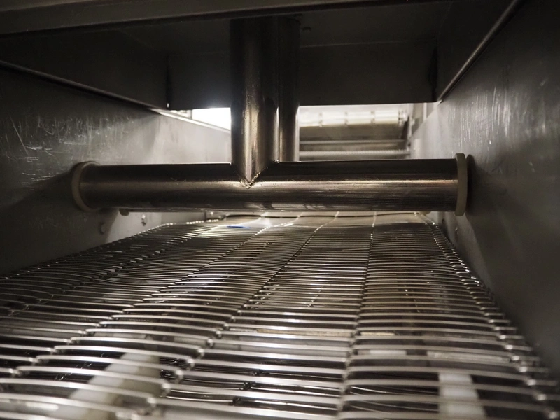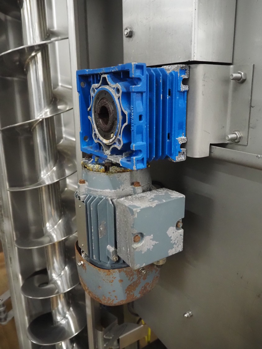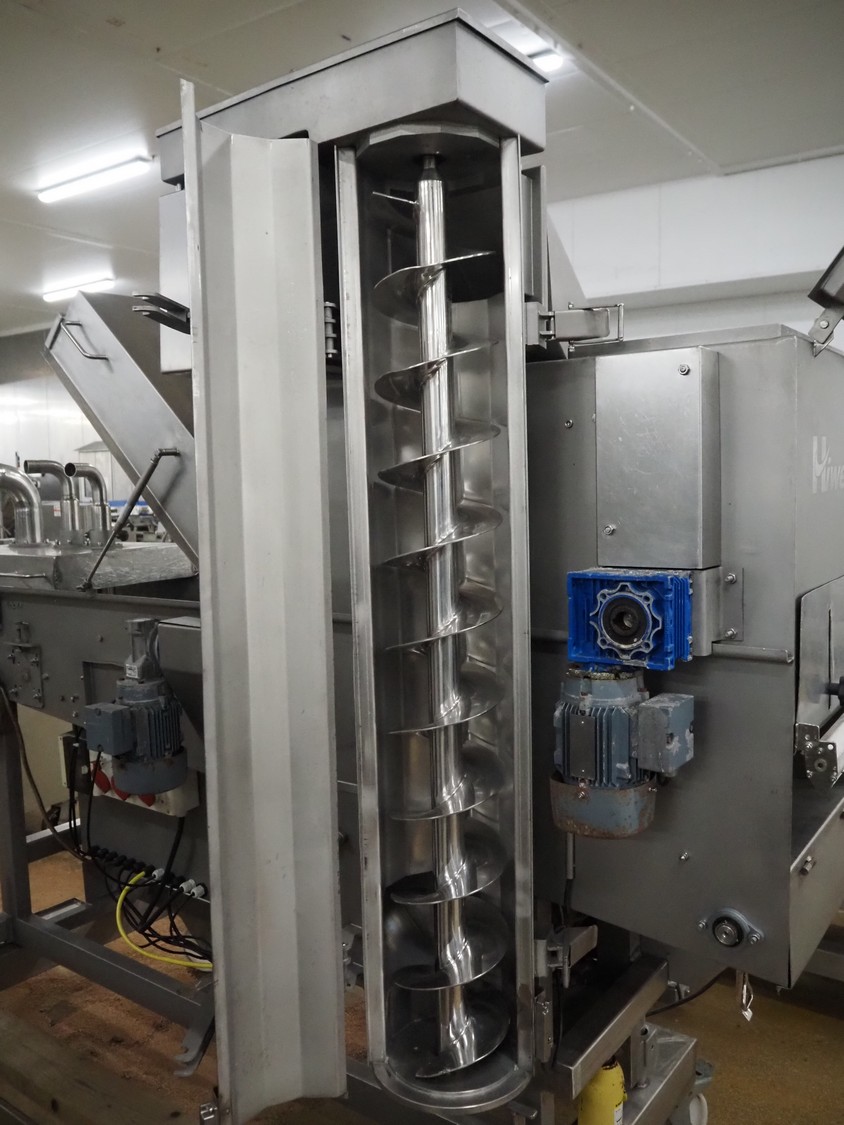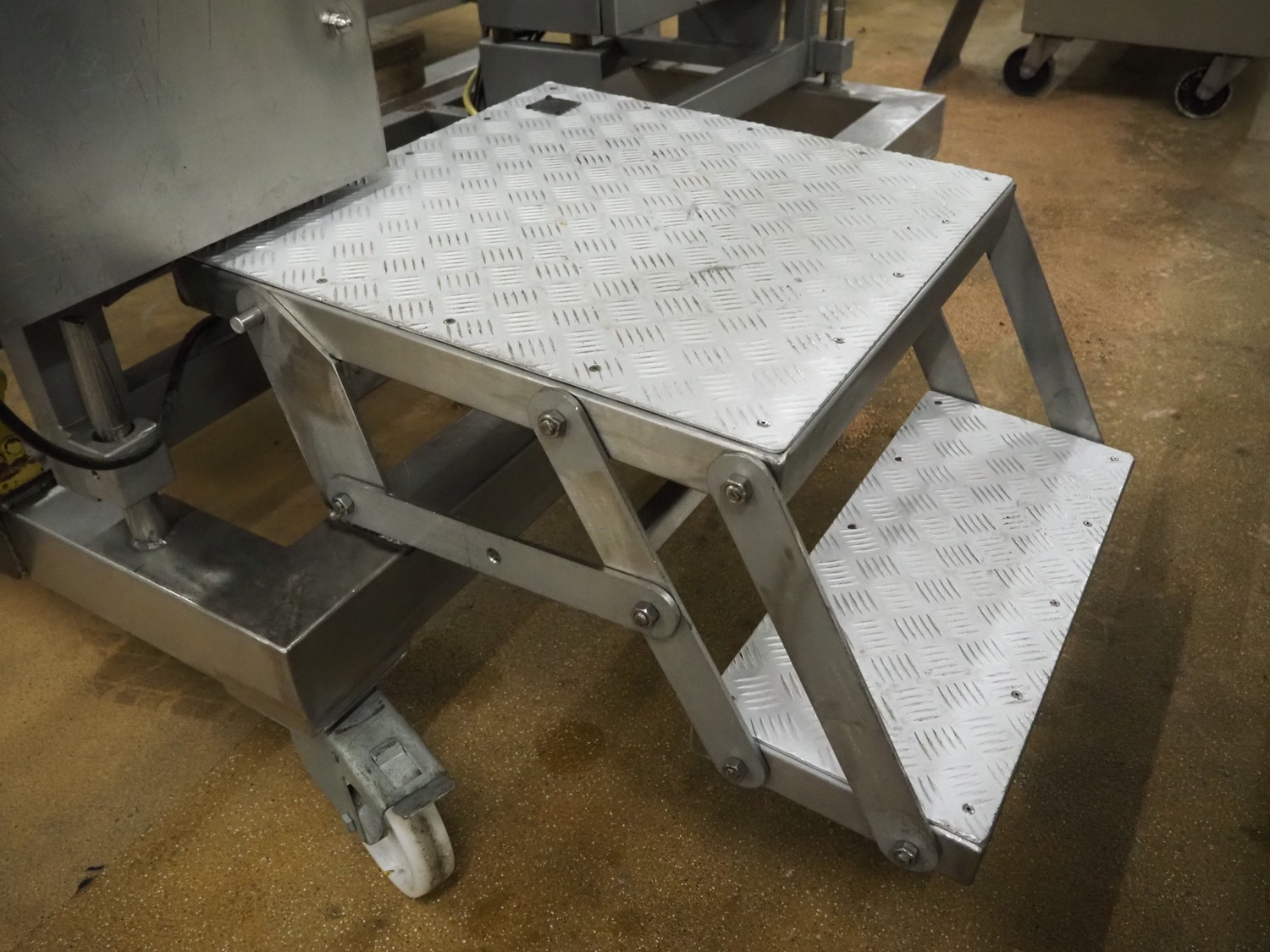 Hiwell flouring machine, model: SFJ400-III, serial number: 0541004, year of construction: 2010.04.02, 380 V, 50 Hz, 2.81 kW, weight: 630 kg, s/s mesh belt, belt width: 400 mm, total dimensions: 2700 mm x 1070 mm x 2200 mm.