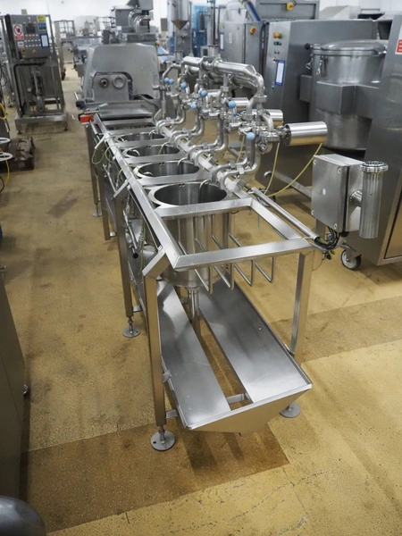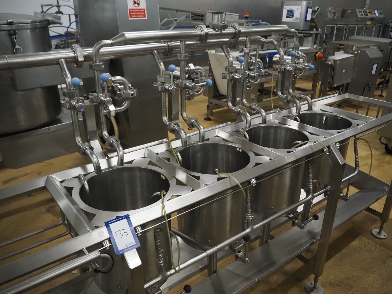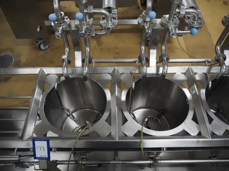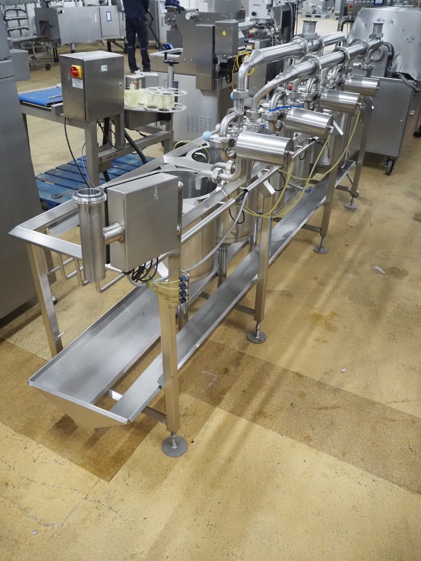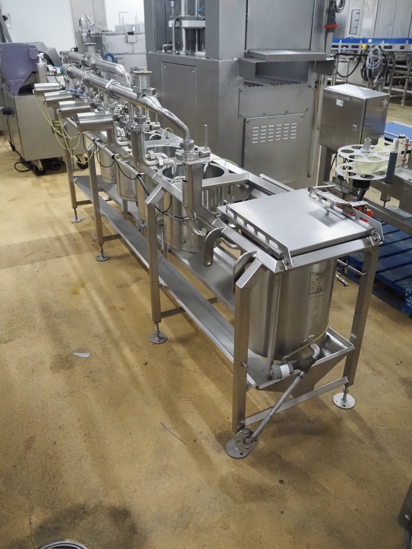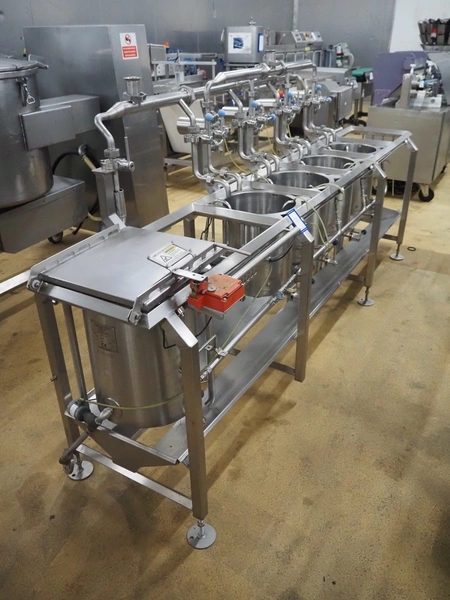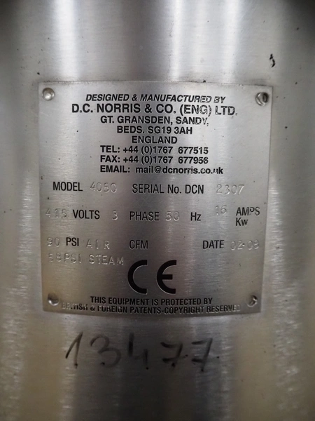 D.C. Norris & Co. (ENG) Ltd 4-vessel cooking station, model: 4050, serial number: 2307, year of construction: 2008, 415 V, 3 Ph, 50 Hz, 16 A, steam heated, inside dimensions: (4x) ø 310 mm x 380 mm, total dimensions: 3200 mm x 850 mm x 1450 mm.