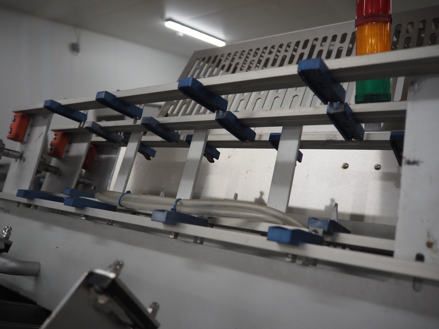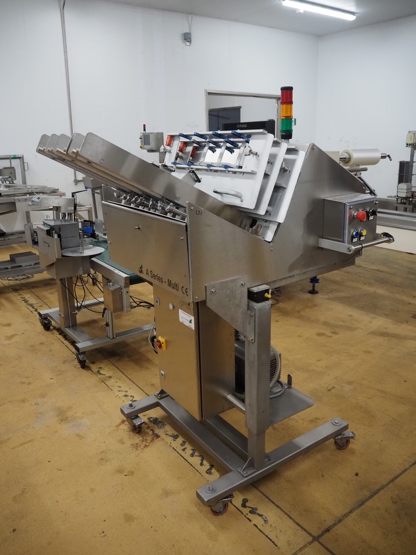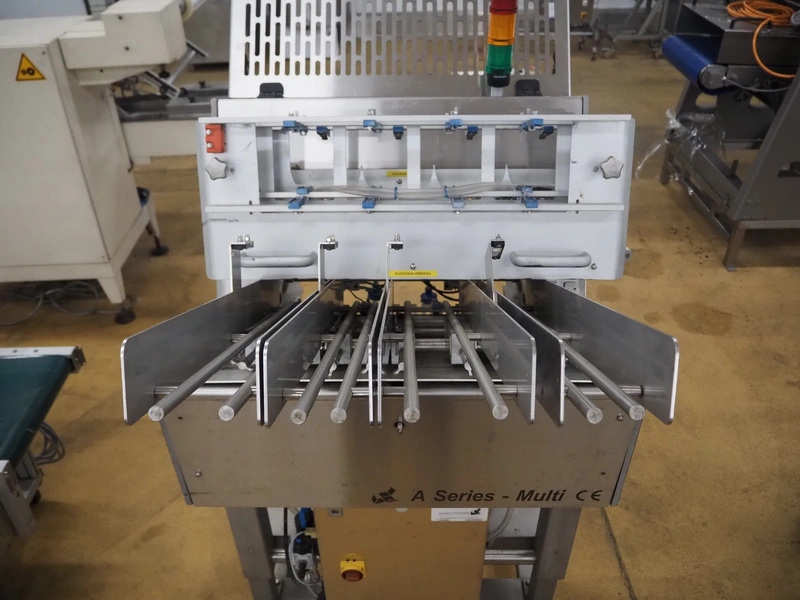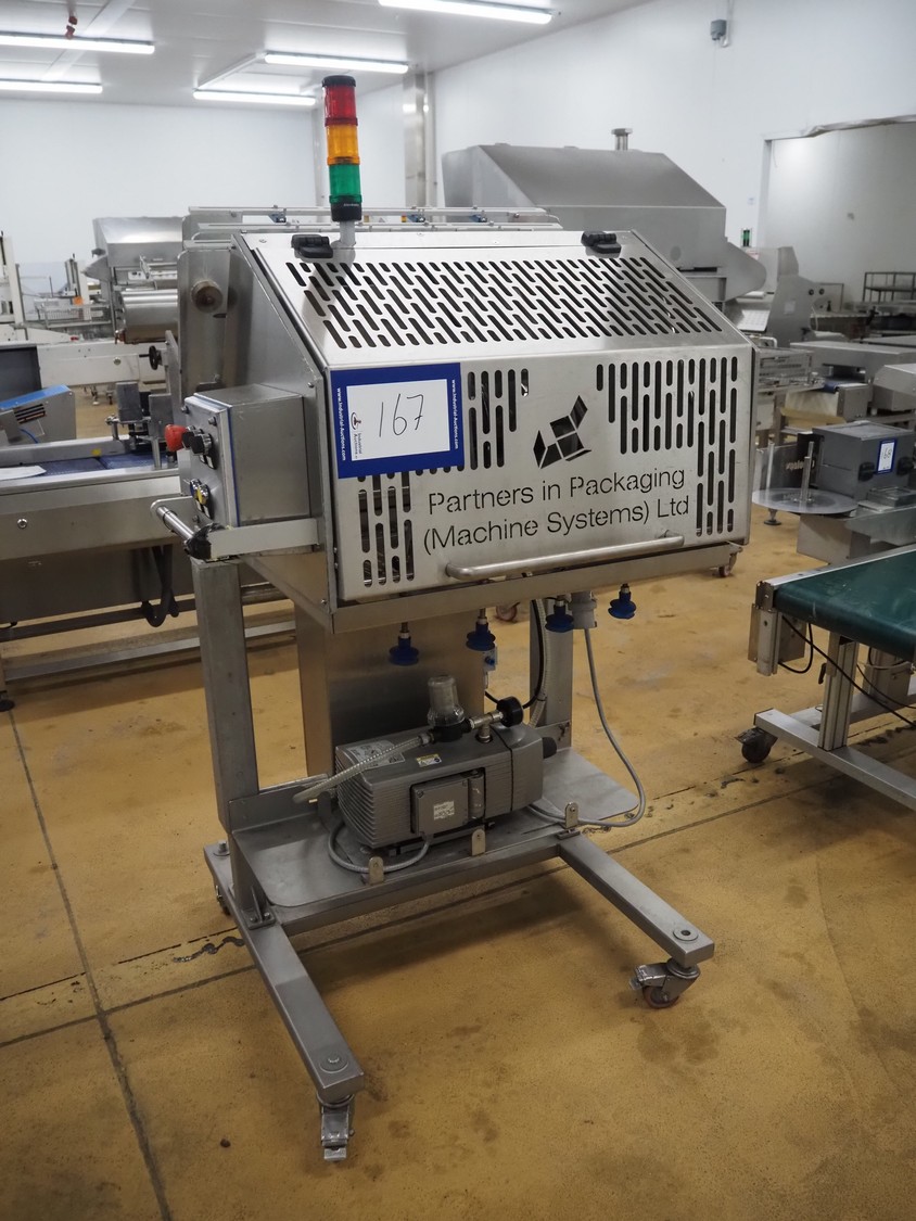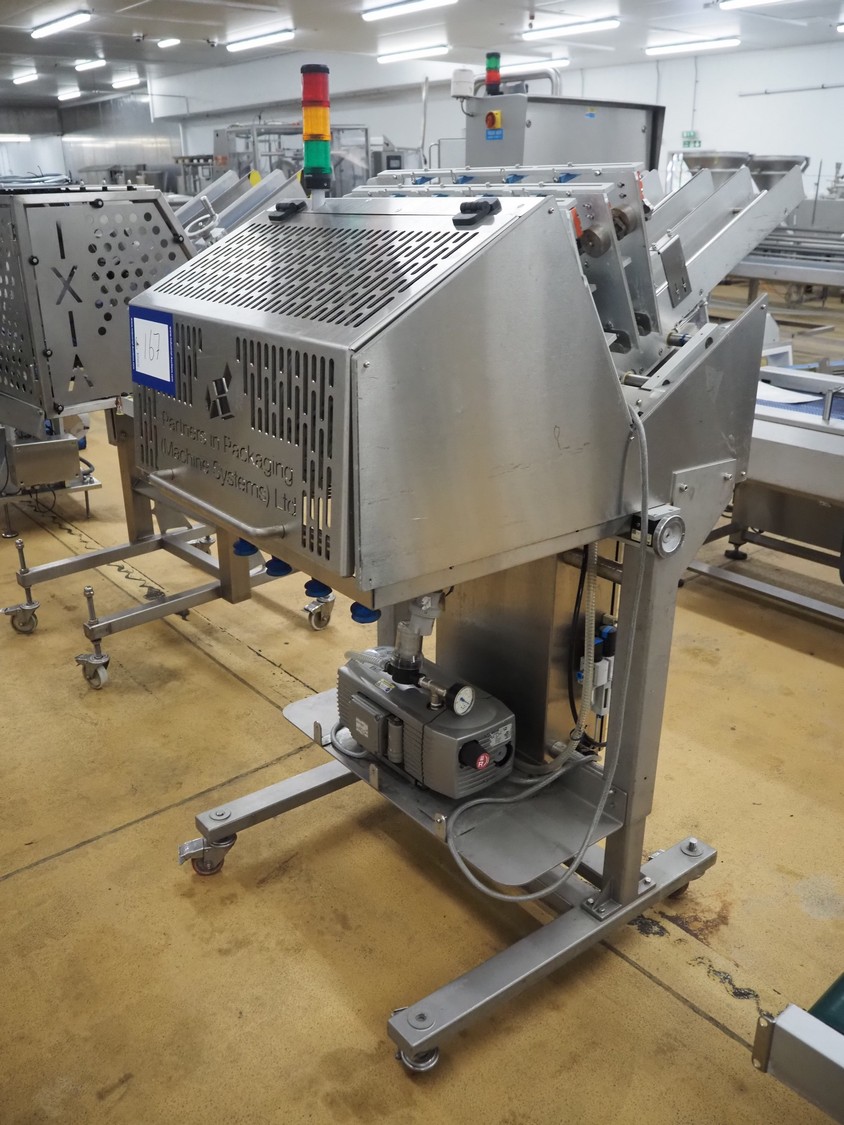 Partners in Packaging denester, model: A Series, serial number: 18049, year of construction: 2018, 230 V, 16 A, 4 trays, dimensions trays: (4x) 110 mm x 65 mm, total dimensions: 1350 mm x 1050 mm x 1800 mm.