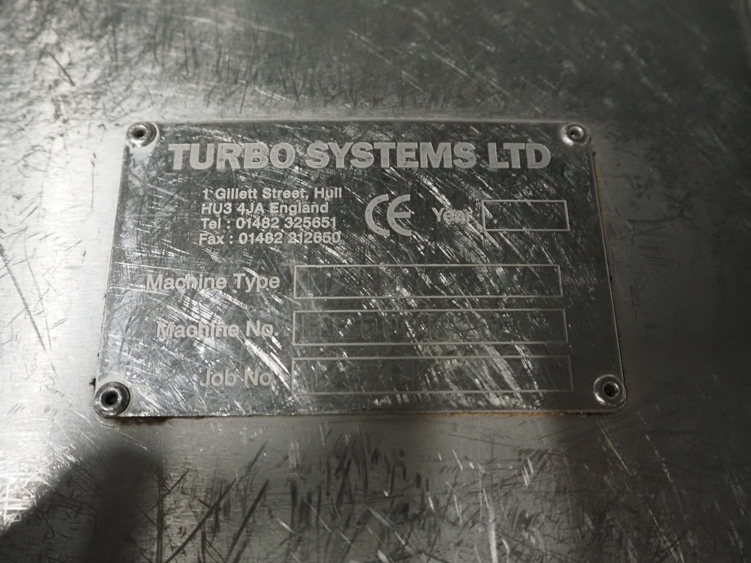 Turbo Systems Ltd mobile depositor, dimensions: 1600 mm x 900 mm x 2100 mm.