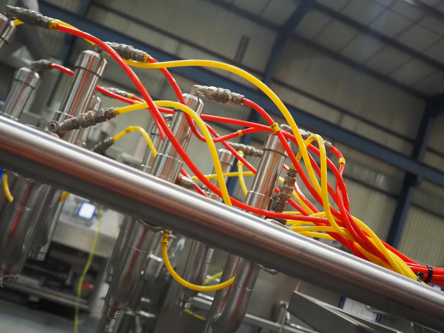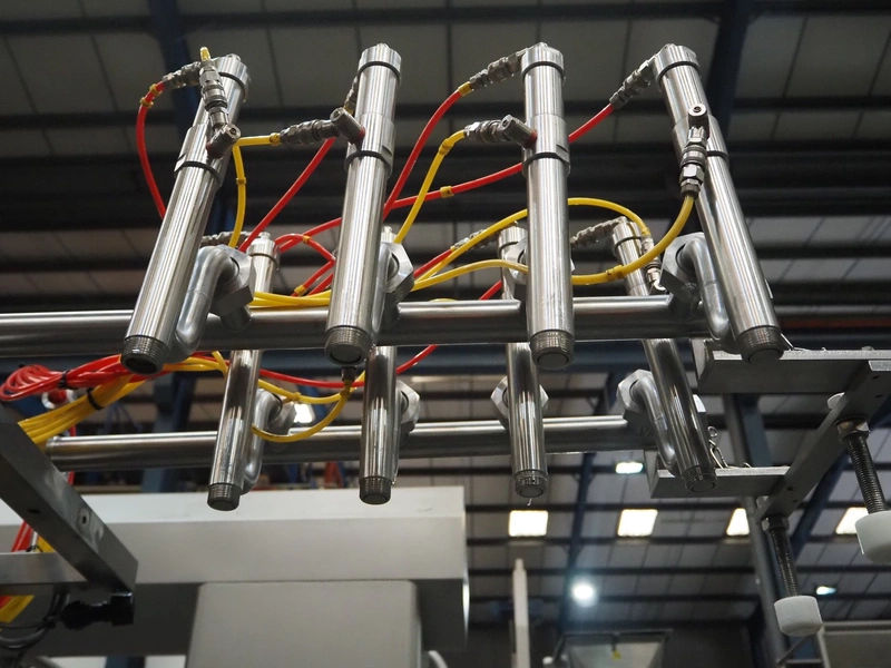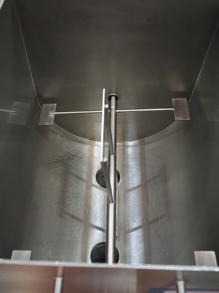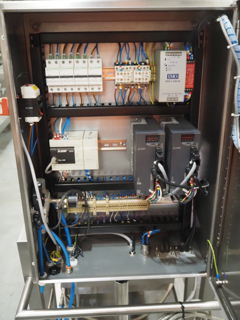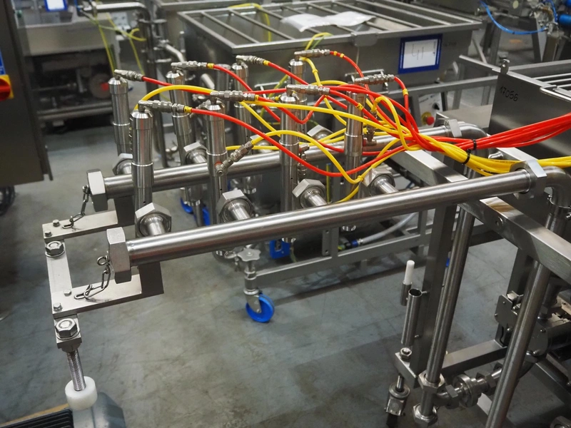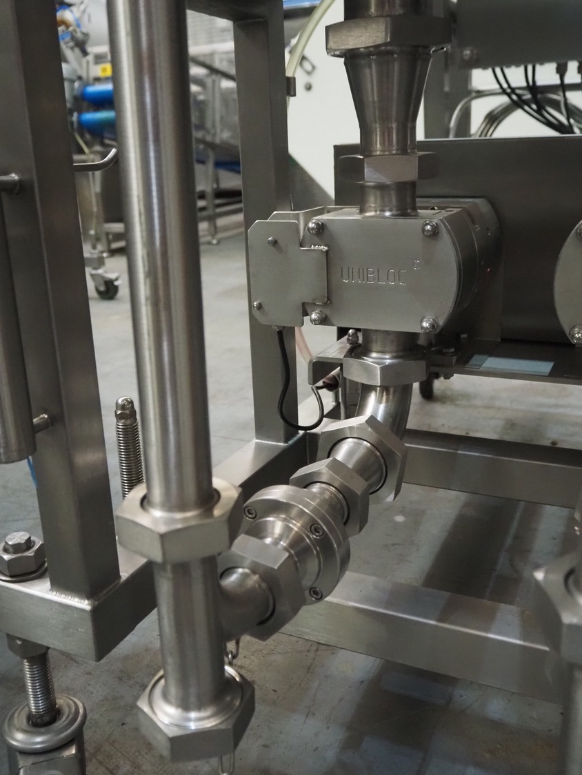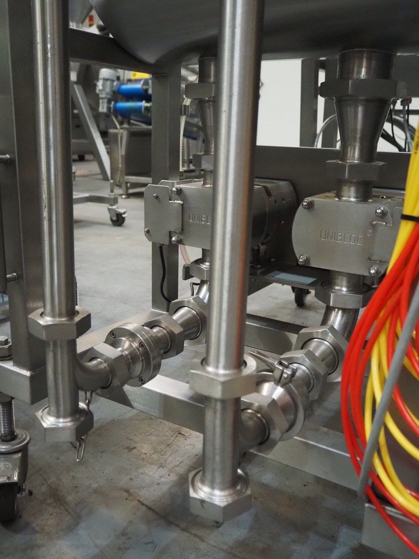 Apple Food Systems mobile depositor, 8-heads, model: Twin LP, year of construction: 2012, 240 Vac, 1 Ph, 50 Hz, 16 A, inside dimensions infeed tub: 490 mm x 420 mm x 800 mm, diameter filling heads: (8x) 20 mm, total dimensions: 2370 mm x 1000 mm x 1430 mm.