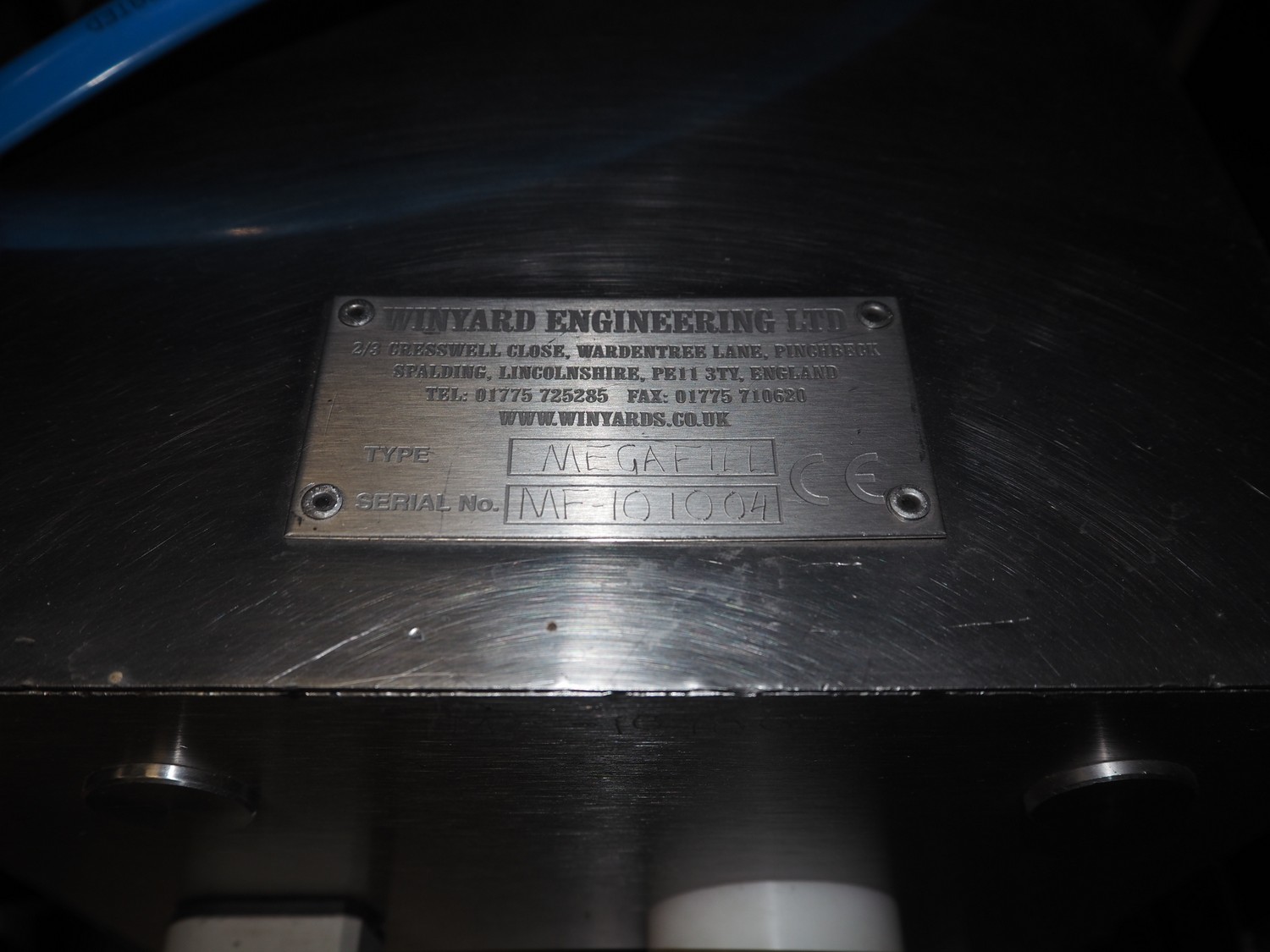 Winyard Engineering filling machine with Loma Systems pipe line metal detector, type: MEGAFILL, serial number: MF-101004, model metal detector: APL42855, serial number: 37104, year of construction: 2004, 230 V, 1 Ph, 50 Hz, 0.2 A, dimensions: 1800 mm x 1150 mm x 1560 mm.