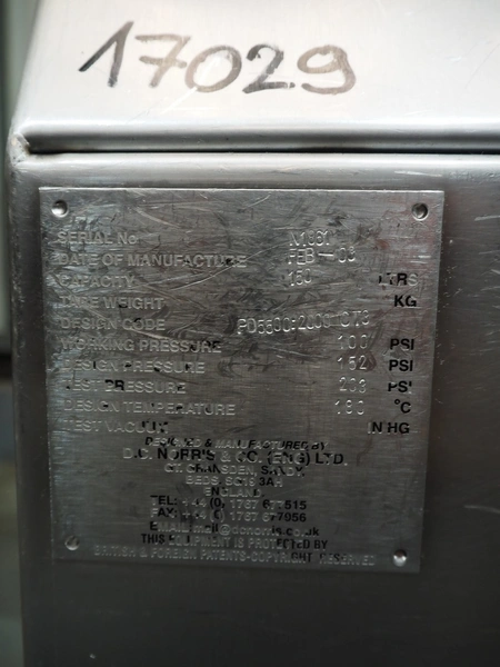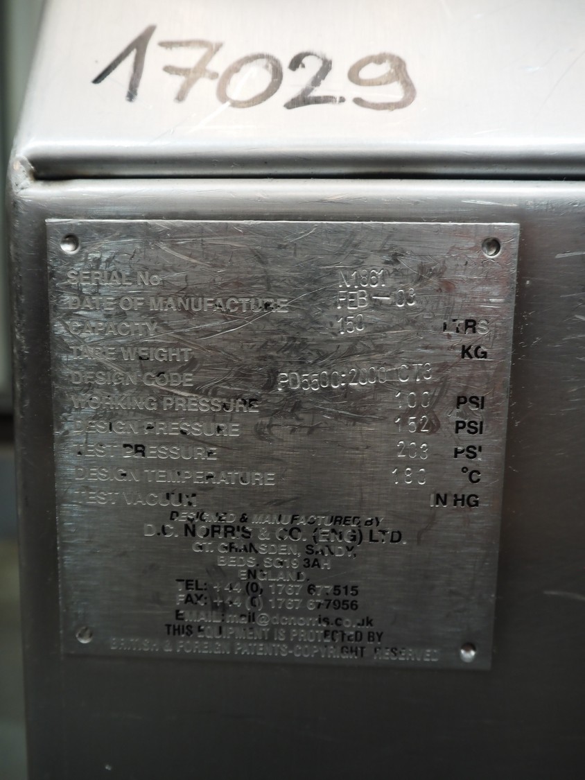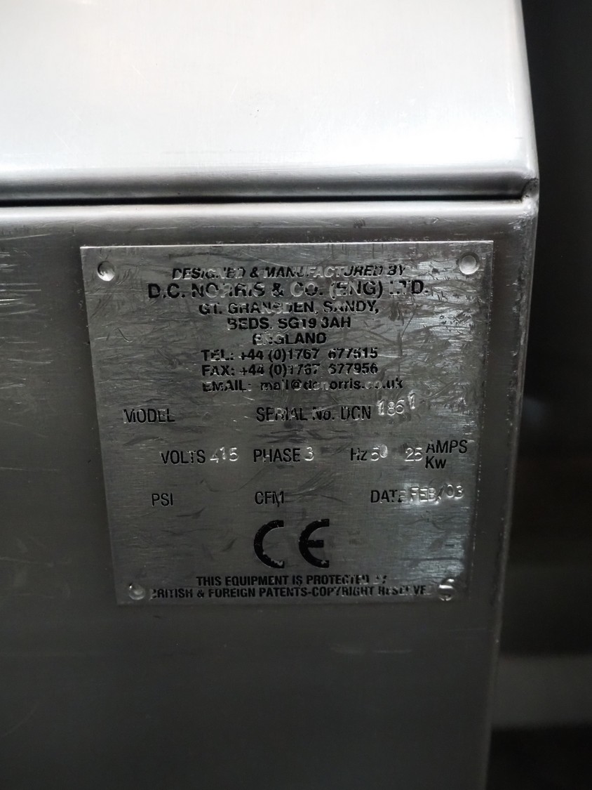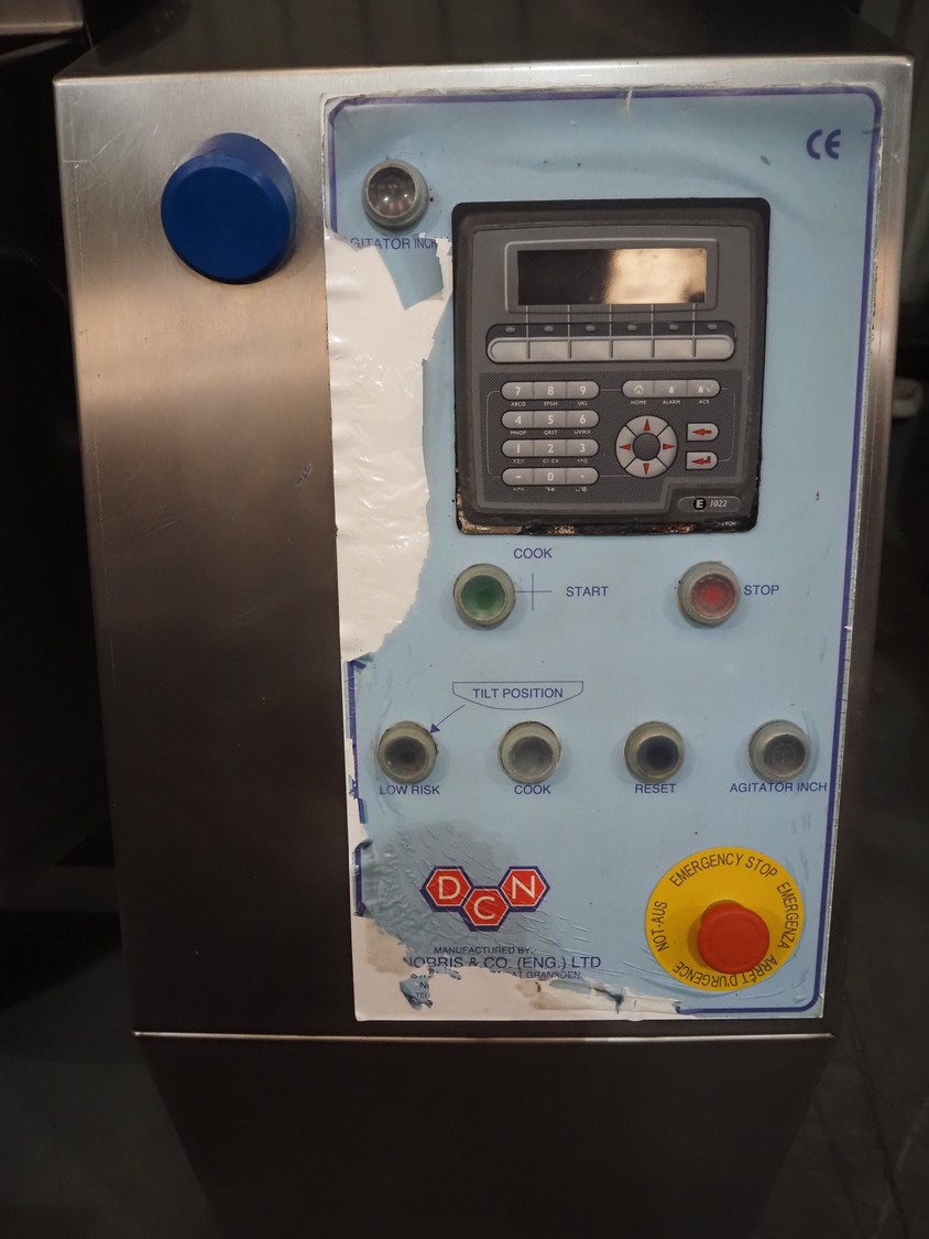 D.C. Norris tiltable fryer, serial number: N1861, year of construction: feb-03, 415 V, 3 Ph, 50 Hz, 25 A, capacity: 150 litres, dimensions: 2100 mm x 1430 mm x 1240 mm.