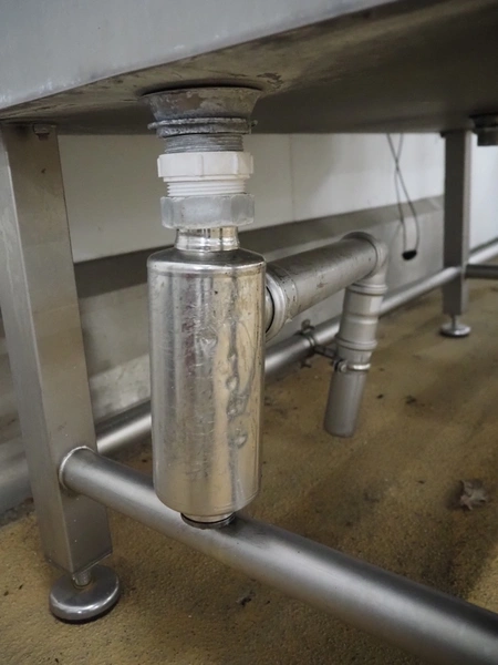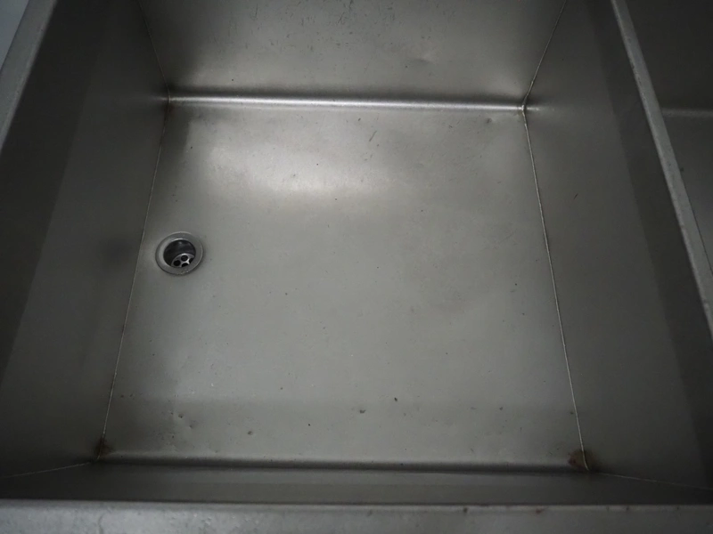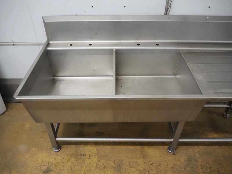 S/s washing table, 2 sinks, dimensions: 2050 mm x 870 mm x 1100 mm.