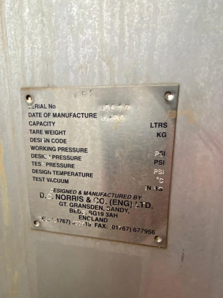 D.C. Norris s/s infeed bunker, number: N1017, year of construction: 06-1996, dimensions: 7900 mm x 2050 mm x 2850 mm.