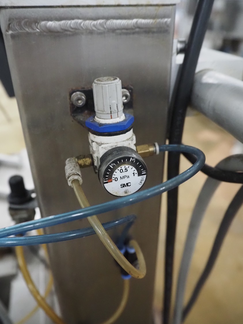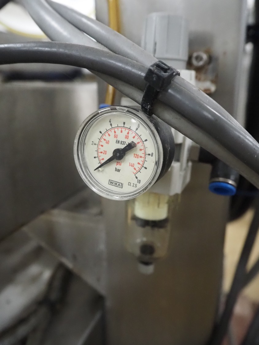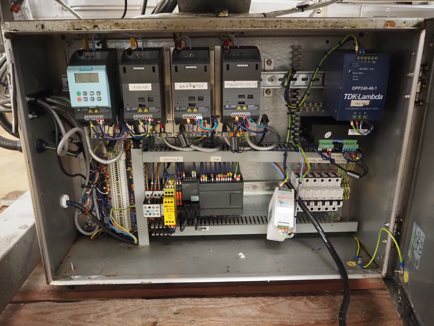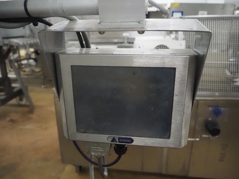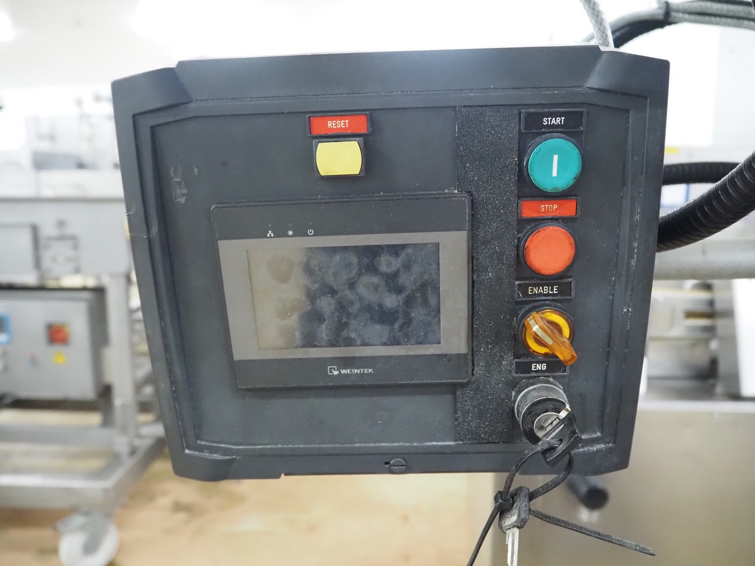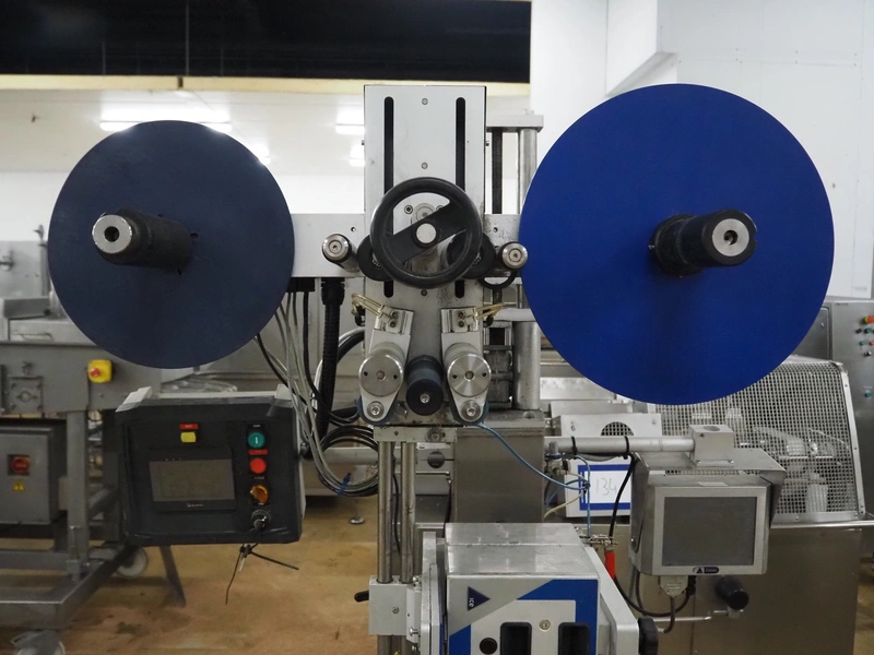 Premier labelling machine, plastic belt, belt width: (2x) 240 mm, total dimensions: 1300 mm x 850 mm x 1800 mm. Incomplete.