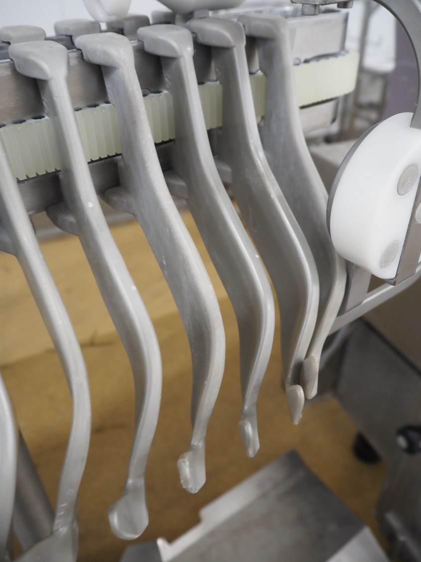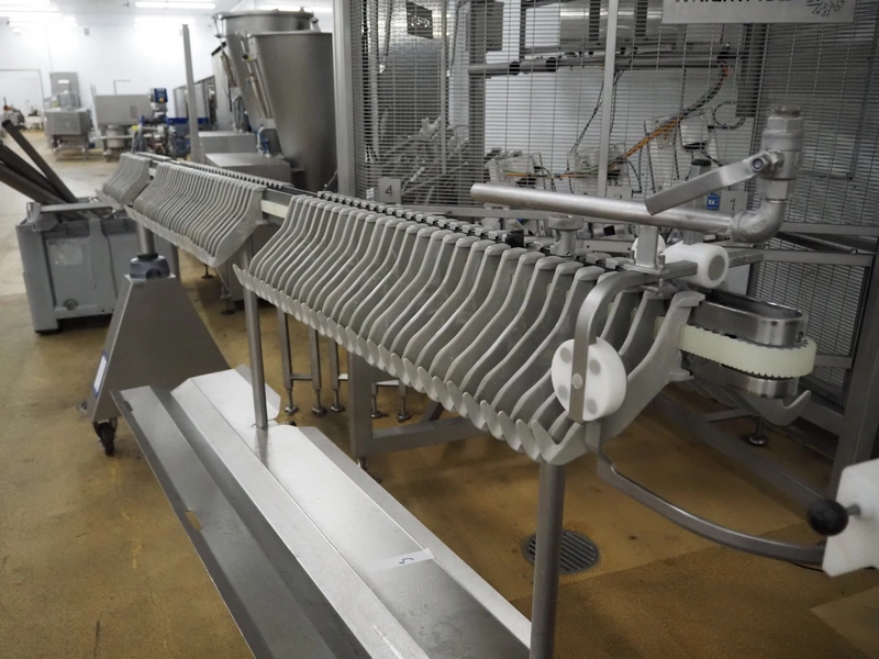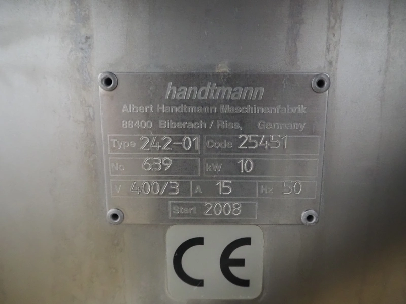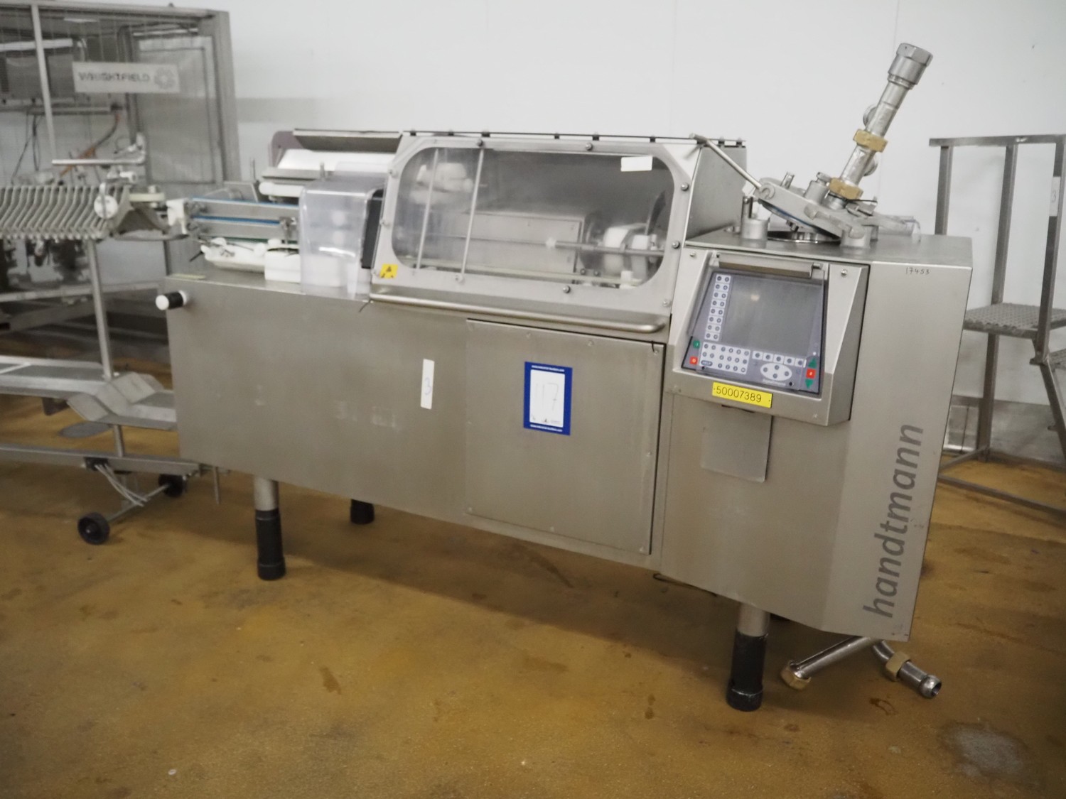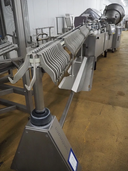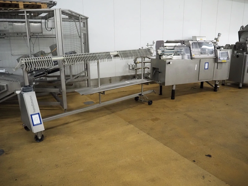 Handtmann mobile linking and hanging line for sausages, consisting of: Handtmann AL linker, type: 242-01, number: 639, year of construction: 2008, 400 V, 3 Ph, 50 Hz, 15 A, 10 kW, dimensions AL linker: 2700 mm x 900 mm x 1600 mm, Handtmann mobile hanging line, type: 242-16, number: 917, year of construction: 2008, dimensions hanging line: 2600 mm x 800 mm x 1500 mm.