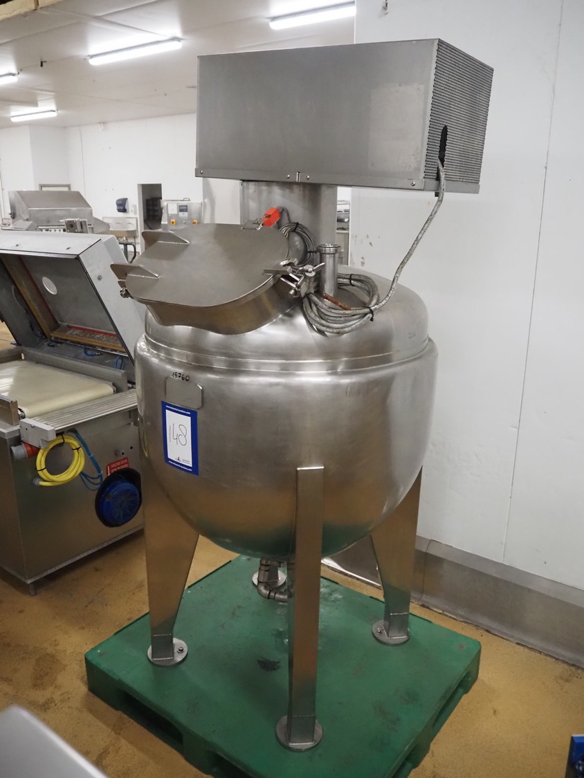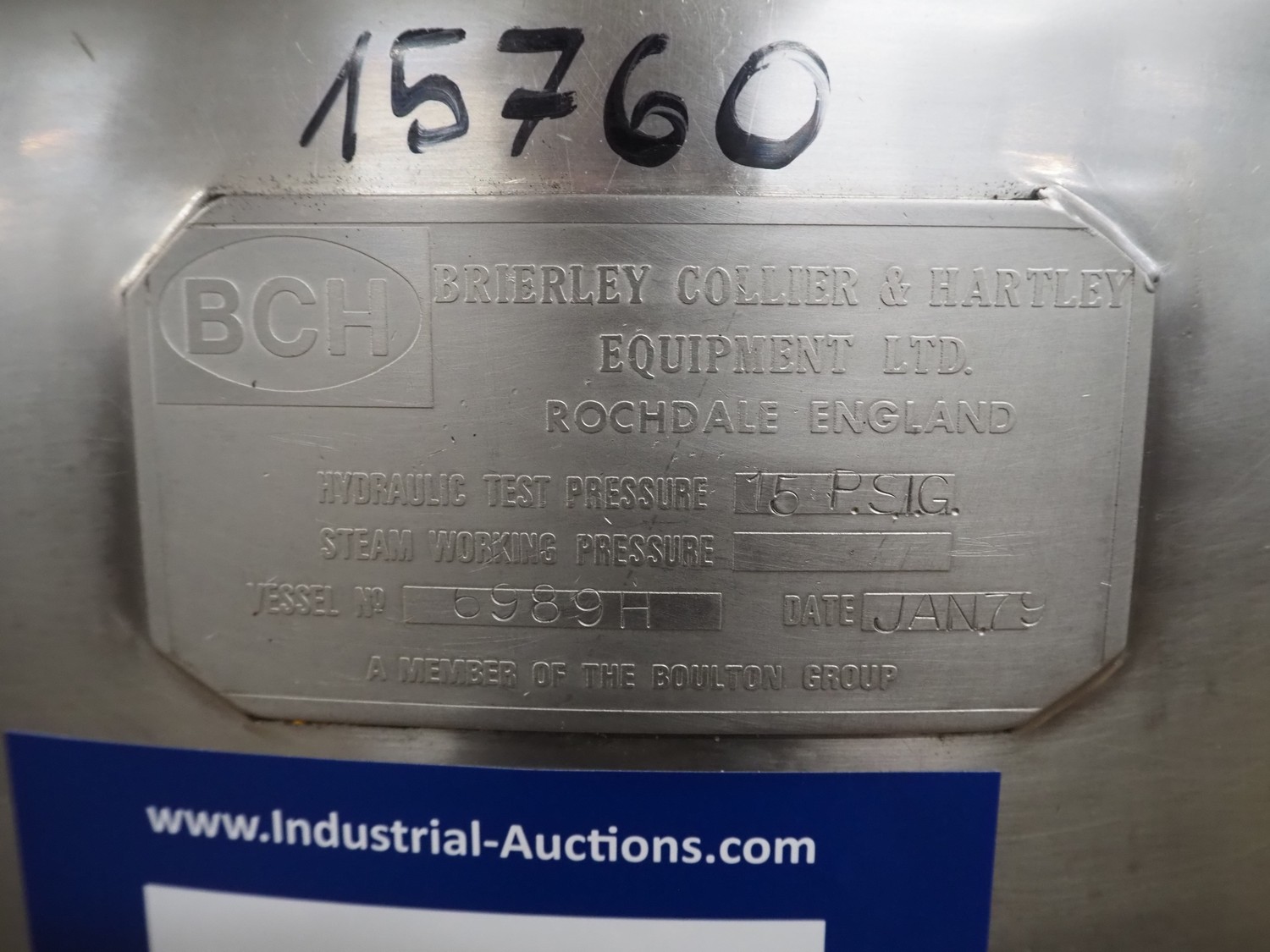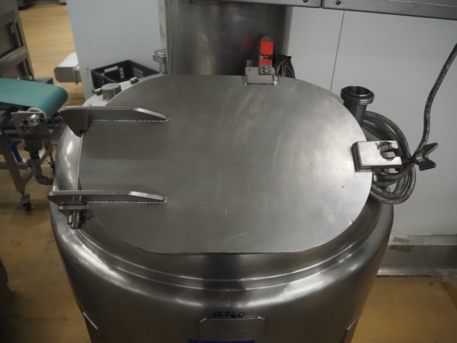 BCH s/s double jacketed tank with agitator, number: 6989H, year of construction: January 1979, inside dimensions: Ø 900 mm x 800 mm, total dimensions: Ø 1050 mm x 2040 mm.
