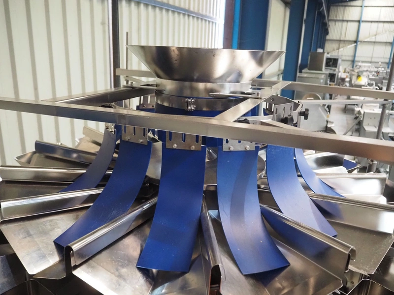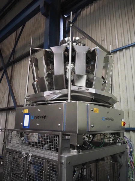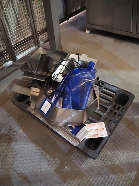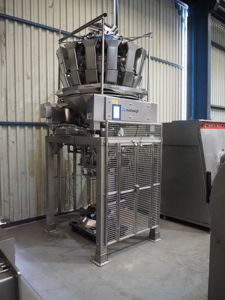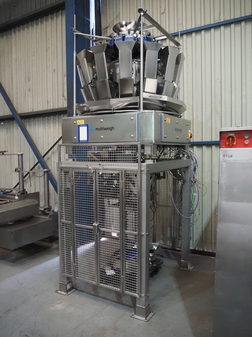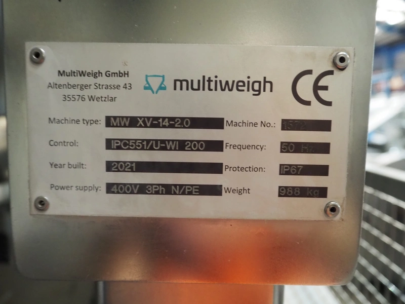 MultiWeigh GmbH multihead weigher, 14-heads, type: MW XV-14-2.0, year of construction: 2021, 400 V, 3 Ph, 50 Hz, weight: 988 kg, outfeed height: 930 mm, total dimensions: 1550 mm x 1400 mm x 3250 mm. Including pallet with parts.