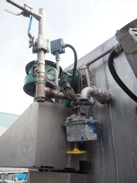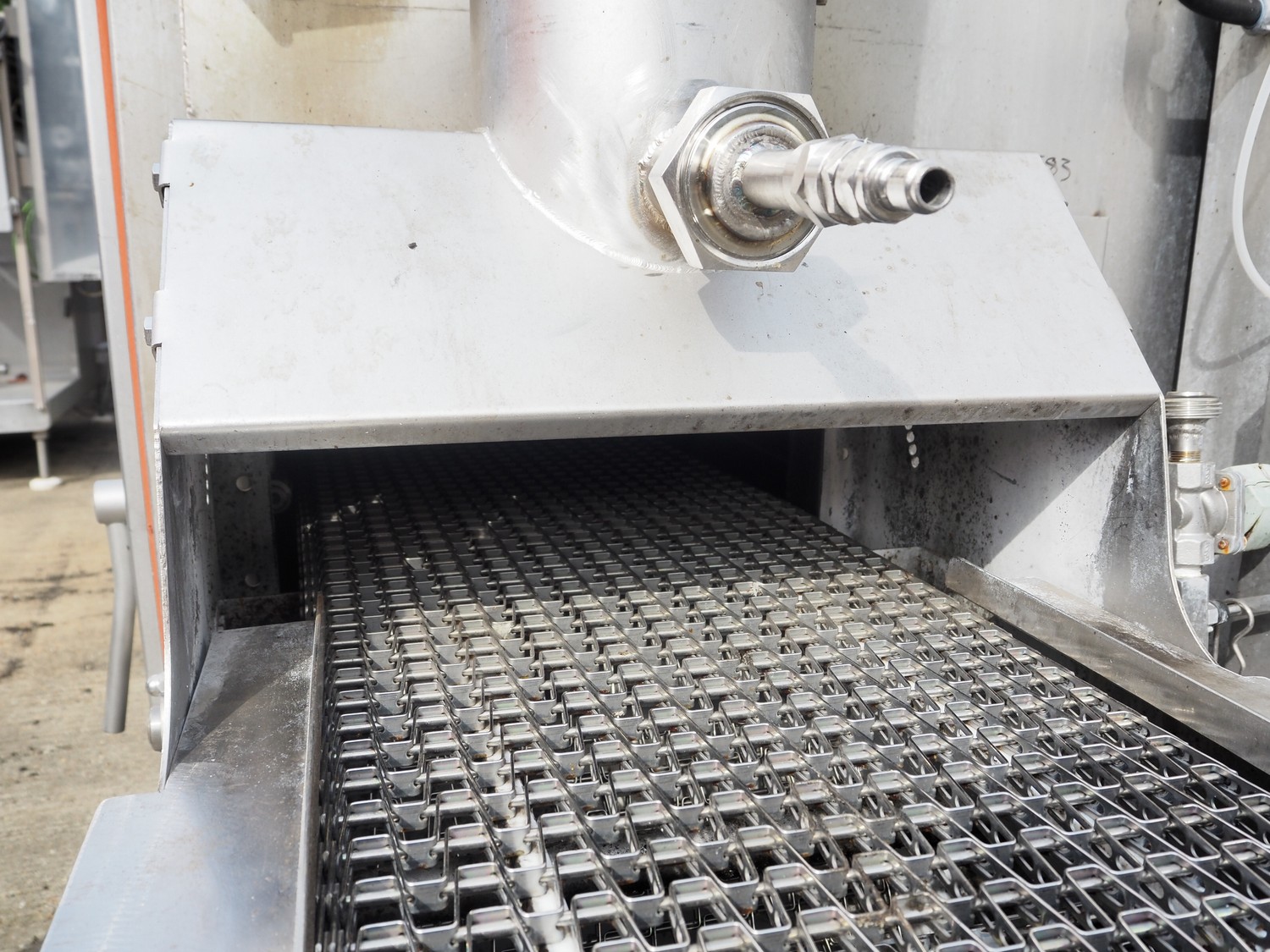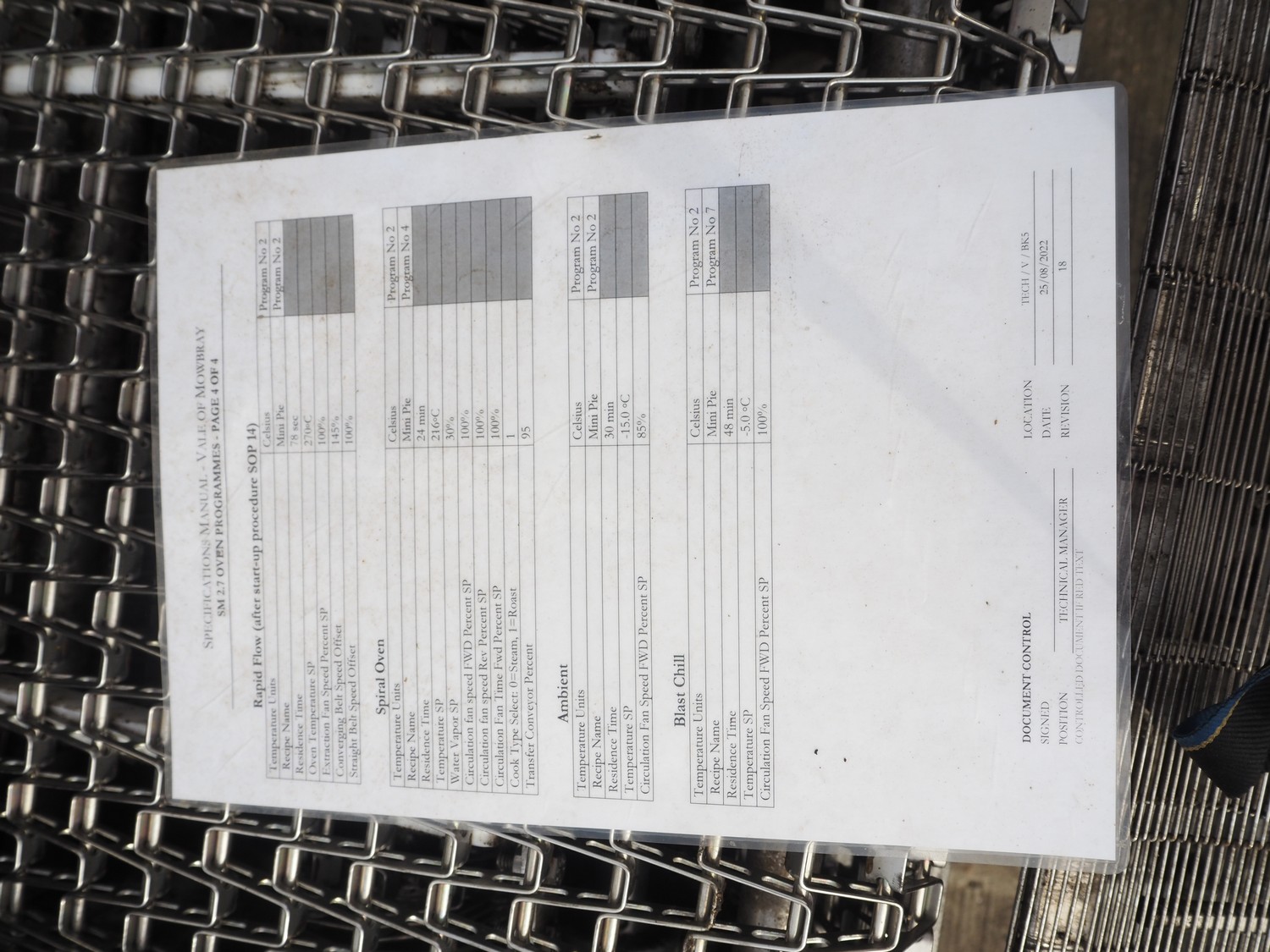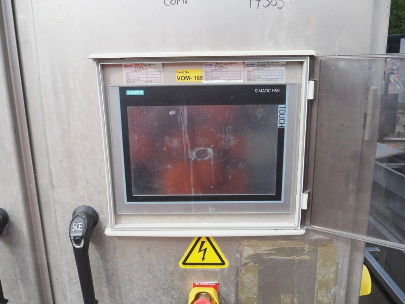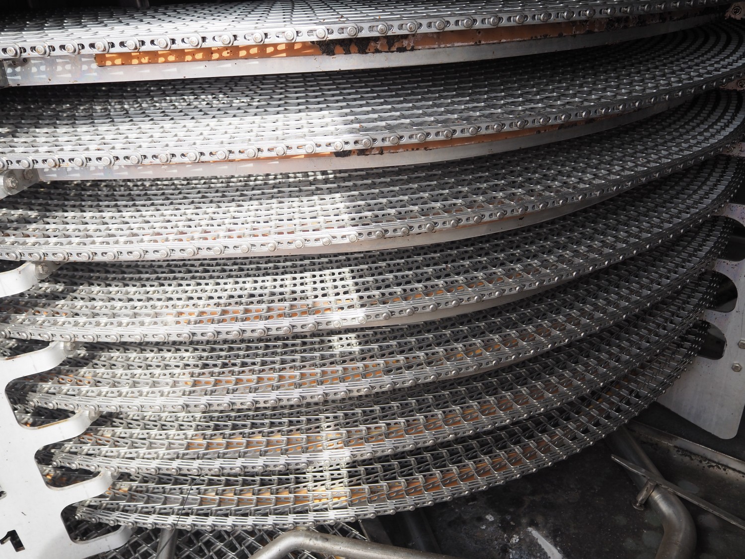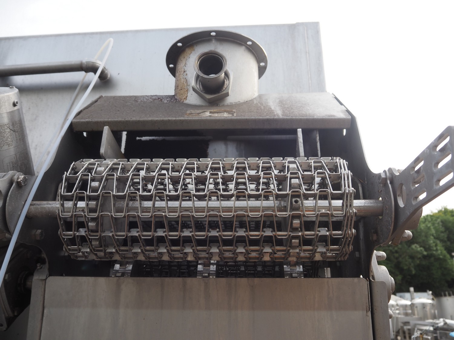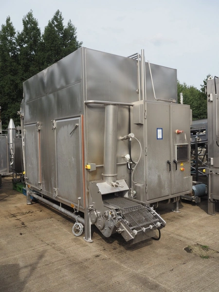 Unitherm Food Systems, Inc gas heated spiral oven, model number: SSOC-15.75-1.6-16/-G, serial number: SPOV-3SC01, 380/415/480 VAC, 3 Ph, 50/60 Hz, 75/70/60 A, 16 floors, s/s belt width: 400 mm, tier: 80 mm, infeed height: 700 mm, outfeed height: 2500 mm, Z-N clockwise rotation, total dimensions: 4500 mm x 2500 mm x 3150 mm.