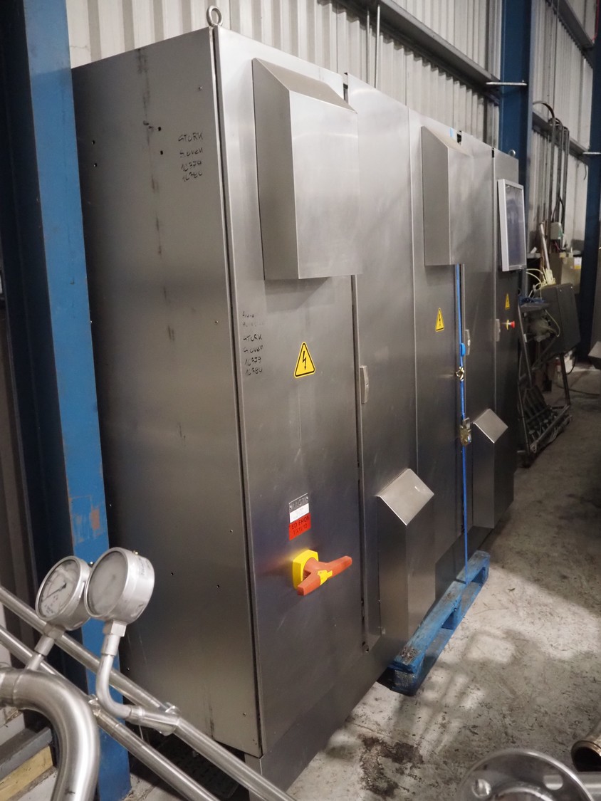 Marel Stork Titan B.V. twin drum spiral oven, model: TSO 600/96/4 EL TH0302, type: 4786432AA, serial number: 10077687, year of construction: 2010, belt width s/s mesh belt: 600 mm, clockwise rotation, left hand execution, total dimensions oven: 8500 mm x 4000 mm x 3500 mm, dimensions in-and outfeed station: (2x) 1300 mm x 1200 mm x 1400 mm.