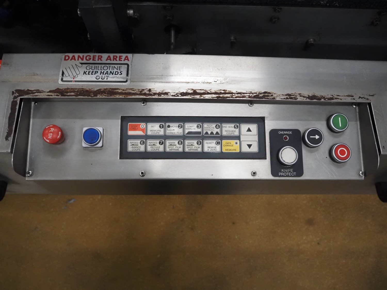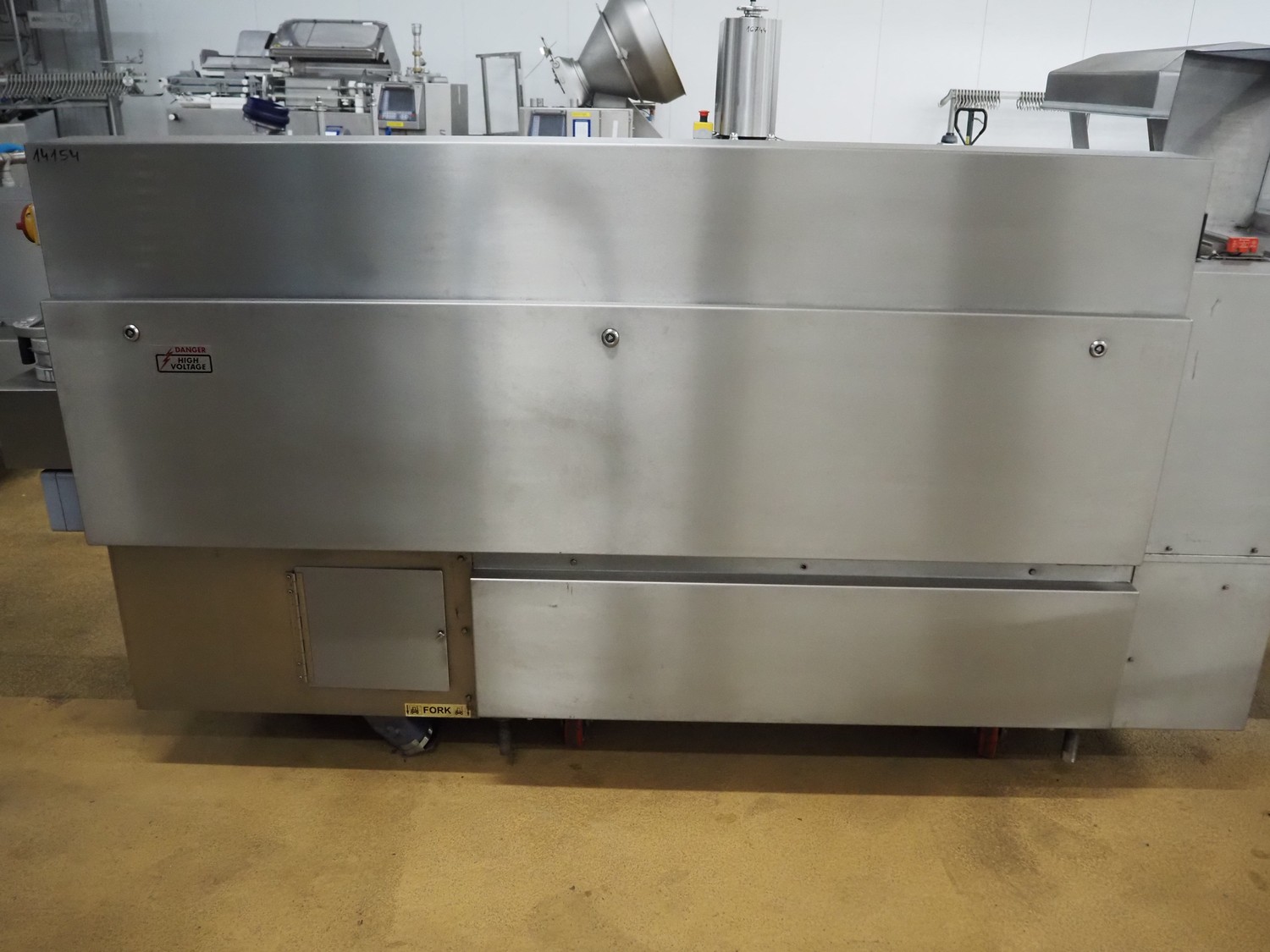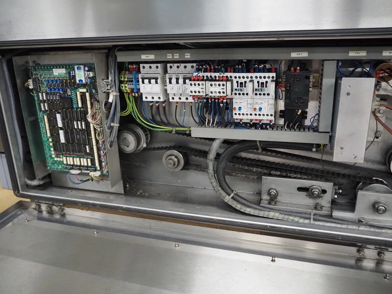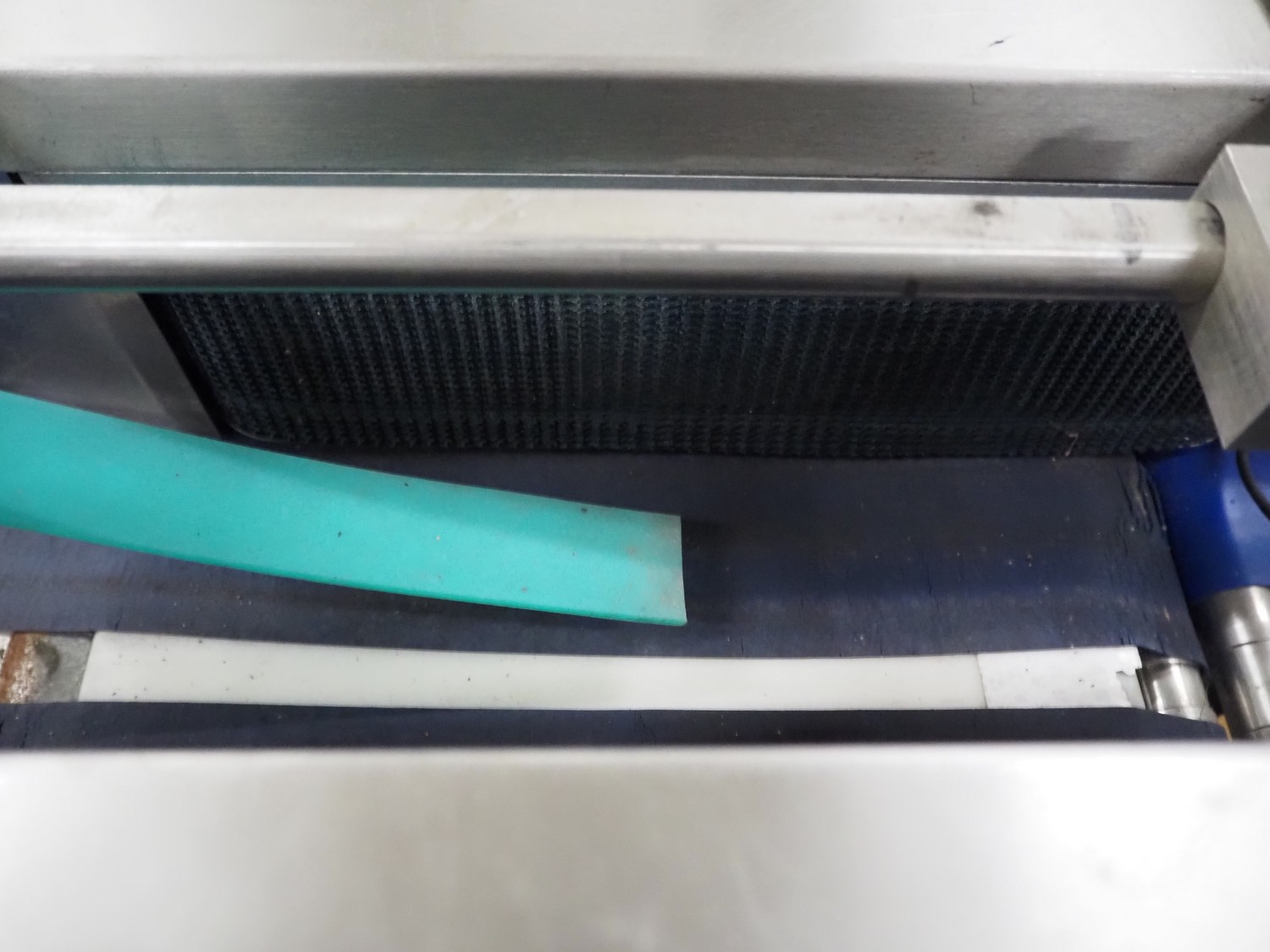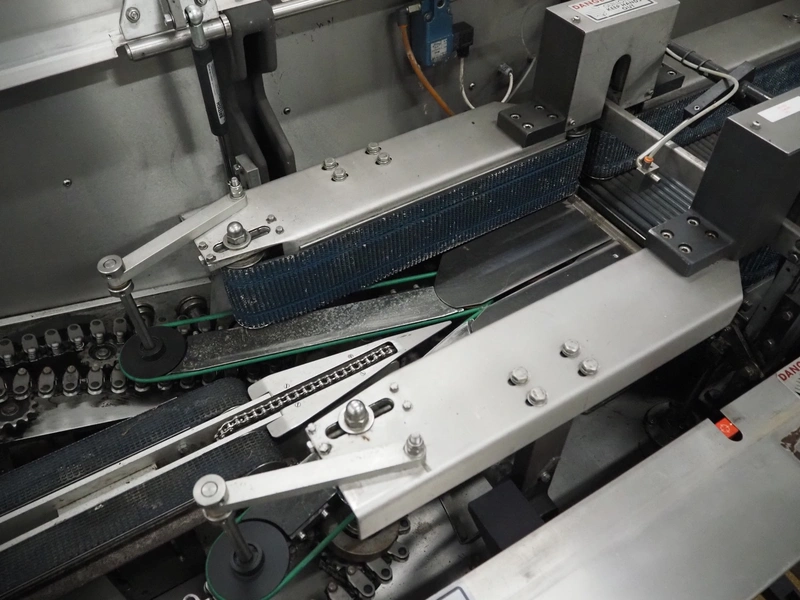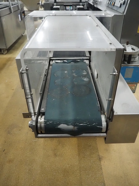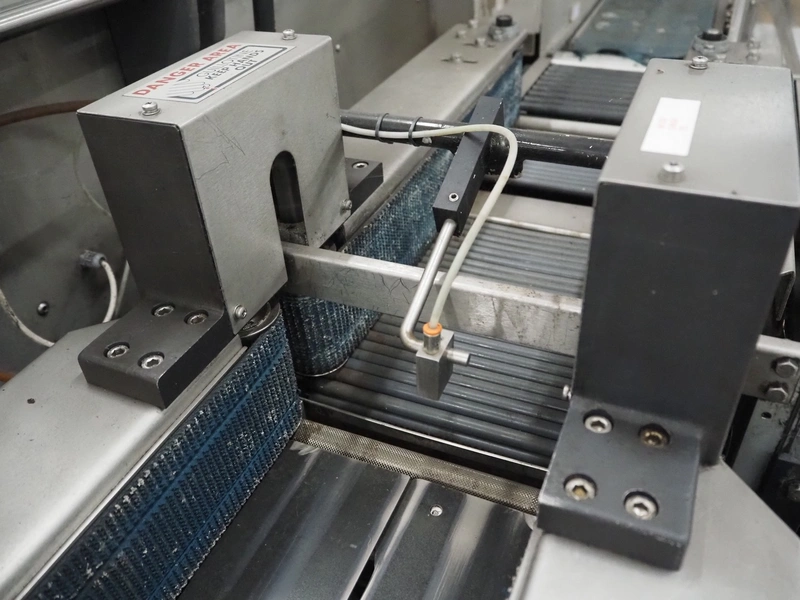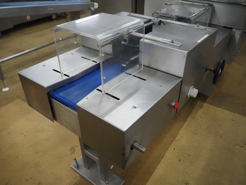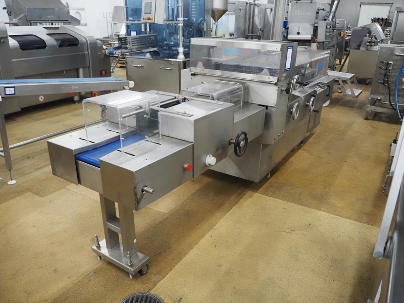 Delford flowpacker, model: SP 6000, serial number: 6439, year of construction: 2002, 400 V, 50 Hz, 20 A, temperature range: 0°C-35°C, weight: 1050 kg, plastic infeed belts, belt width: (2x) 60 mm, 200 mm, plastic outfeed belt, belt width: 240 mm, total dimensions: 4450 mm x 1050 mm x 1370 mm.