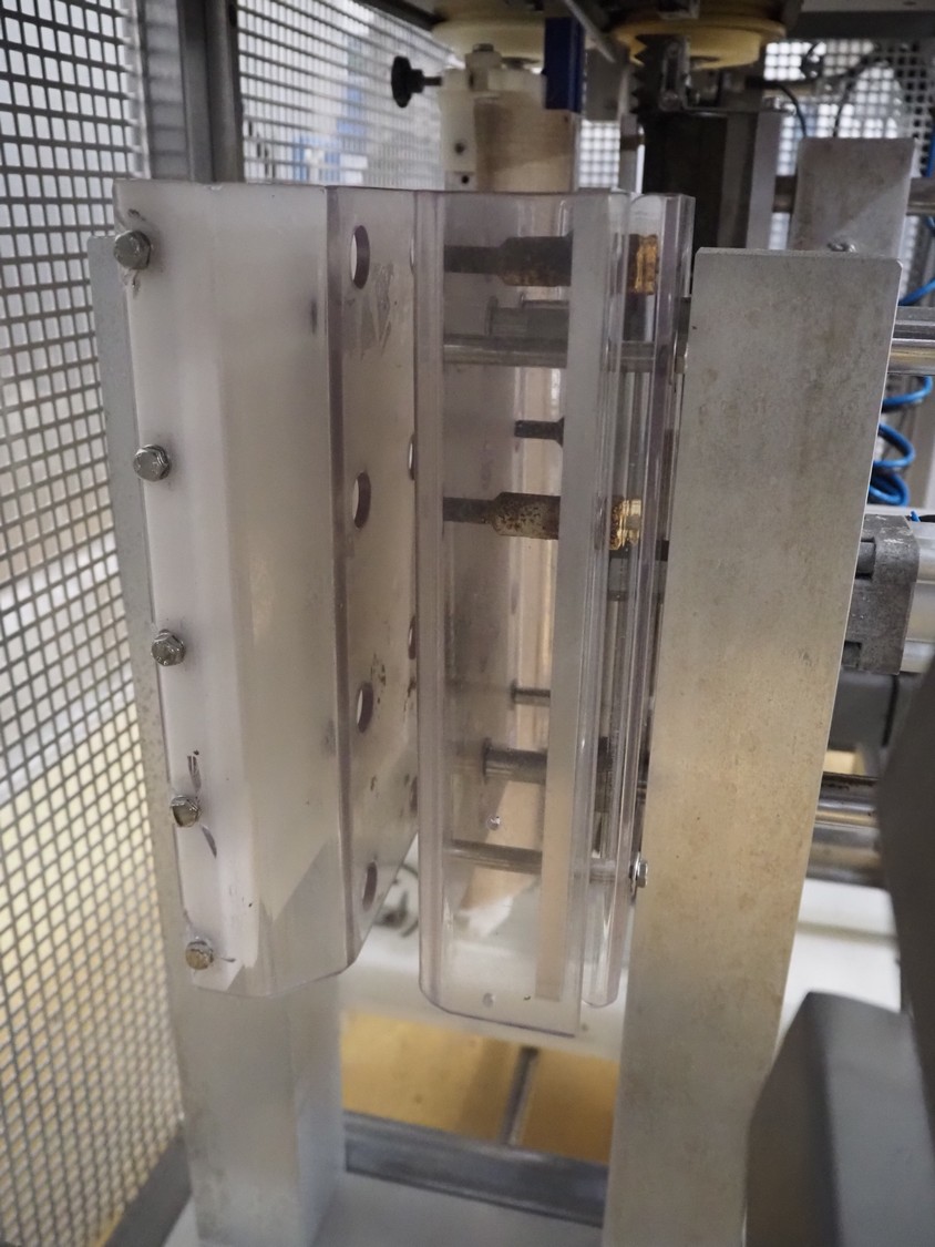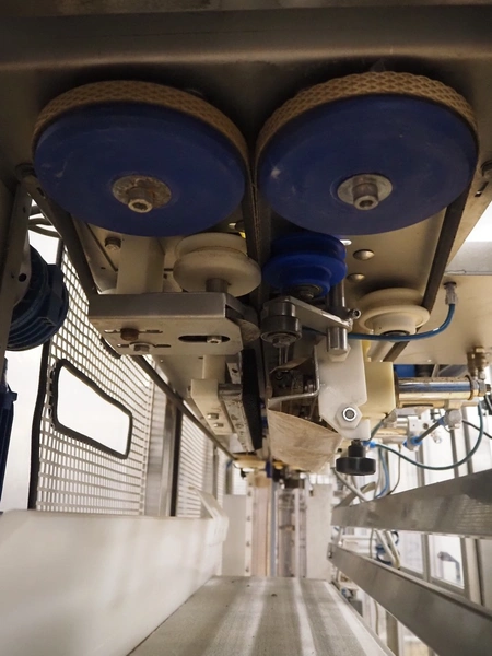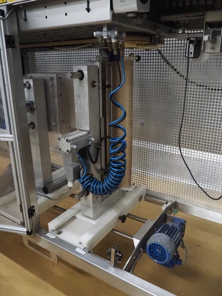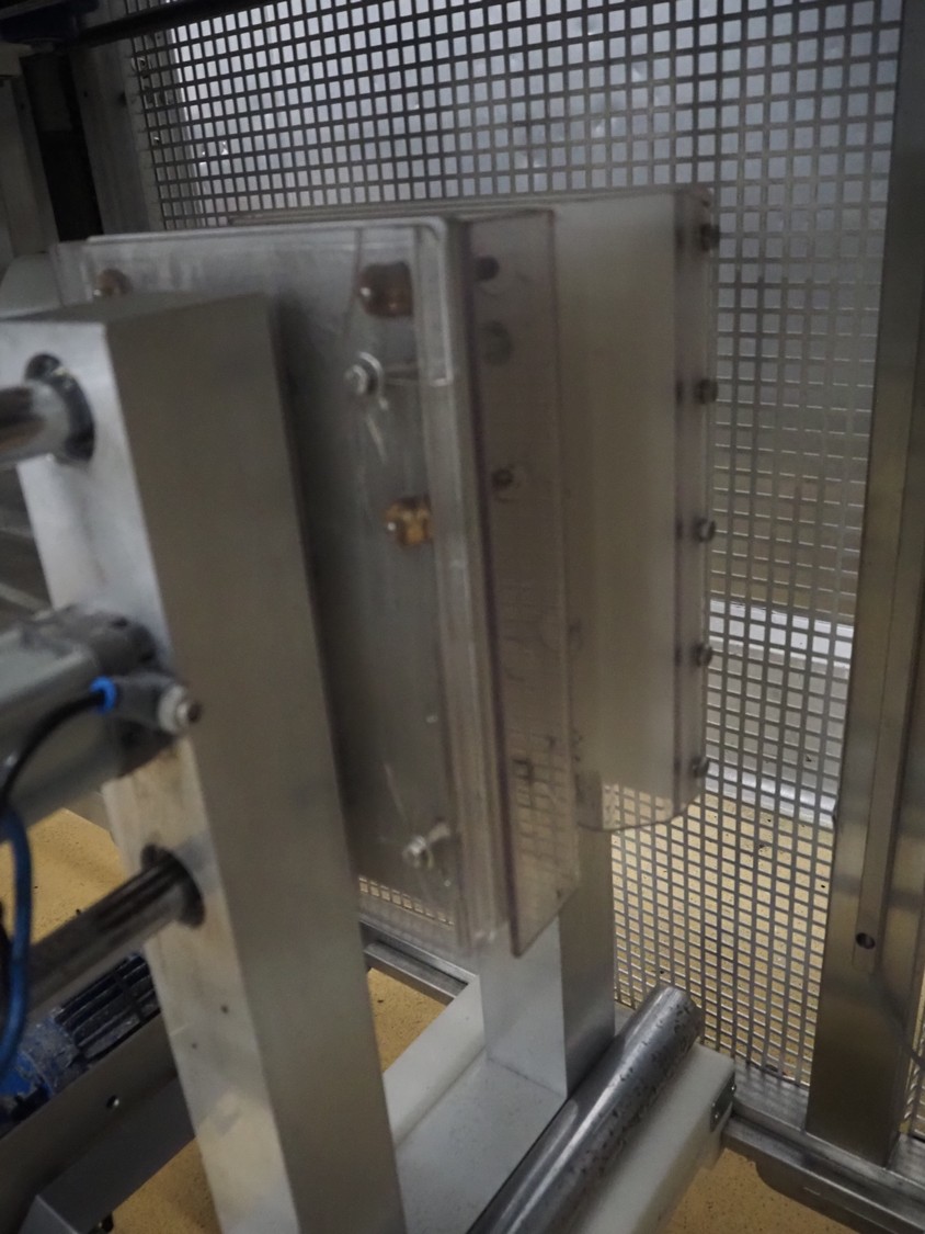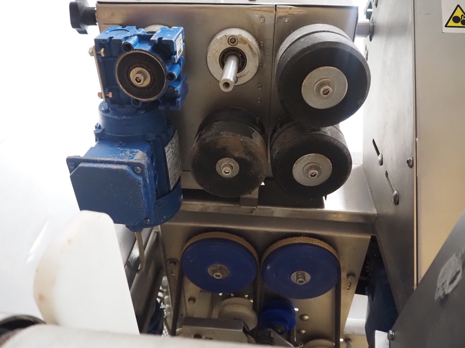 Gillenkirch Packaging Systems GmbH vertical and horizontal sealing machine for vegetables, model: 7000-E, factory number: 959/04, year of construction: 08/2004, 4 kW, seal length: 600 mm, plastic outfeed belt, belt width: 250 mm, total dimensions: 3750 mm x 1700 mm x 1630 mm.